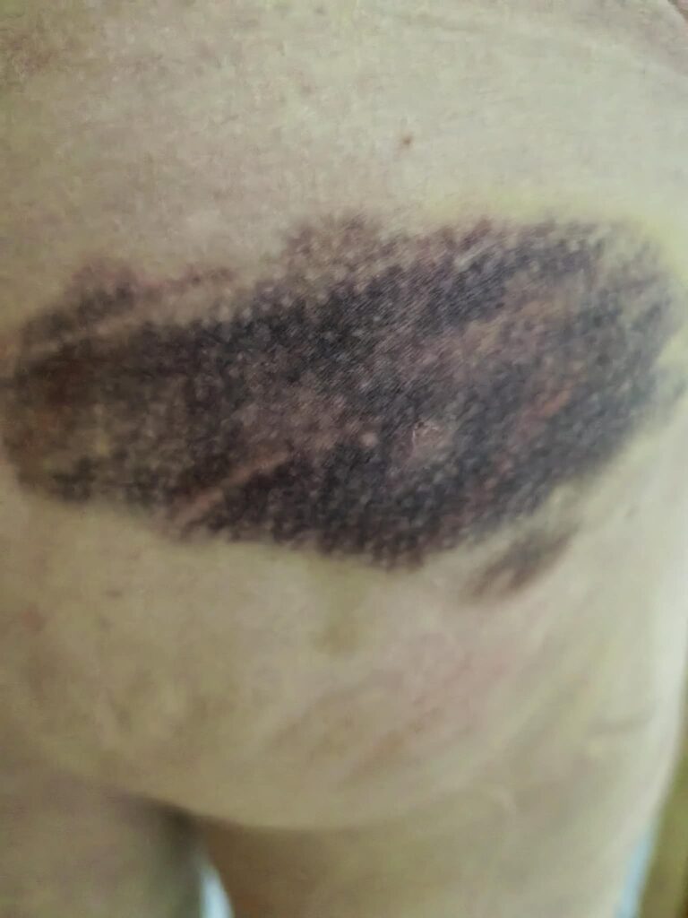 Made it back home to Barretto alive, and I reckon I’ll get back into the flow of my routines tonight. We shall see. Speaking of seeing, and not wanting to be an ass about it, Swan took a photo of the bruise that came with my Hash fall last Monday. It may well be the biggest bruise I ever did have, no ifs, ands, or butts about it. For those who may be morbidly curious, I’ll post it below today’s song. You’ve been warned!