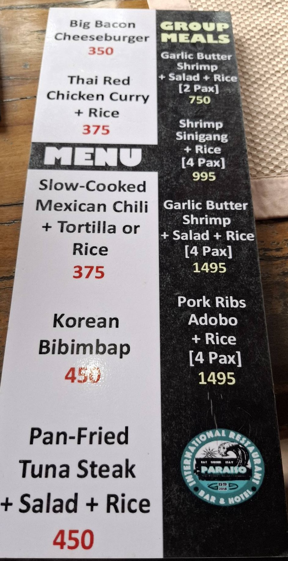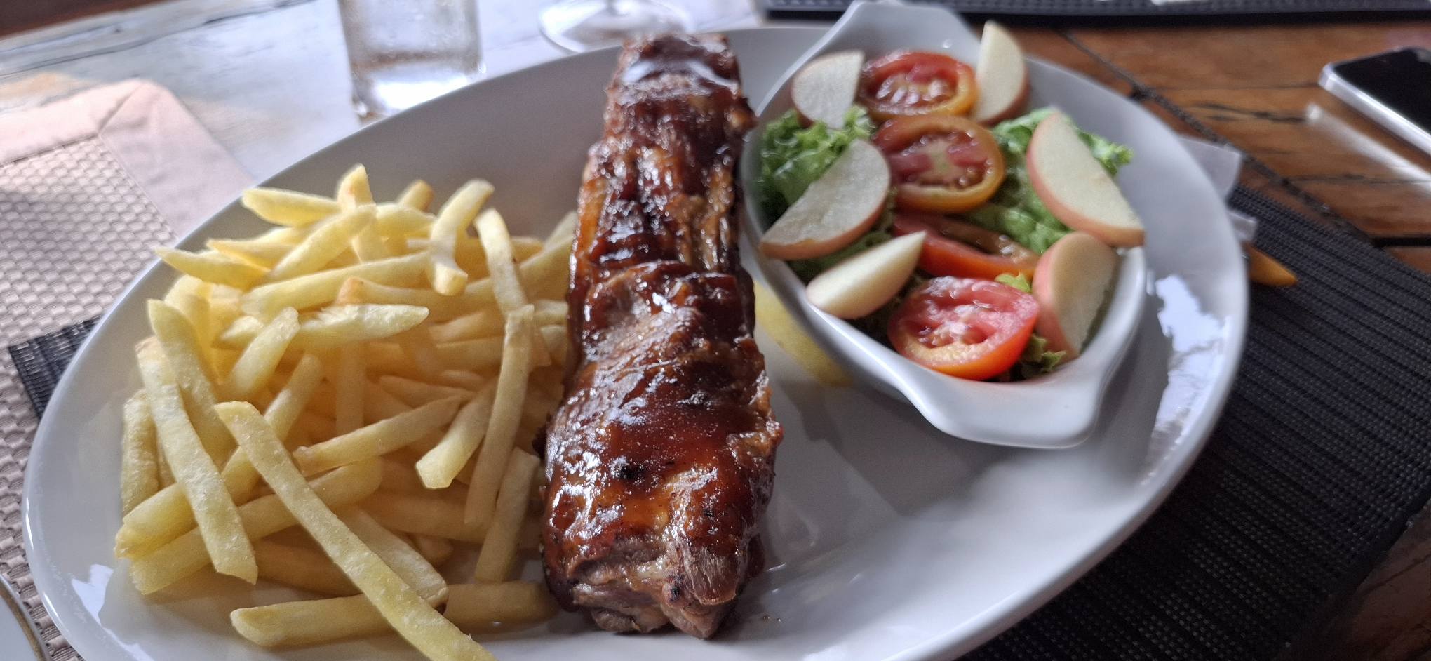 It’s owned and run by a white guy (Aussie, I think).Nothing fancy about the place.But it has a friendlyand inviting atmosphere. As is our custom, we prefer to forgo the tables and belly up to the counter to watch the world go by outside. During our dinner visit, four or five other expats came in to dine and drink.I think the pricing probably doesn’t appeal to the local folks.Lots of menu options…But we came for the BBQ.And I can’t say no to pulled pork.The pork rib was yummy, but a tad on the expensive side (750 pesos).And damn, that was a big-ass pulled pork sandwich. I don’t recall being served pulled pork with cheese on top, but I liked it. Sorry about the onions, Kevin.We were happy campers after enjoying our meal.