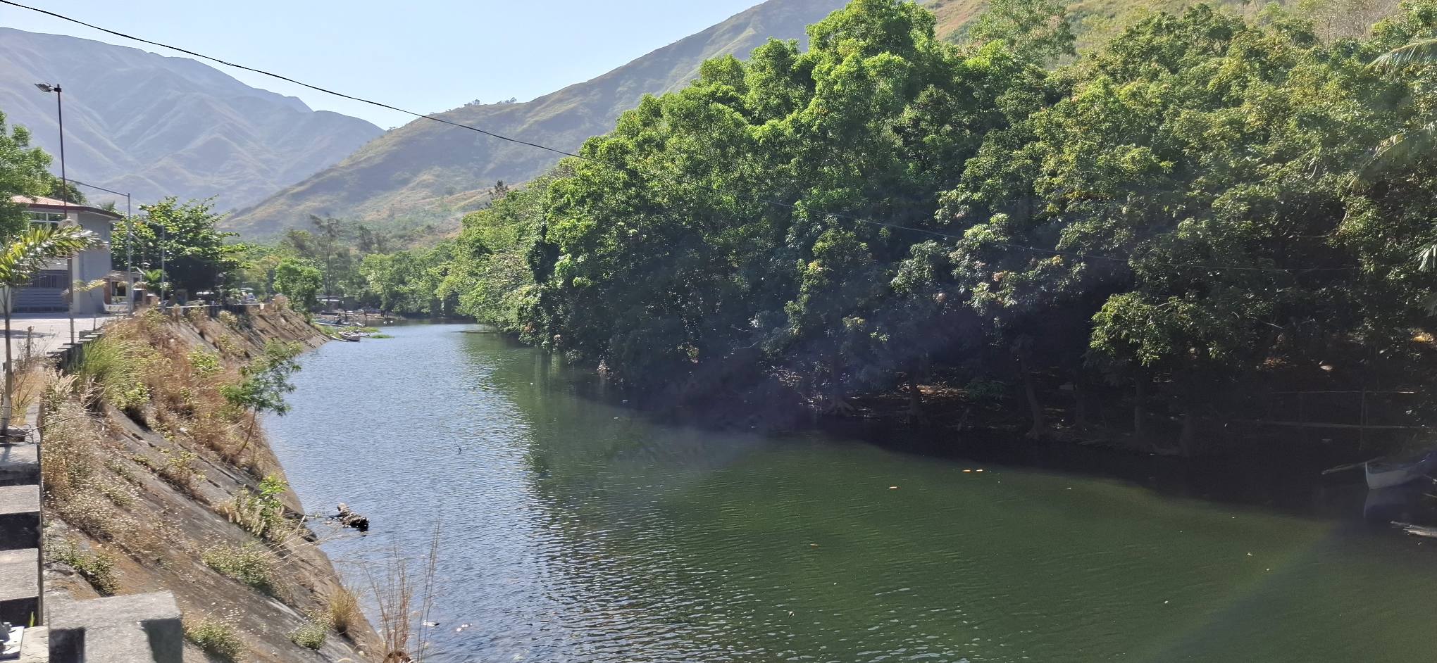 Of course, once that bypass highway is completed, this area will be ripe for development.I guess we should enjoy nature’s beauty while we still can.How now, carabao? Just keep those horns to yourself, thank you! Back on the pavement and headed for Naugsol.A tree I liked along the way.Dispensing some biscuits……and lollipops to the local children. They seemed pleased.A bridge I’m glad we didn’t cross.And the one we did.The river, such as it is this time of year.For an old man on a hot day, our 4K journey felt just right.
