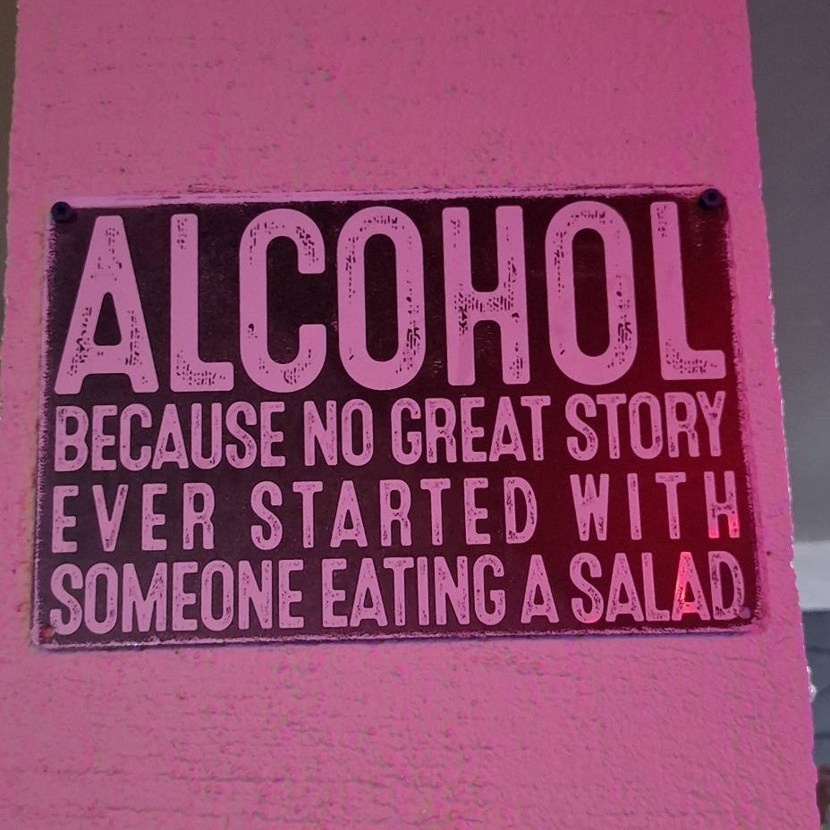 Beer doesn’t always lead to a great story, but it usually has a happy ending. This sign is one of several with similar themes at The Beach Bar.