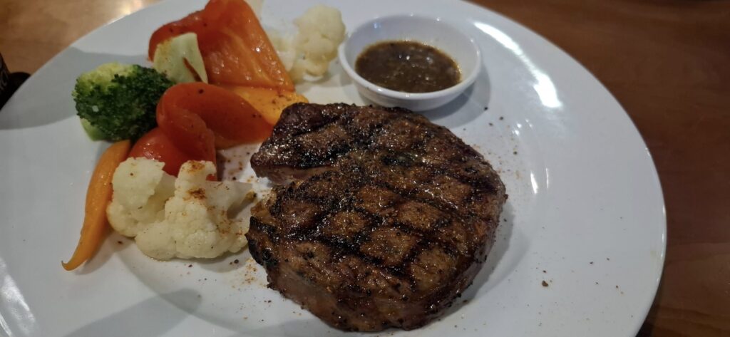 Left the hotel before 8 a.m. and got back a little after six. But we weren’t done yet. We walked the 2K to Dirty Fingers so we could partake in the steak Thursday promo.