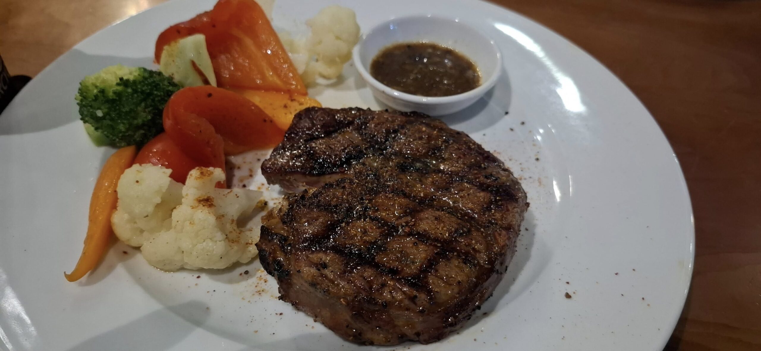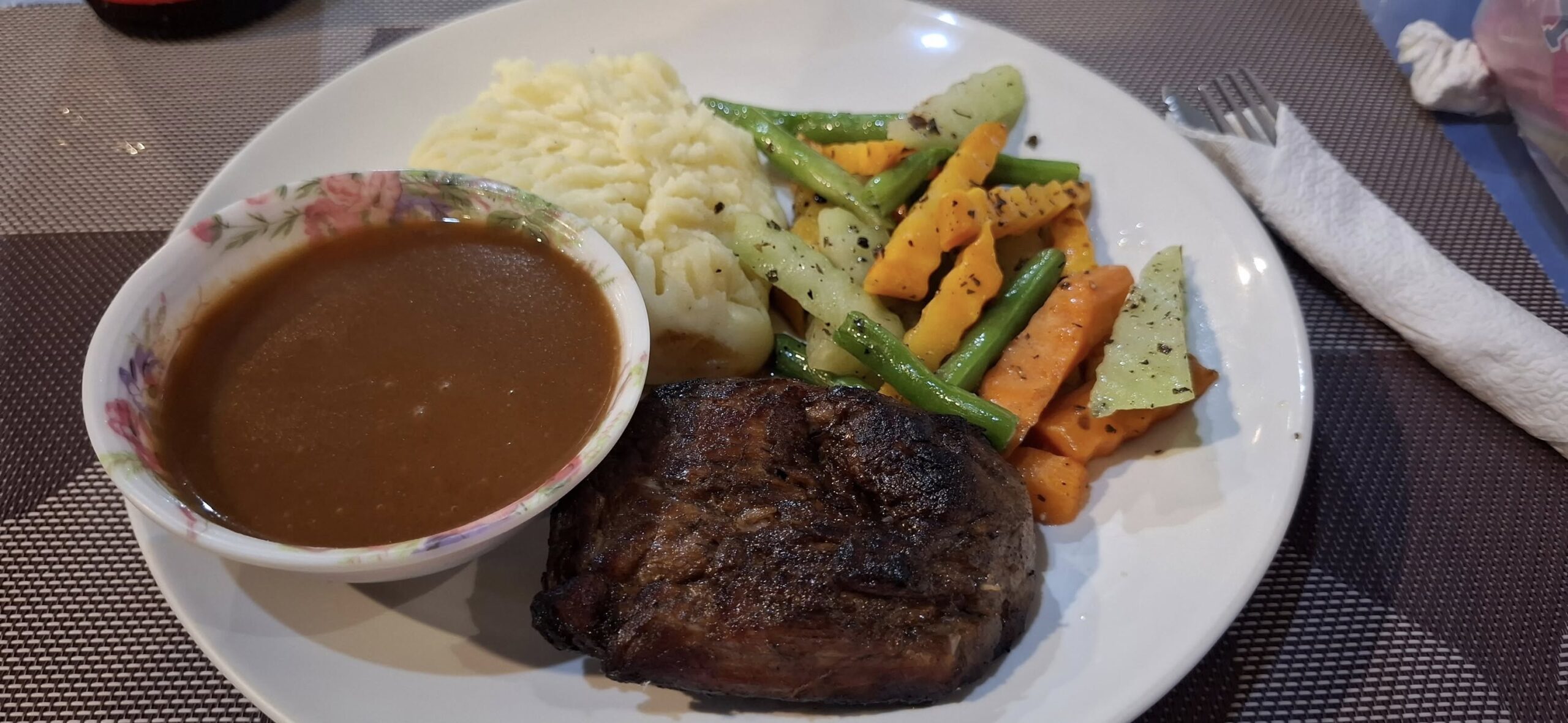 I remembered to order my filet mignon WITHOUT gravy this time. Looks and tastes better that way.