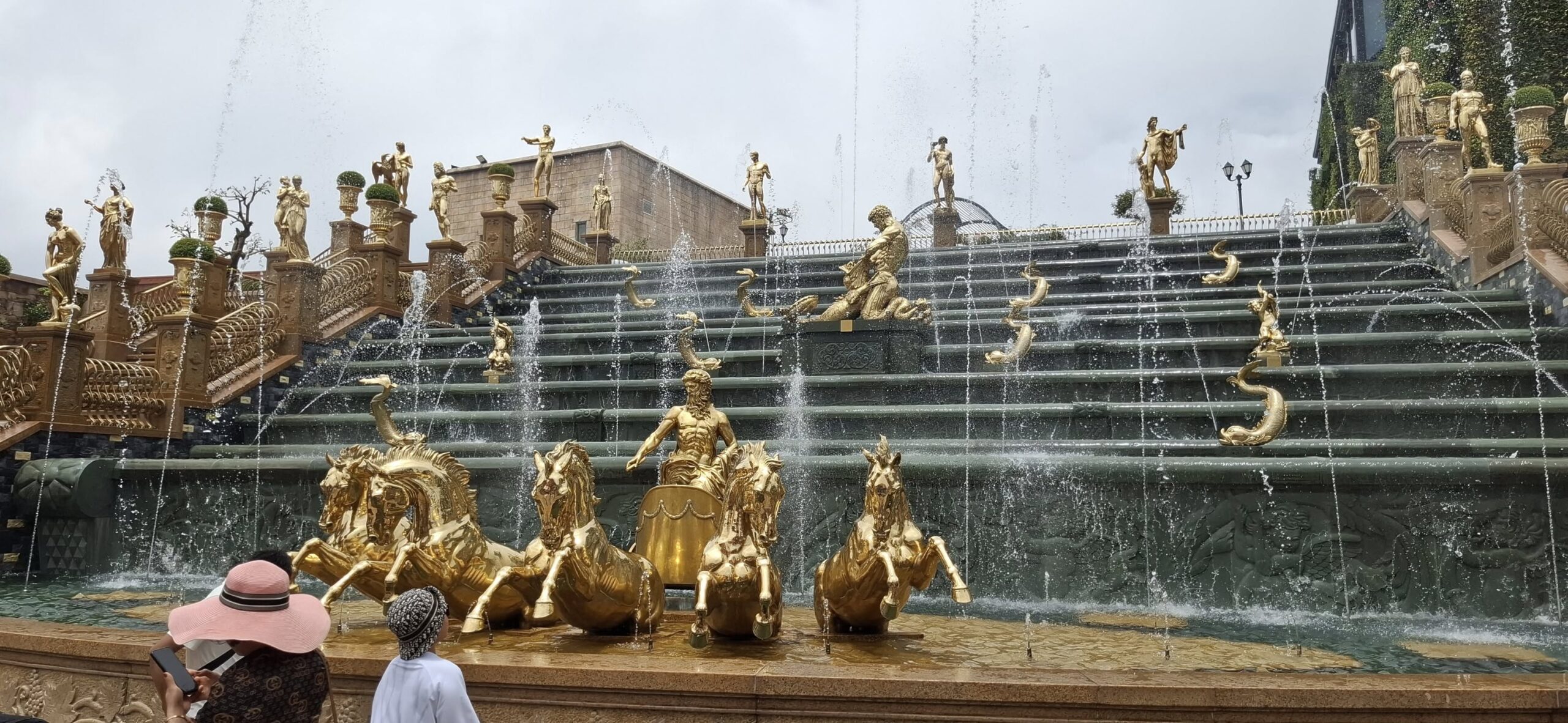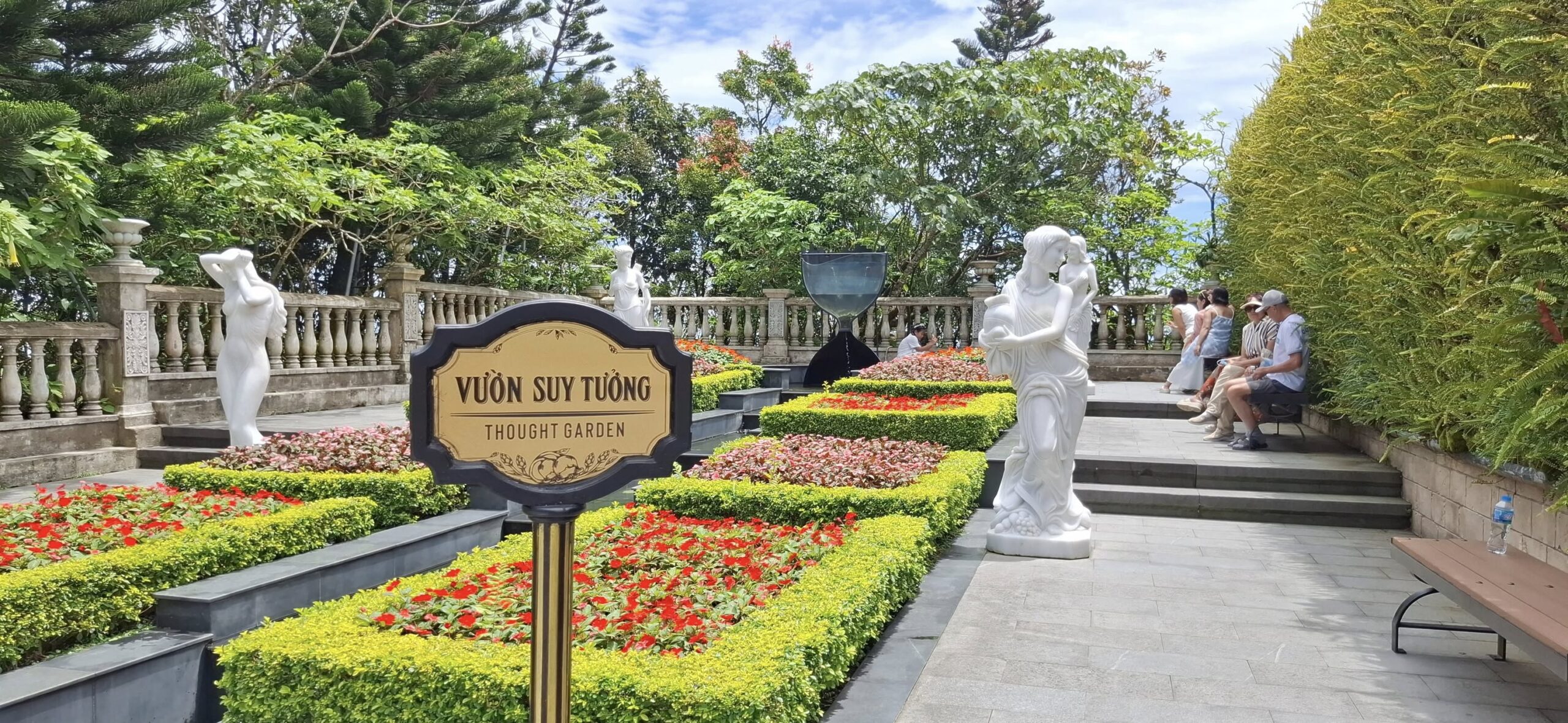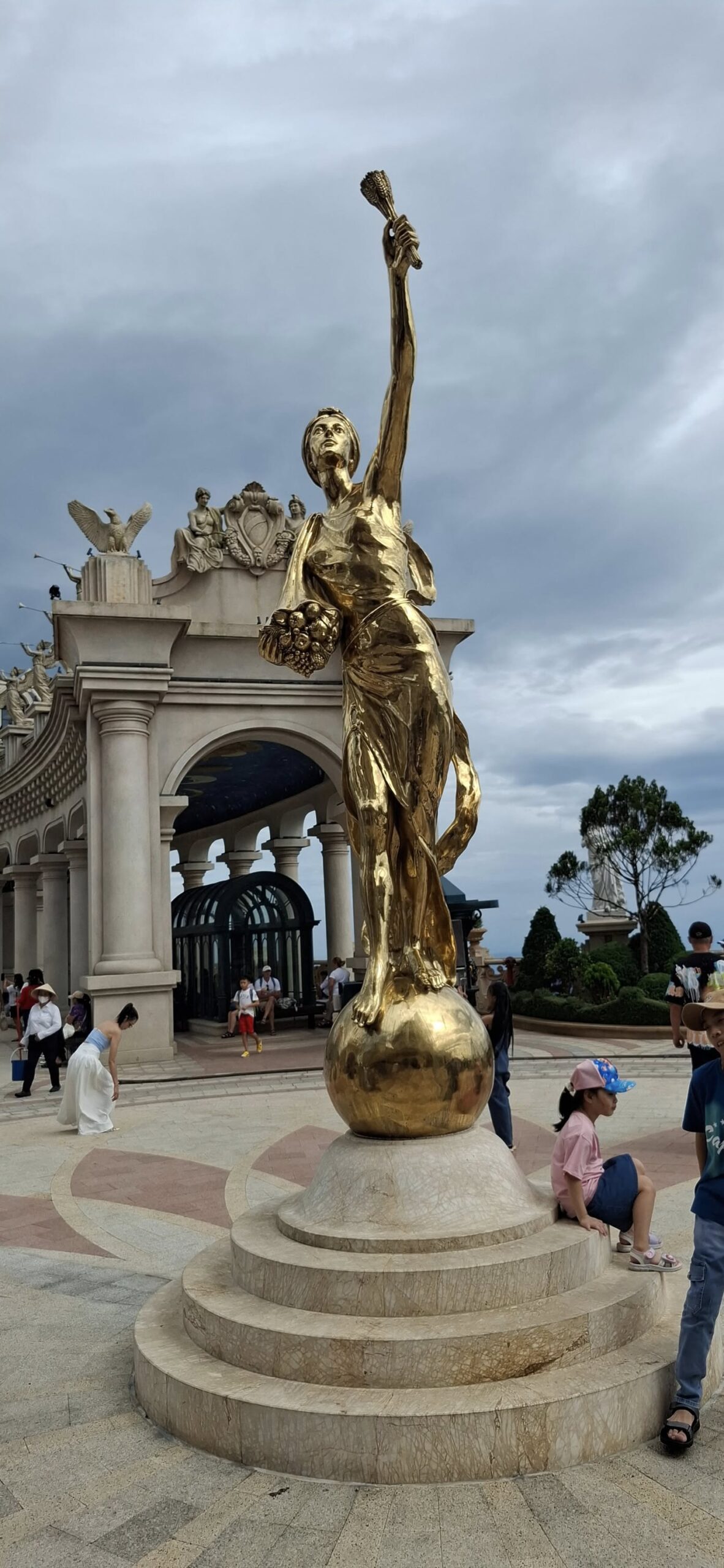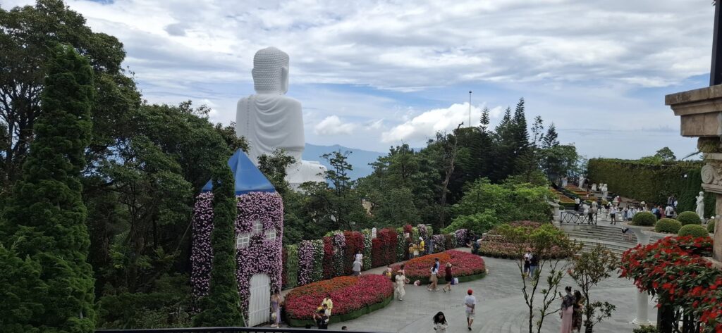 Getting there from Da Nang took about an hour. Once out of the city traffic, it was a scenic and pleasant ride.The entrance at the foot of the mountain.The cable car takeoff was a jolt.I have a bit of an aversion to heights, but it was still a fun ride to the top of the mountain (almost 5000 feet).Looking back from where we started.Approaching the Golden BridgeOn solid ground again at the top.Statues everywhere. She was the breastA Golden GirlSwan made a new friendFeeling festiveOMG! Is this heaven?