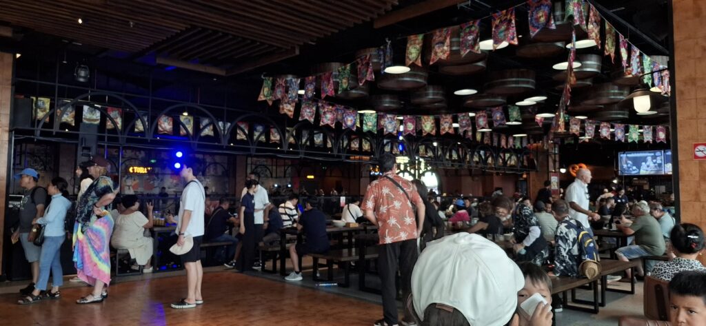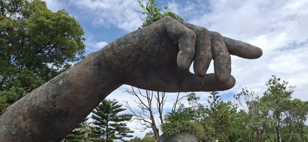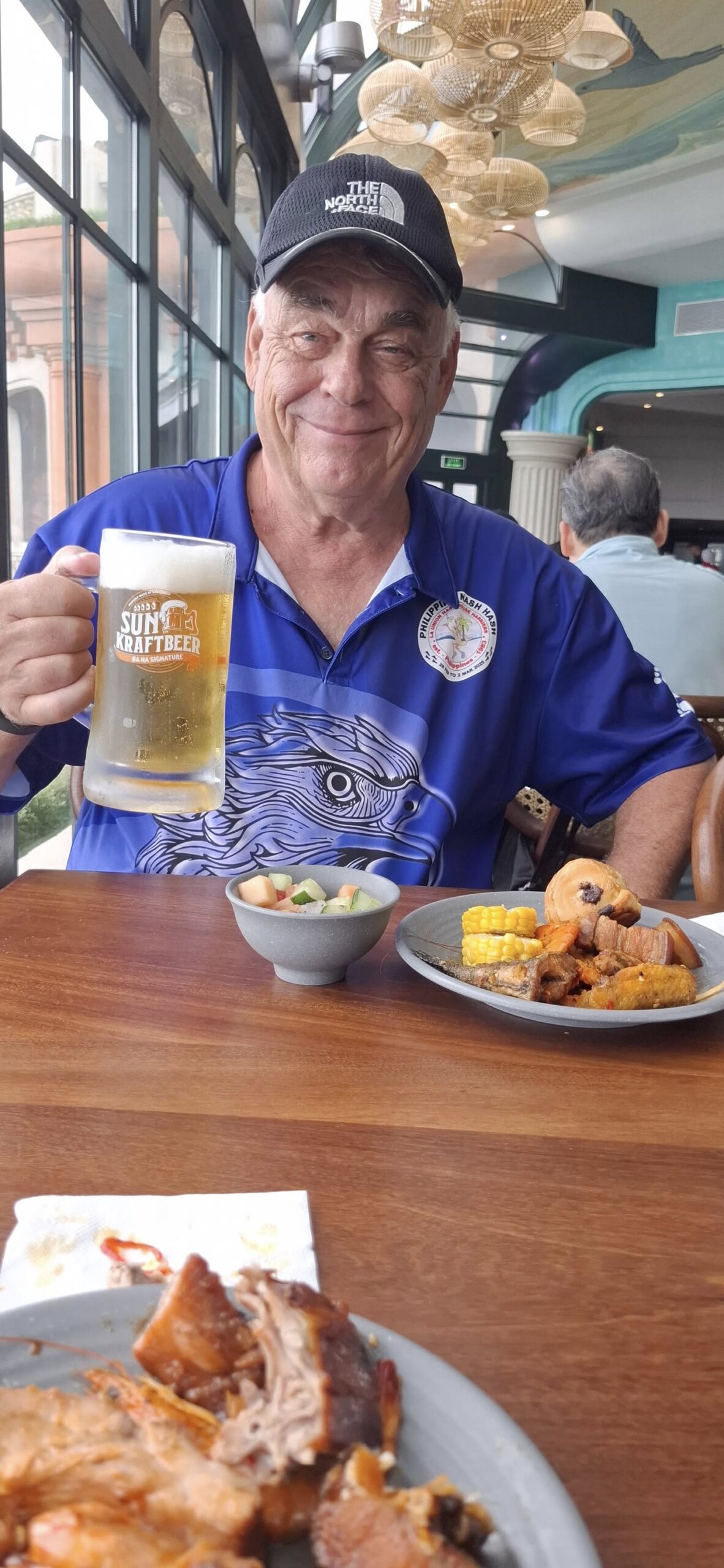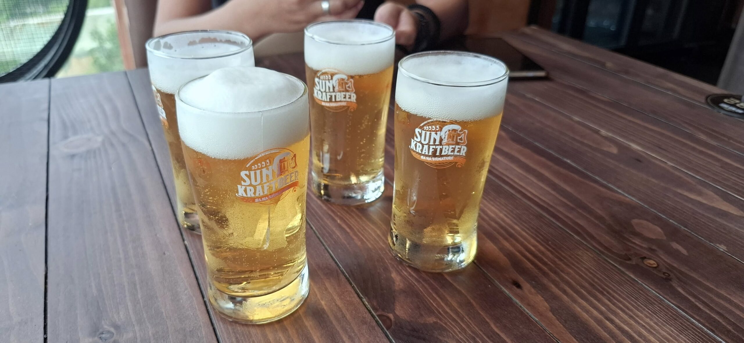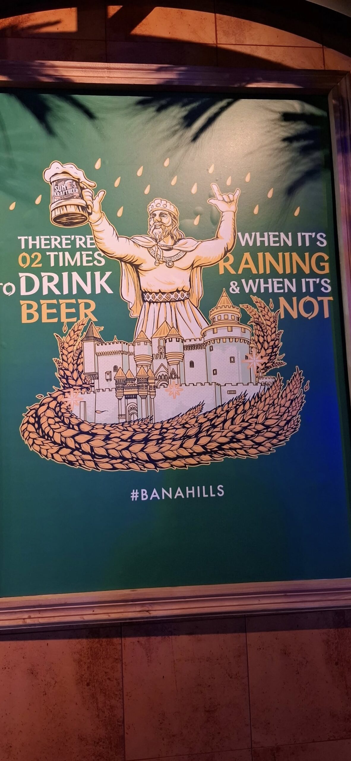 I gave the barkeep my two coupons……and he gave me FOUR draft beers. Swan had one, and I had three. They were small glasses, mind you.The beer pavilionBut only if you are alone or with someone.Swan horsing around.A windmill is good to have.A time travel vibeA garden of Goddesses.Our tour package included a free buffet (one t) lunch.My plate.I paid for that beer and got a full pint.A rare appearance of Old Glory.The Golden Bridge awaits our crossing.It was insanely crowded.But we made it.What a pisser.I guess that’s a sun skirt.I’m not sure what to think.I forgot what I was going to say about this.The back of Buddha’s head. I understand there is a temple here, but we didn’t see it. Not part of the resort, and not sure how you would access it.The view from our mountaintop vantage point.What are you pointing at?Never mind, she has a heart of stone.This is definitely a hands-on resort.And it is huge.And apparently, they aren’t done yet.As we prepared to depart, I caught a glimpse of Gandalf. Is he grey or white?Down we go.I would enjoy a return visit someday.Rush hour traffic in Da Nang was no picnic.