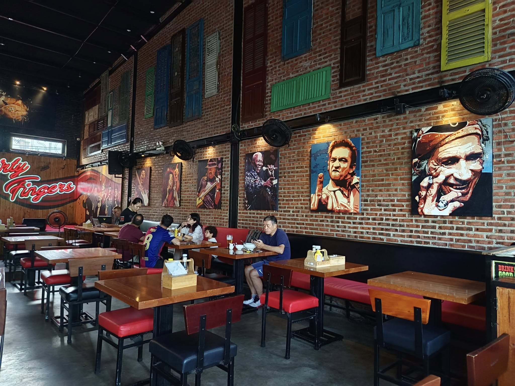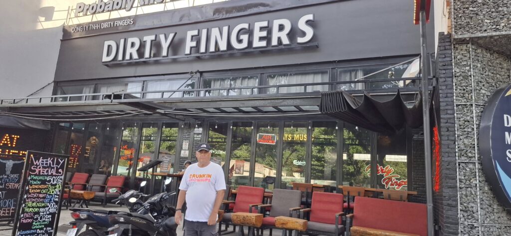 On the drive back to town, our driver told us about a place we might like to visit for a meal named Dirty Fingers. He said when an American friend first invited him, he found the name off-putting and didn’t want to go. But once he was convinced to give it a try, he really enjoyed the food. It’s about a 2K hike from our hotel, so after some rest, we headed out for some exercise and nutrition. The walk took us away from the touristy district, and there was a more laid-back vibe to enjoy.