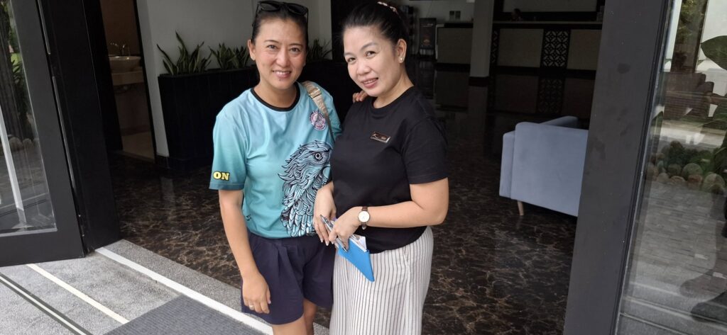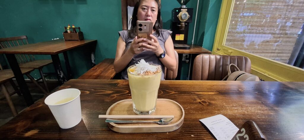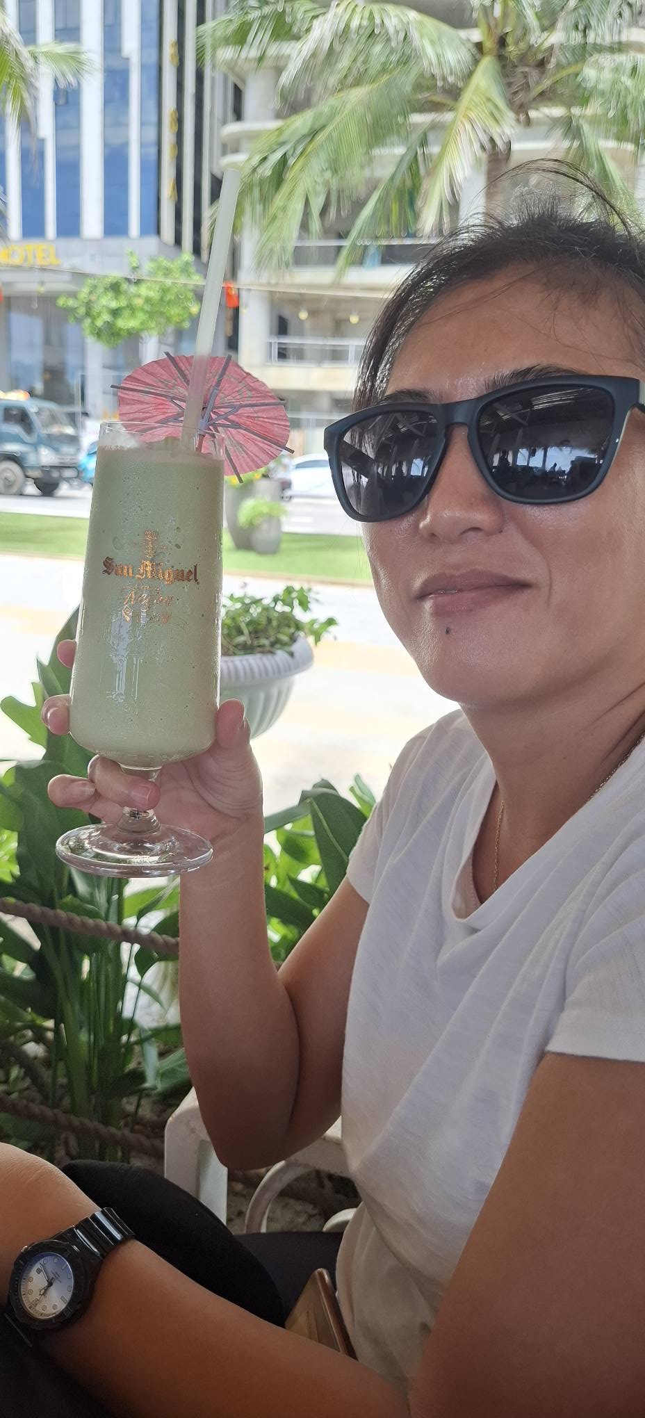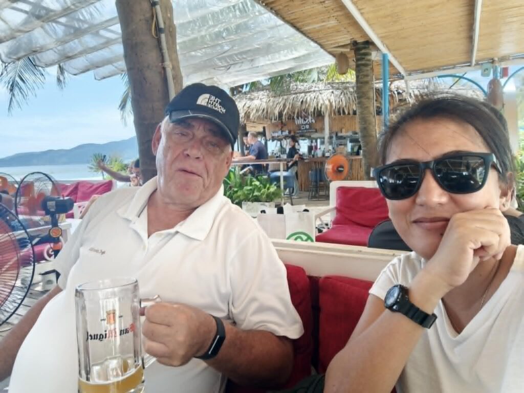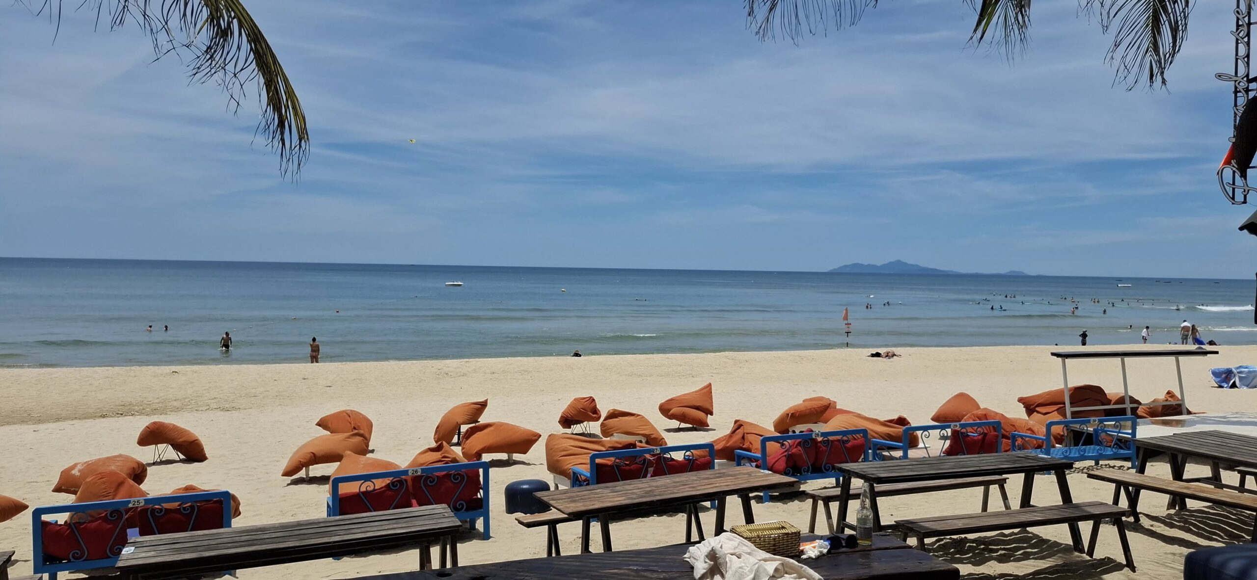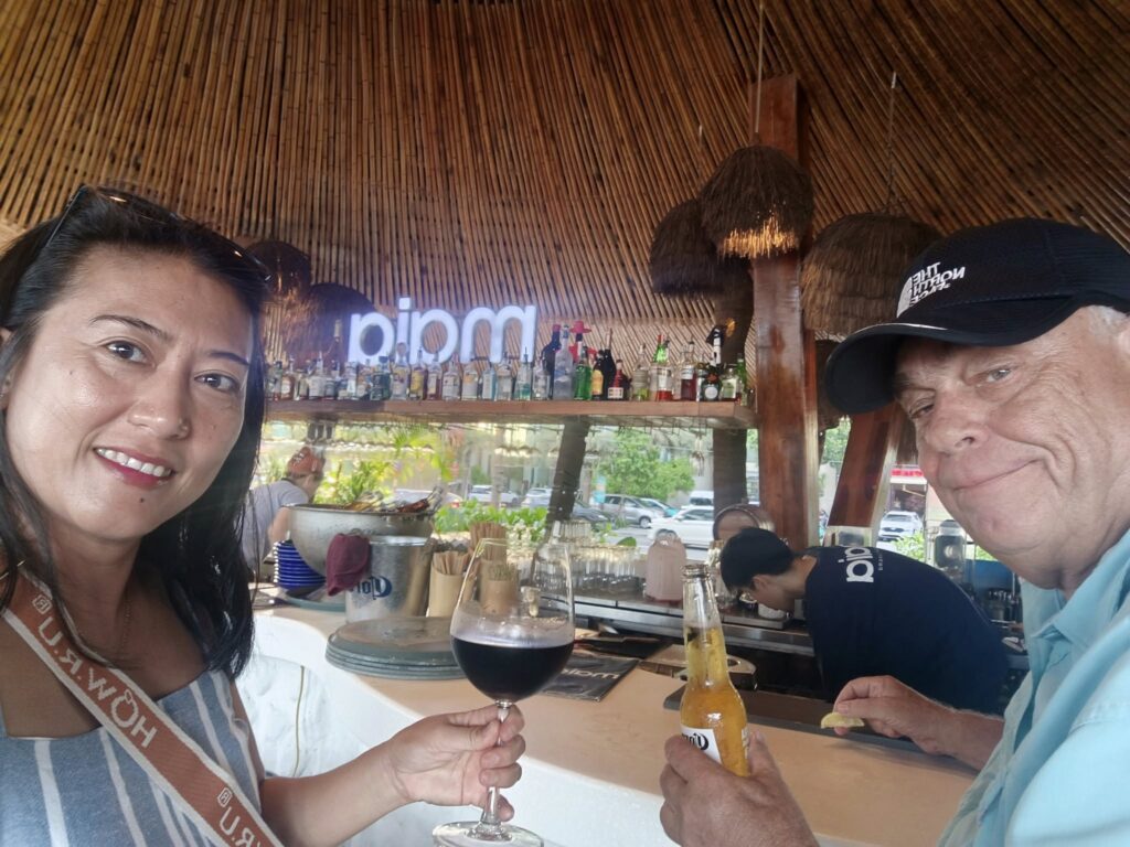 After breakfast, we hit a nearby convenience store to restock the fridge in our room. We killed the final hour before the driver‘s arrival at the beach bar across the road from our hotel.Enjoying the ocean view.