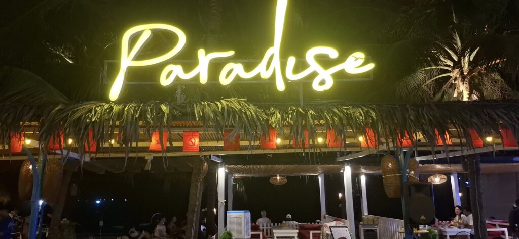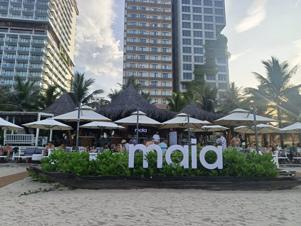 So, after a pleasant visit to the Maia Beach Bar, we headed for a recommended dinner venue. Stopped at an ATM to enlarge my dong.
