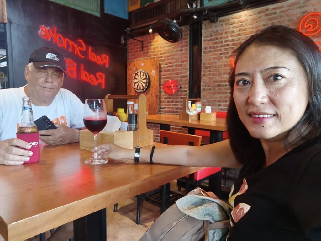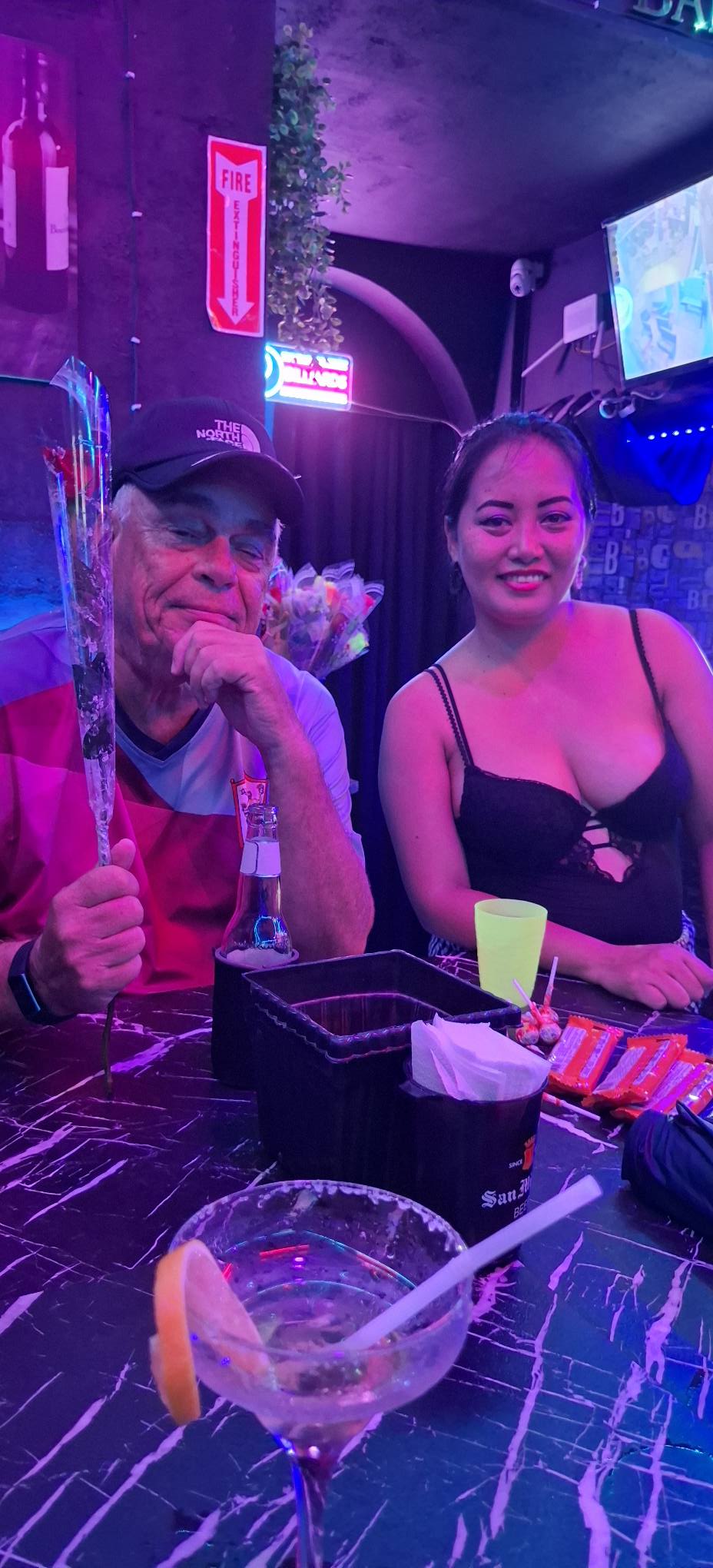 We did our nightcap at Candy Bar, a relatively new venue that we’d never previously visited. It’s a dancing bar with a pool table in the back, but there was nothing really that made it stand out in my mind. We were the only customers in the early evening hours on a rainy night. They didn’t have wine, so Swan ordered a margarita. It took the bartender two tries to get it right. Swan knew one of the waitresses from somewhere else long ago, and my friend Narissa is now working at Candy. I met Narissa several years ago at Cheap Charlies, and we took a trip together to Bataan, which I wrote about here. So, we enjoyed some friendly company, and the gals had a lady drink on our tab.