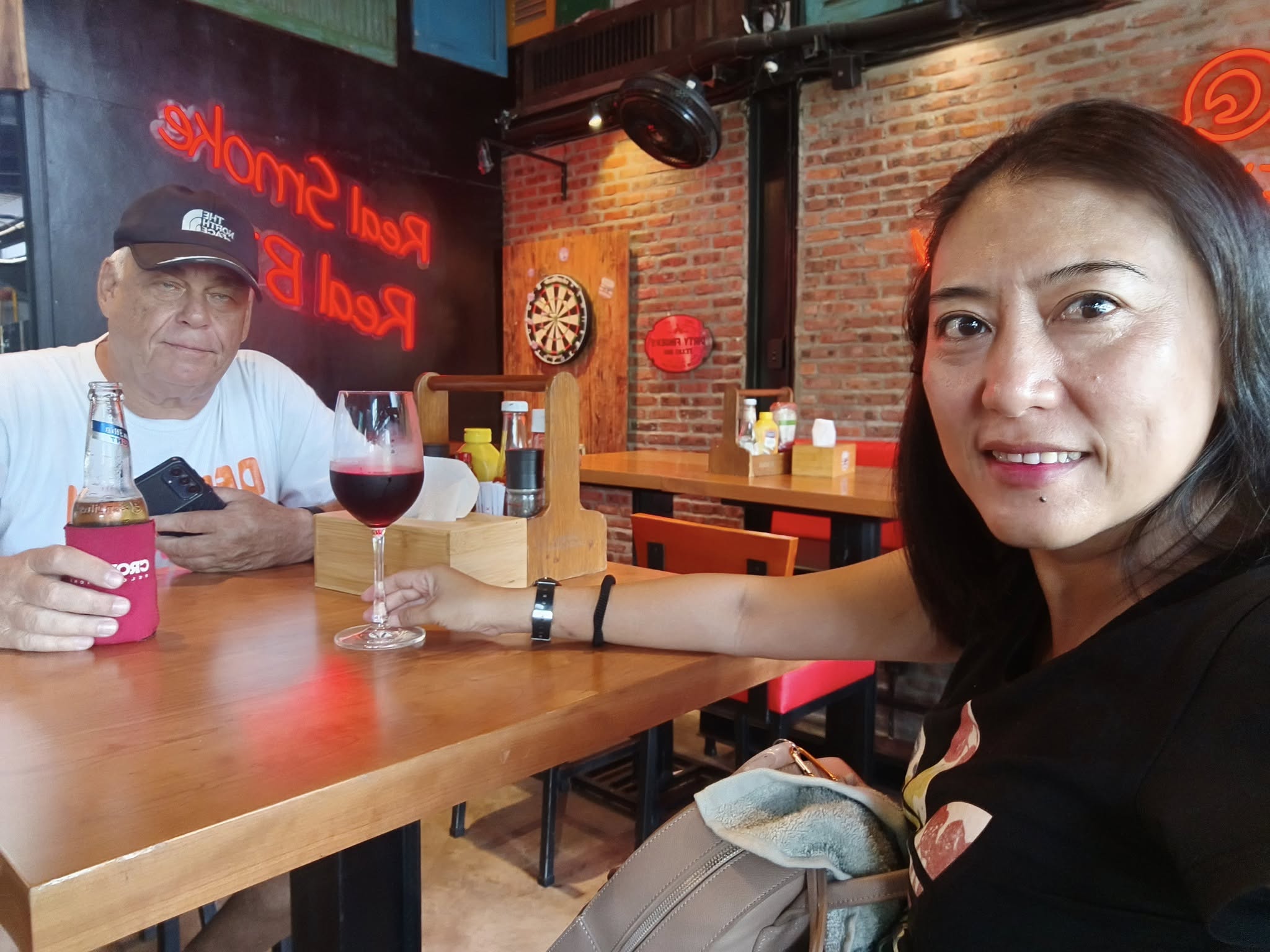 We also had a pleasant chat with the female manager of Jumpin’ Jacks about plans to attract more customers to the bar. She confirmed that they will not have dancers, which I think is a good thing. Plenty of other bars around for that crowd. She wants to sponsor a pool tournament at least once a week, and they will have a team join the pool league. She also has plans to have a live band play weekly. Then she took us to a nice room in the back that they plan to turn into a karaoke venue. I told her about the norebang (singing rooms) in Korea and that I thought it was a great idea not to let the noise of bad singing intrude on the other bar customers. Her plan is to charge a flat rate for the room use, which can be reduced through the purchase of consumables from the bar. So, I’m looking forward to seeing how things work out, and we will definitely be back again, making Jumpin’ Jacks a regular stop.