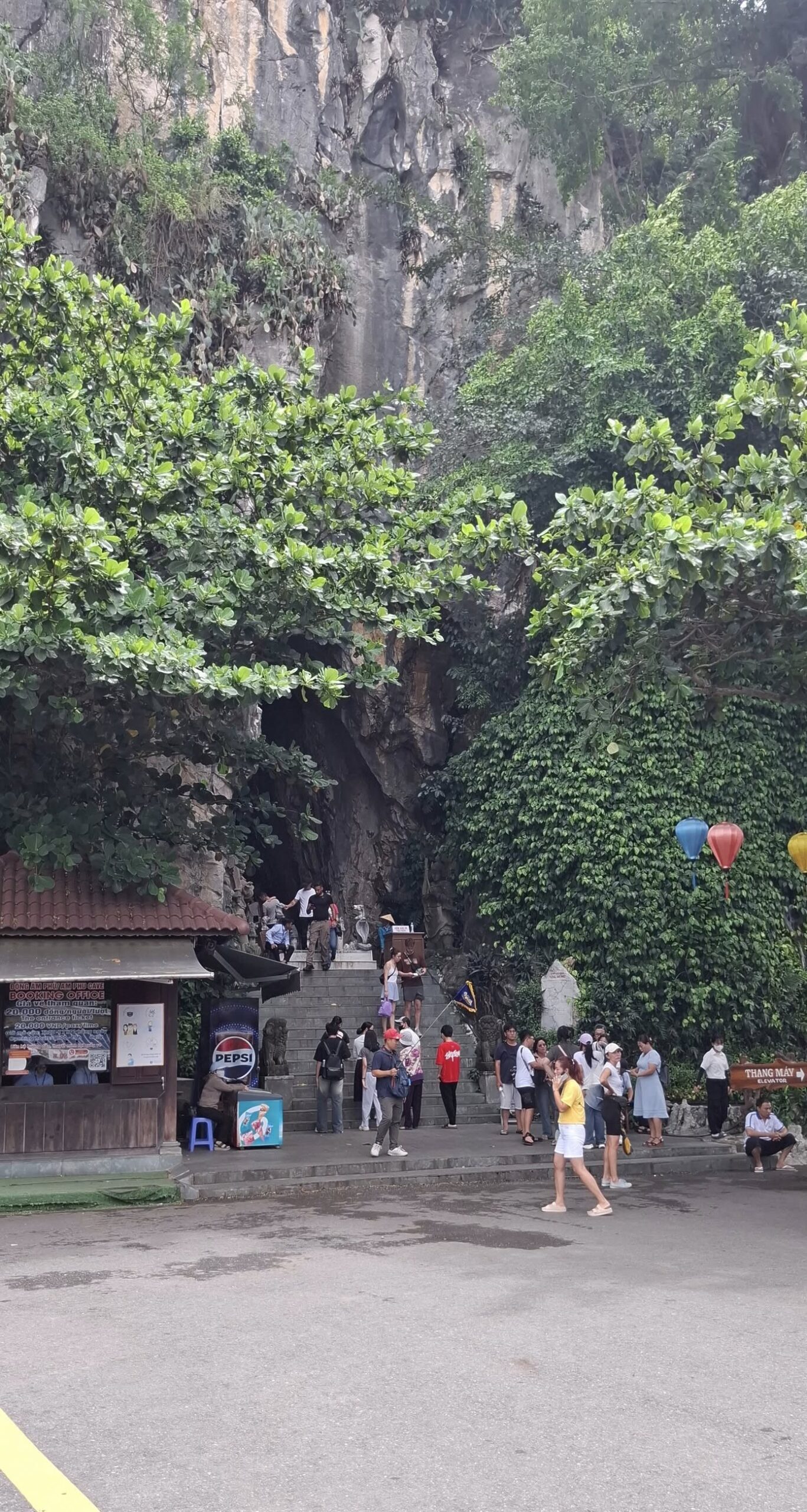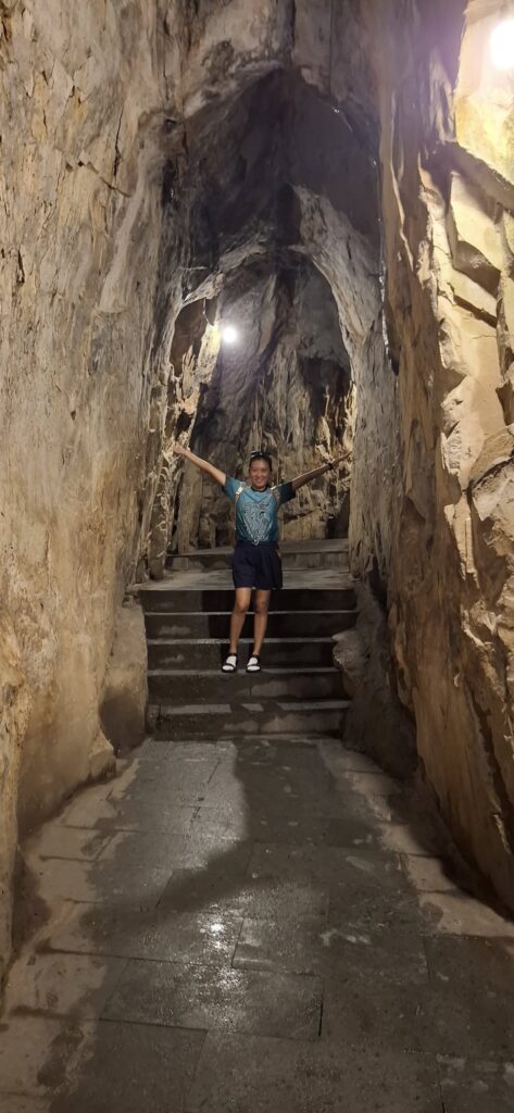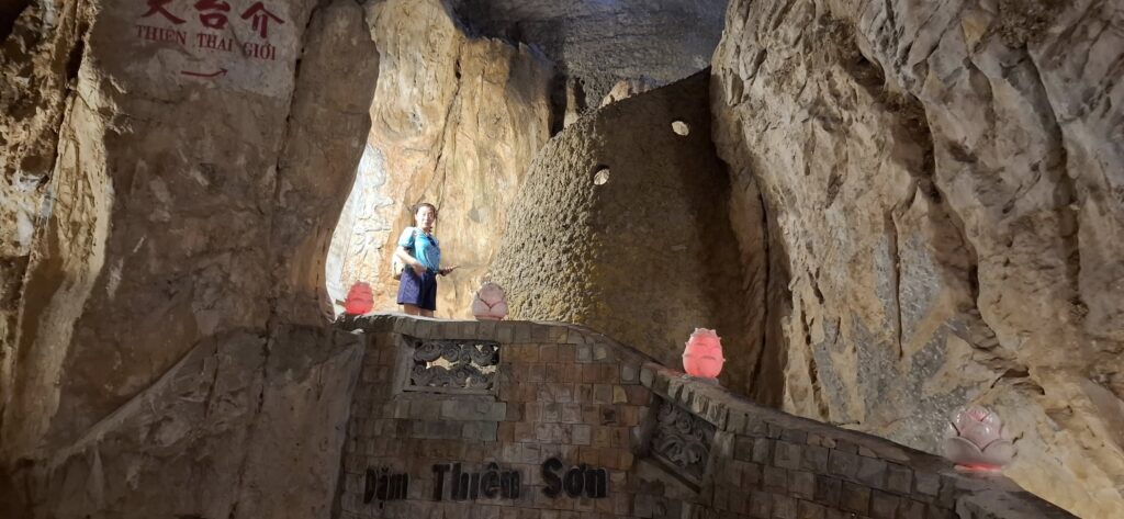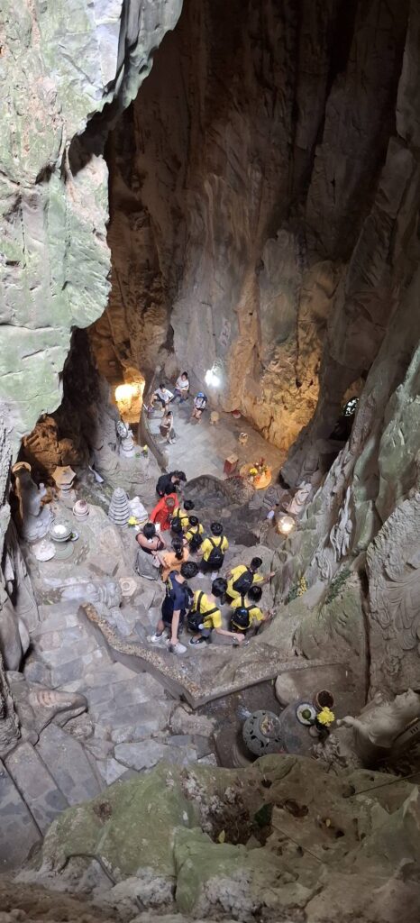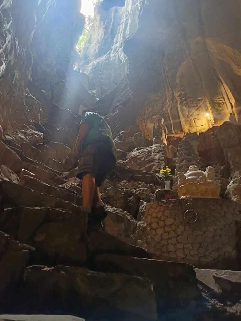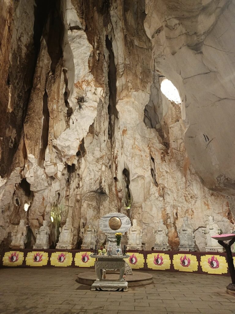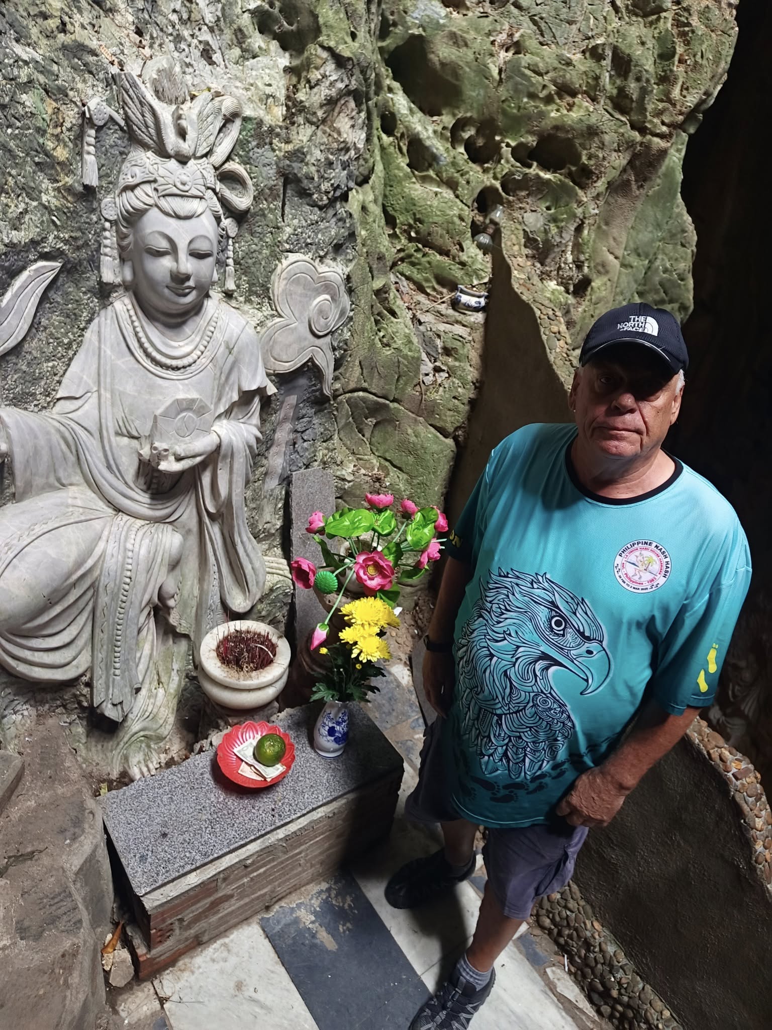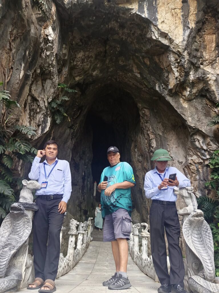 Hitting the highway with driver Tom.One of the mountains they call Marble.The entrance to the cave. As usual, there were tons of tourists sharing the experience. I understand this is the busiest time of year for tourism in this area.Should I stay or should I go?Penetrating the void.Inside the cave were statues and other relics.Most of the passageways were easily navigable, but some places required crouching down.Hello up there!It got a little dicey climbing these steep, narrow, and uneven steps. The voice in my head kept saying, “walk towards the light.”You only live once (unless you get that do-over life).Almost there…Made it to the top!A view from here.And one of the other Marble Mountains we didn’t visit.A random stranger offered to take a photo of us.Going back down was even scarier than the climb.