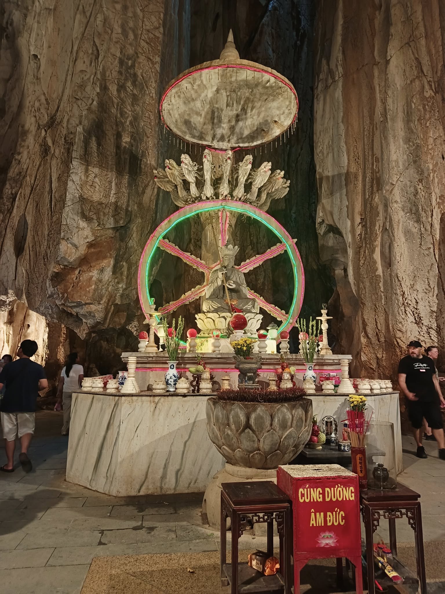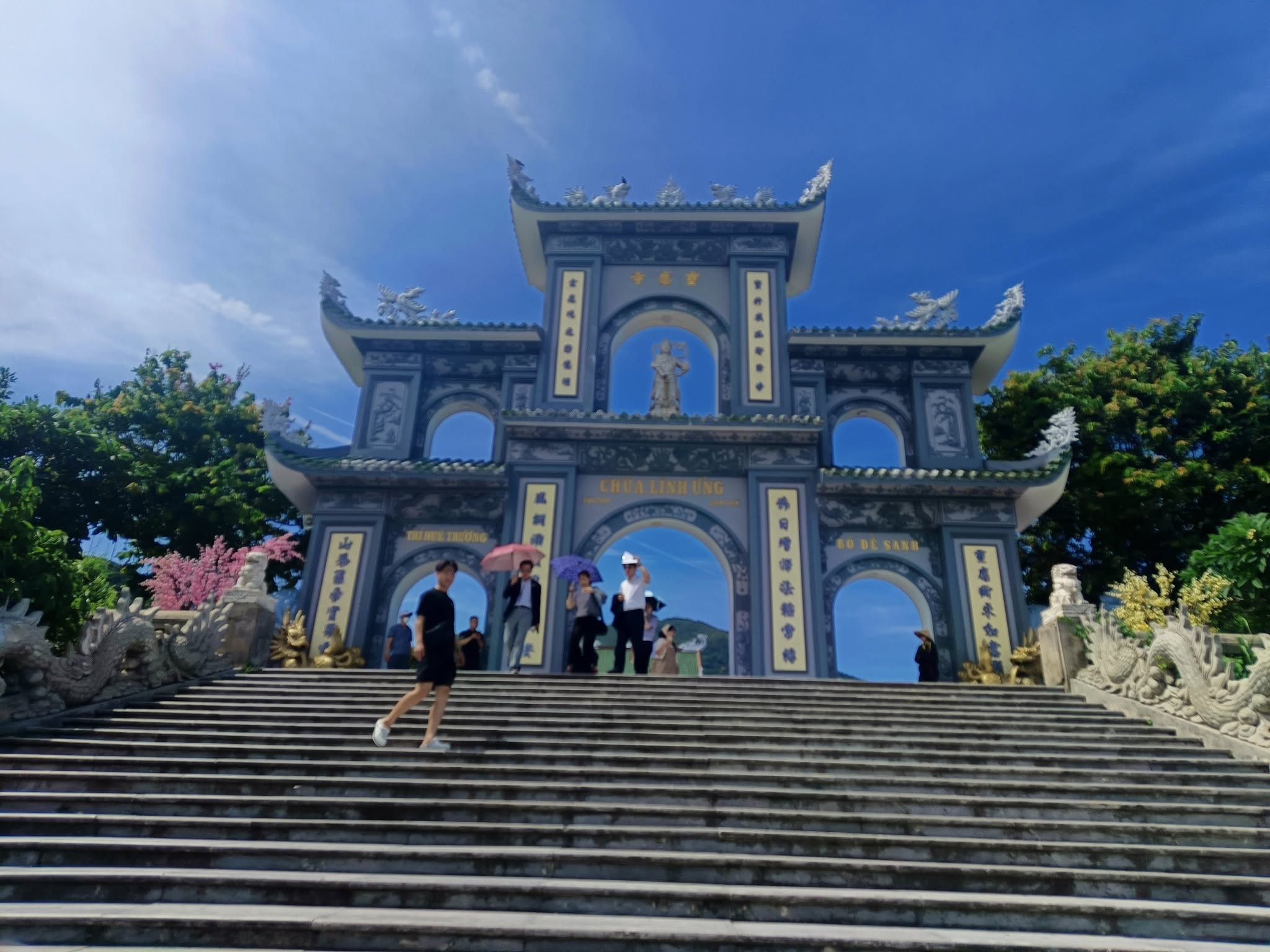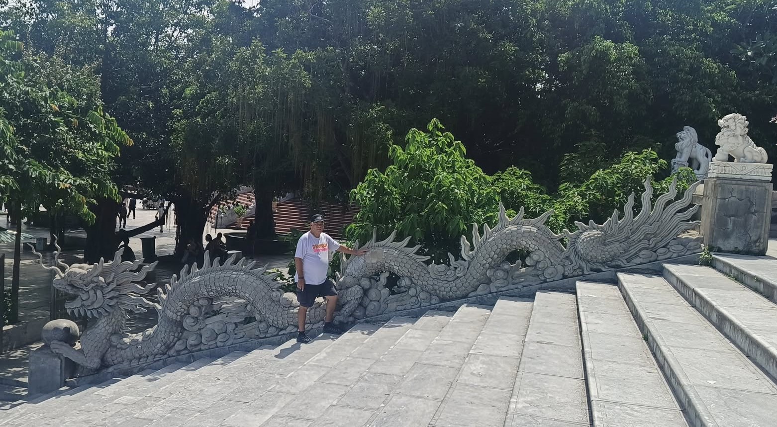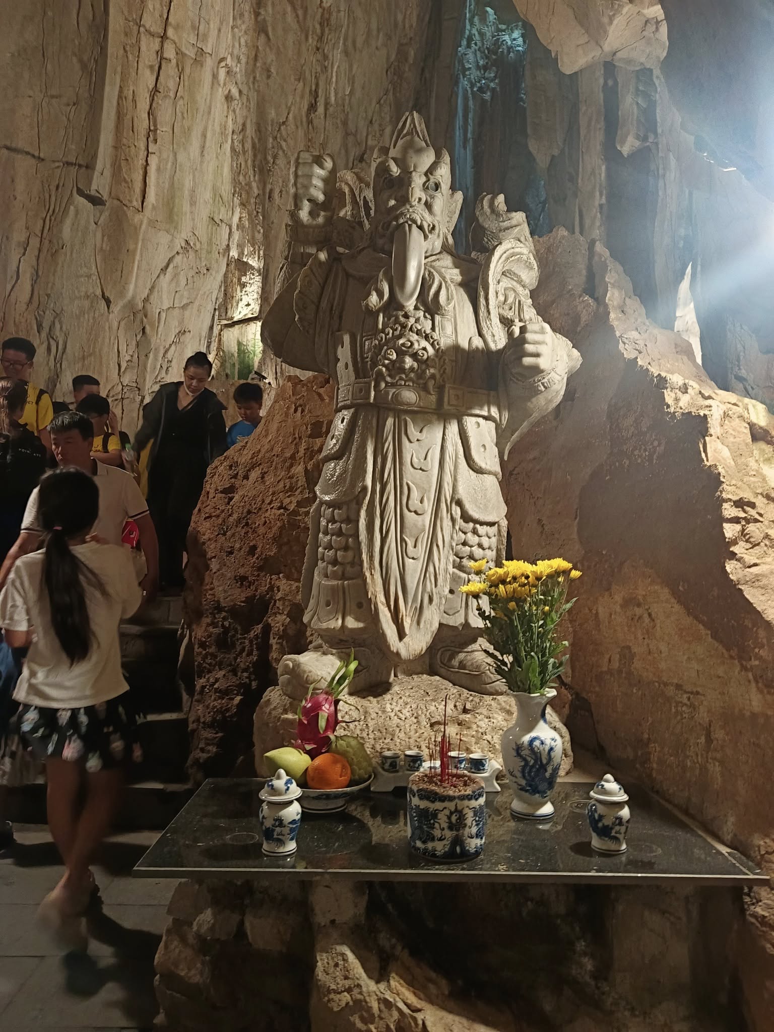 Hitting the highway with driver Tom.One of the mountains they call Marble.The entrance to the cave. As usual, there were tons of tourists sharing the experience. I understand this is the busiest time of year for tourism in this area.Should I stay or should I go?Penetrating the void.Inside the cave were statues and other relics.Most of the passageways were easily navigable, but some places required crouching down.Hello up there!It got a little dicey climbing these steep, narrow, and uneven steps. The voice in my head kept saying, “walk towards the light.”You only live once (unless you get that do-over life).Almost there…Made it to the top!A view from here.And one of the other Marble Mountains we didn’t visit.A random stranger offered to take a photo of us.Going back down was even scarier than the climb.