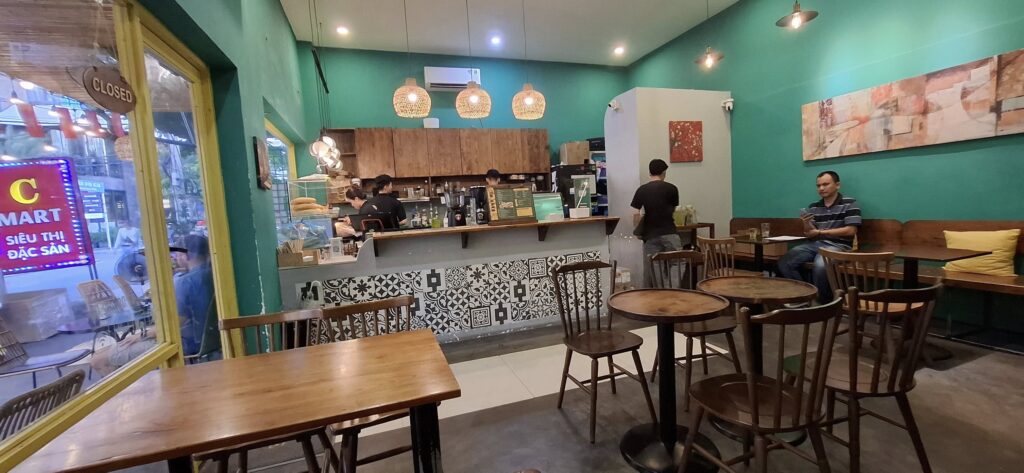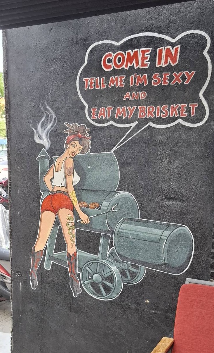 Owner Steve saw me admiring the artwork above and told me it had earned him a visit from the authorities. The complaint was that the figure wearing the traditional Vietnamese hat (the non-la) was mocking Ho Chi Minh, the founder of communist Vietnam. Steve explained to the powers that be that the figure was Karl Marx, and no disrespect to Mr. Minh was intended. At first, they were not convinced, and Steve was prepared to replace the non-la with a clown’s hat, but the authorities relented, and that modification didn’t happen. Ah, the joys of living under an authoritarian regime.