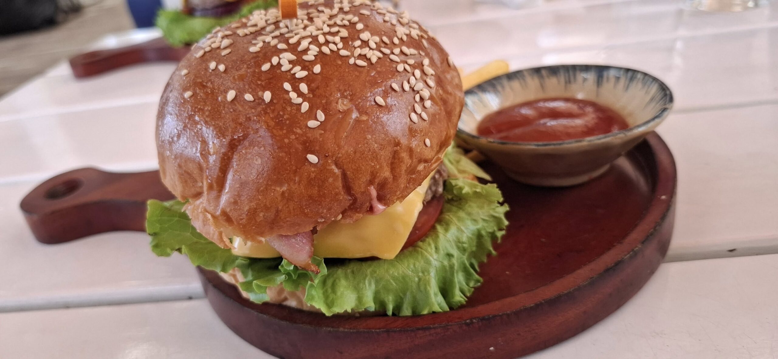 A fruity smoothie for Swan.And a San Miguel Light for me.My burger is served.