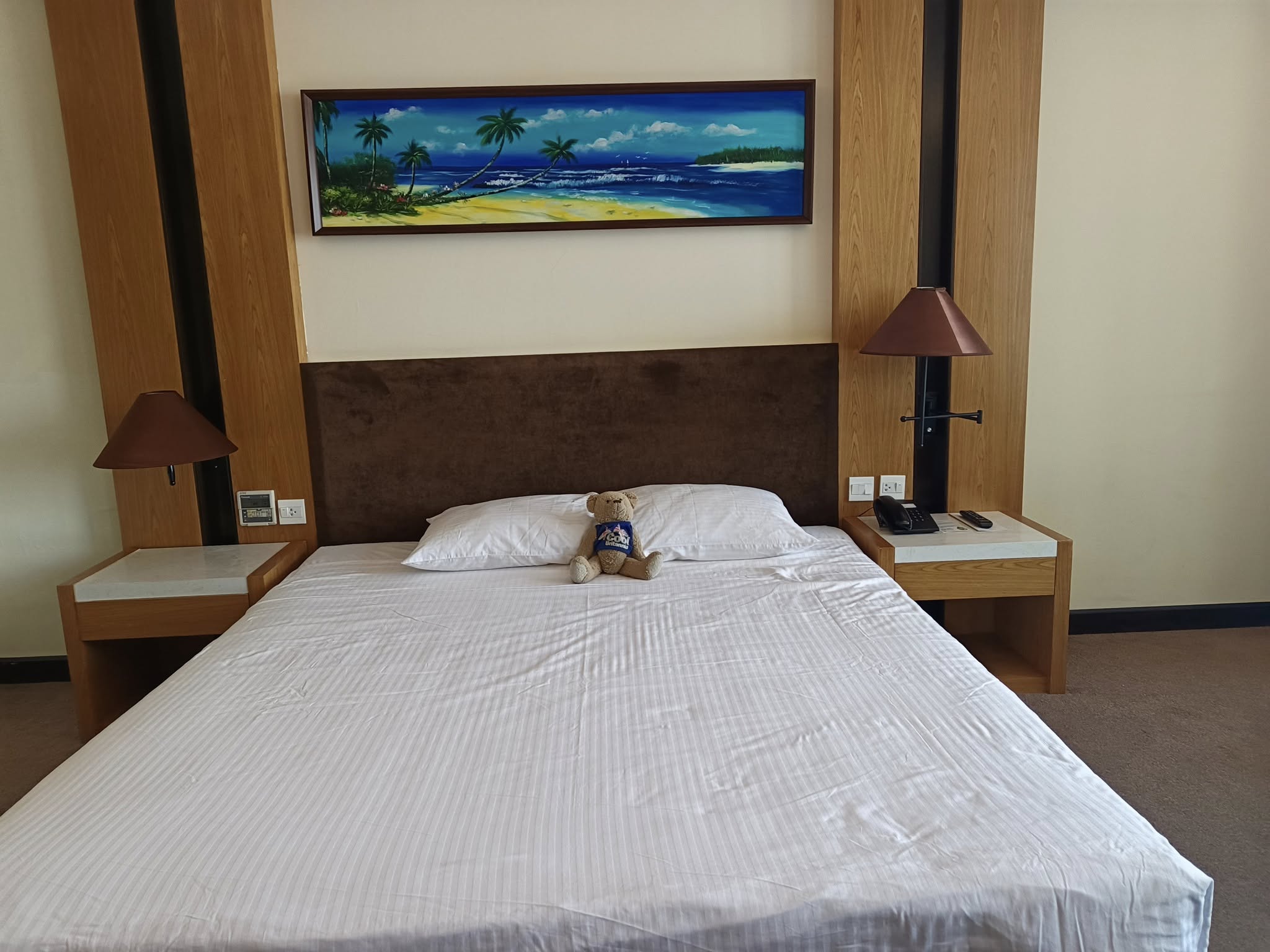 It’s a nice enough room, but I prefer to have more pillows. That’s Swan’s Teddy, who goes everywhere she does.