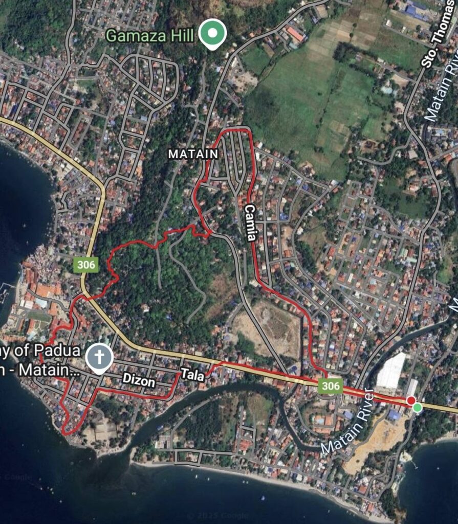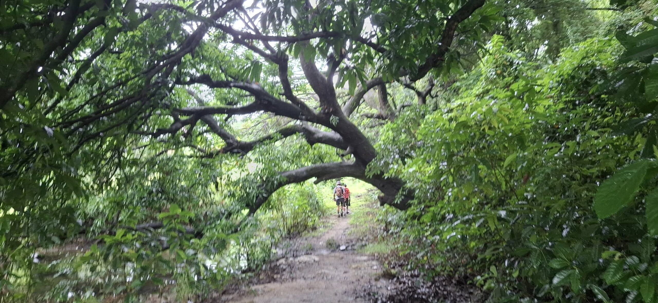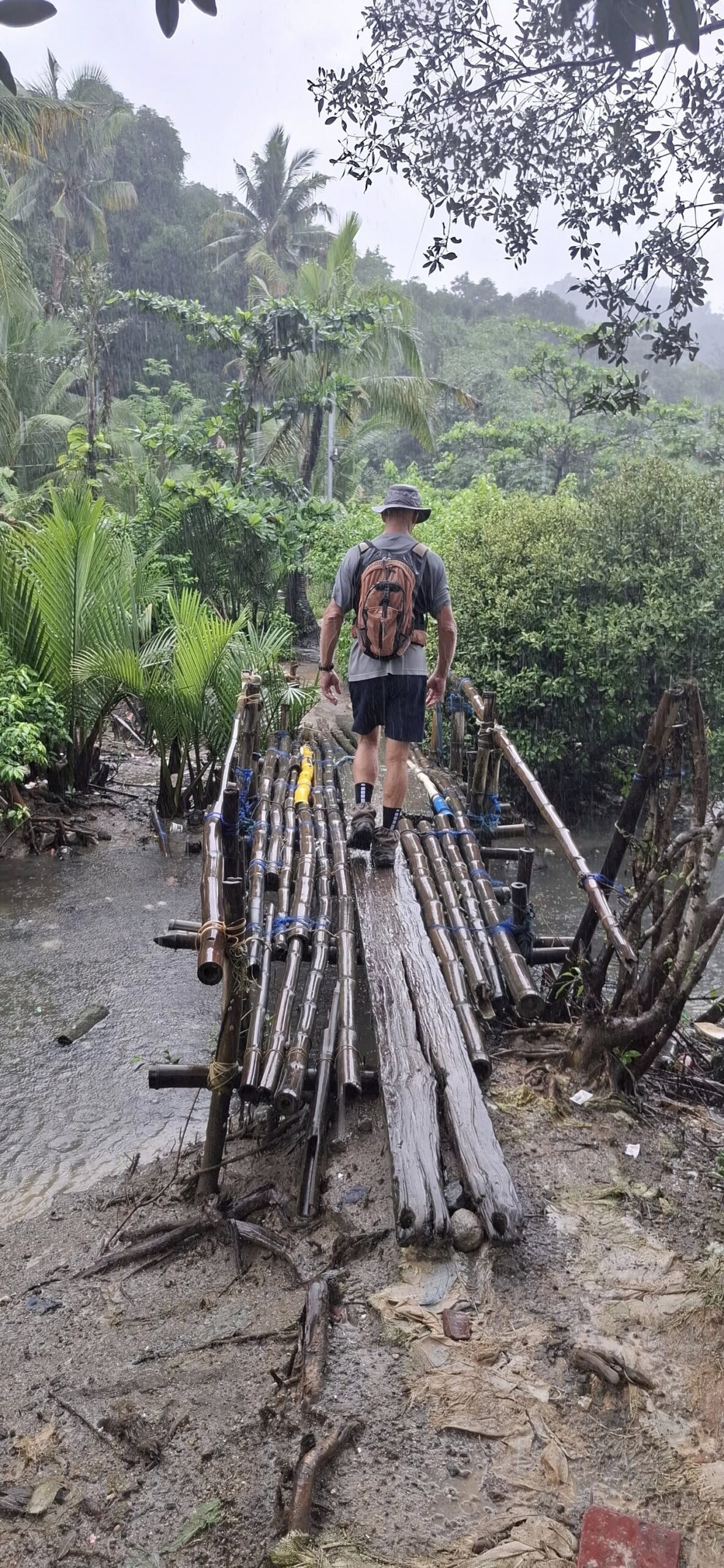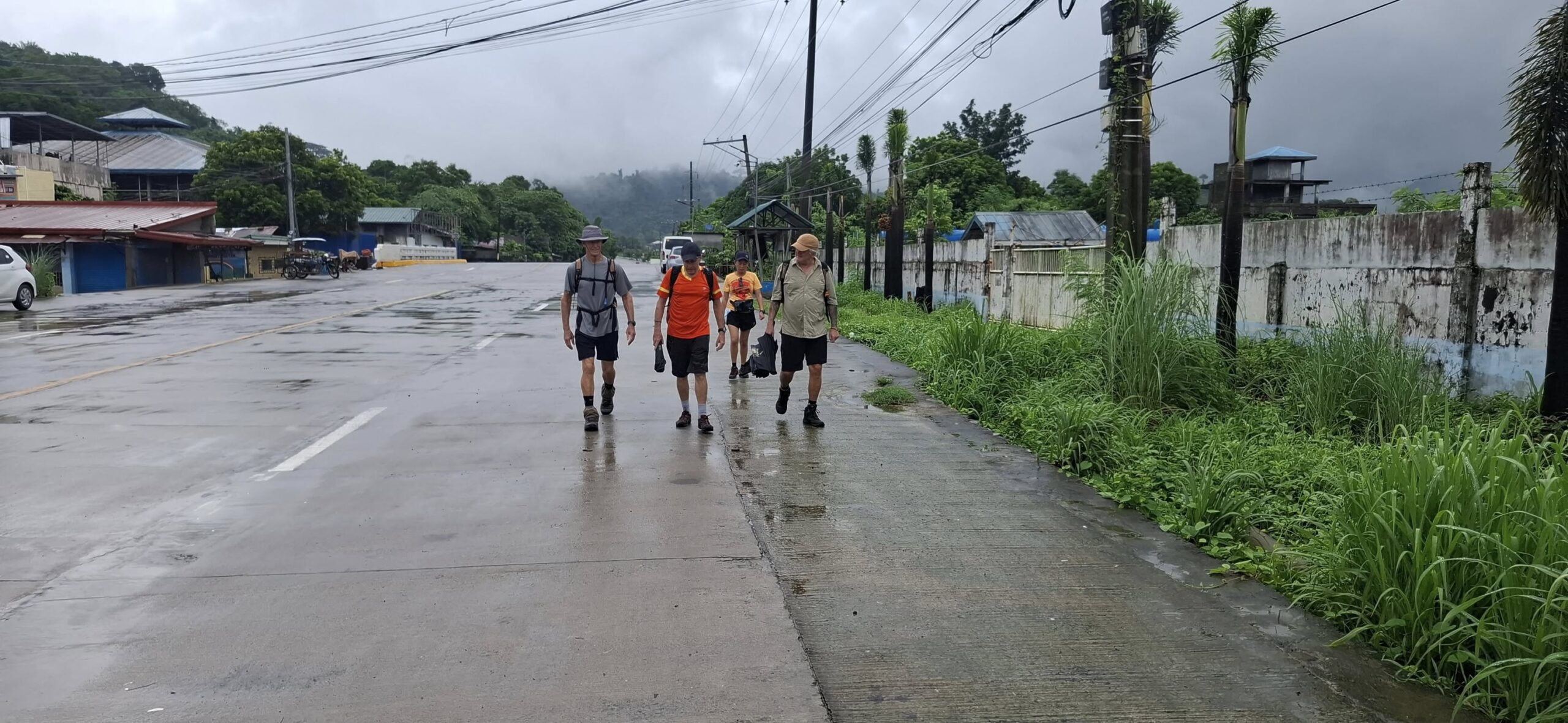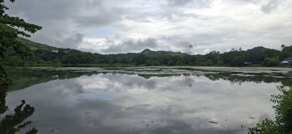 A long Jeepney ride to the far side of Subic brought us here.And off we went up Philseco Road.Off the road……and briefly onto the dirt.Pond, mountains, and clouds.Over a bridge.Reflections on another pond.Raindrops and rickety bridges.Heading for the highway and a Jeepney ride home.I guess I shouldn’t call it a loop, but it is a pleasant hike in any weather.