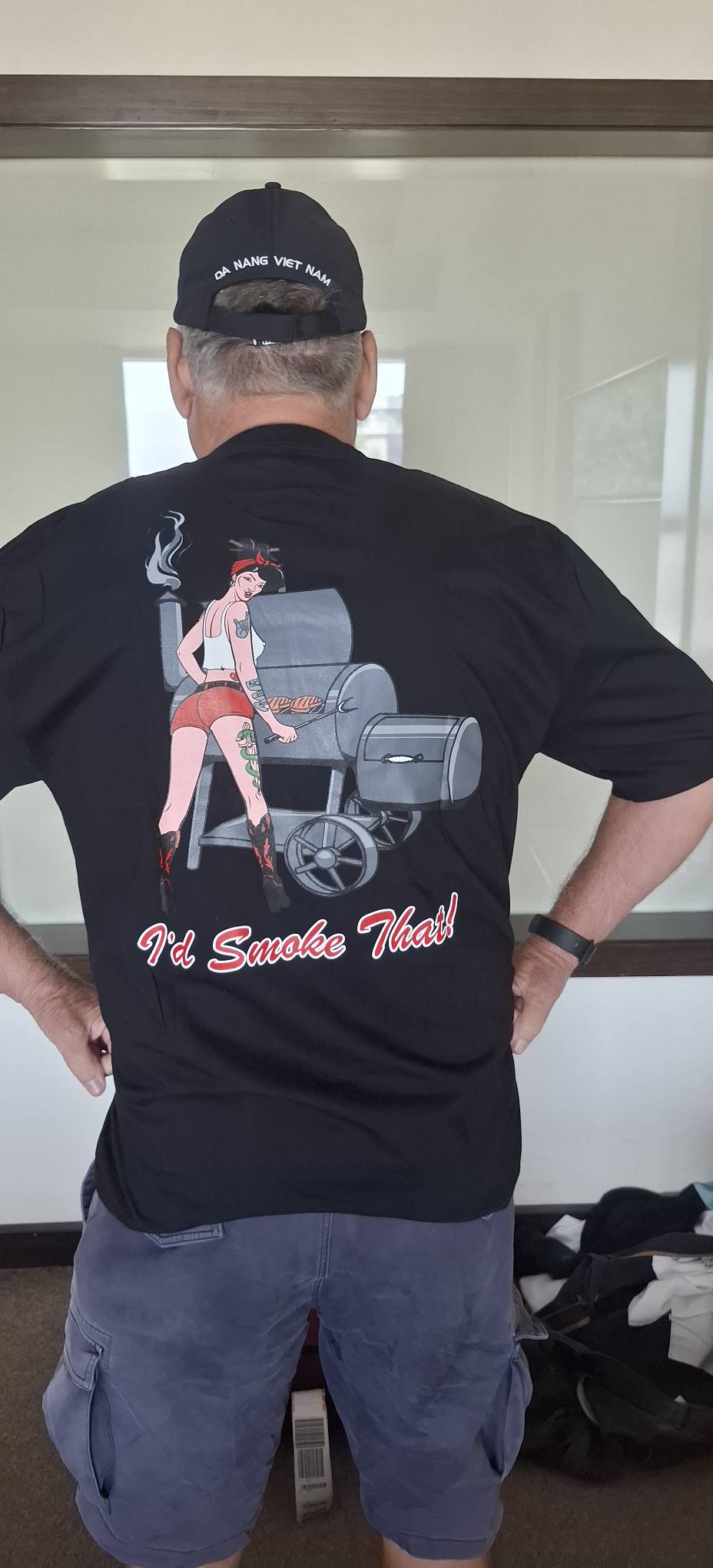 The front side of my new shirt and hat.And I love the backside (double entendre intended!)