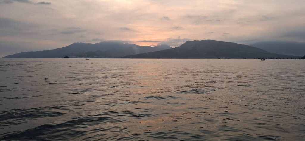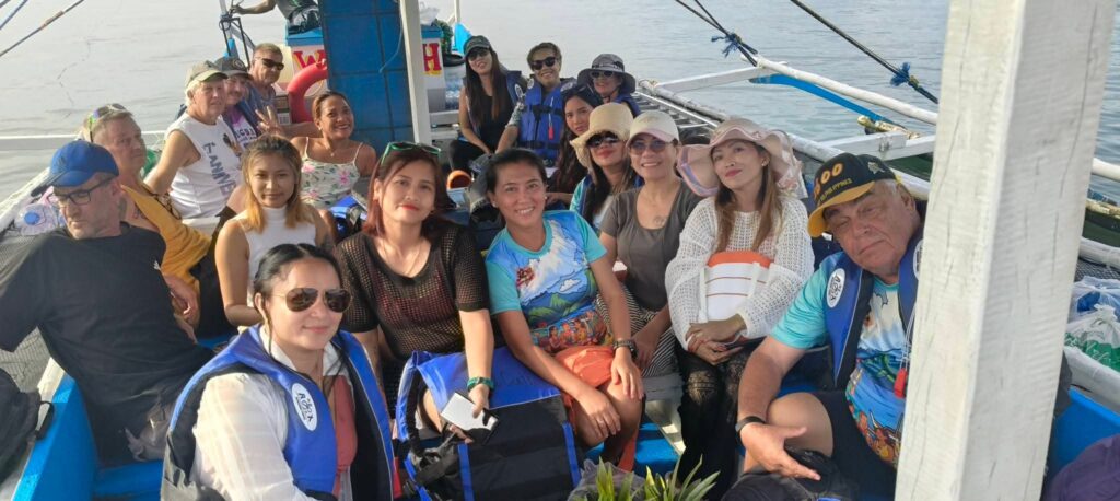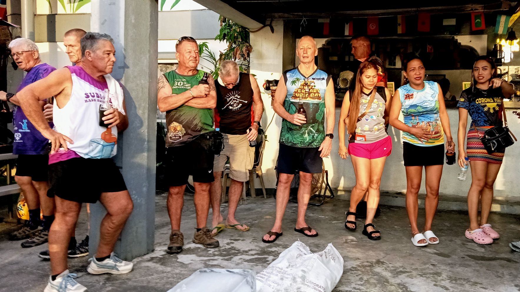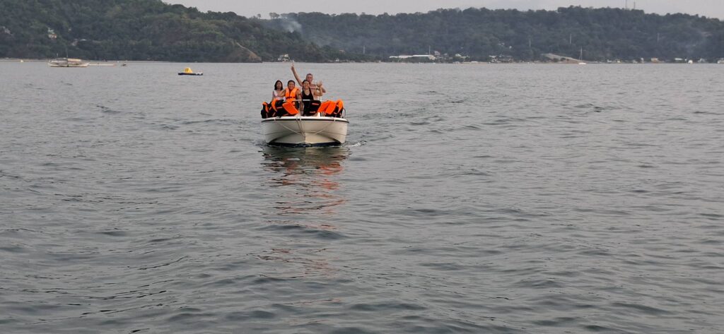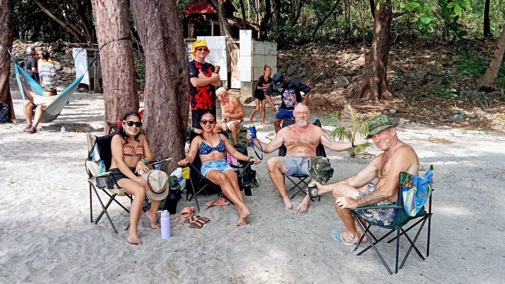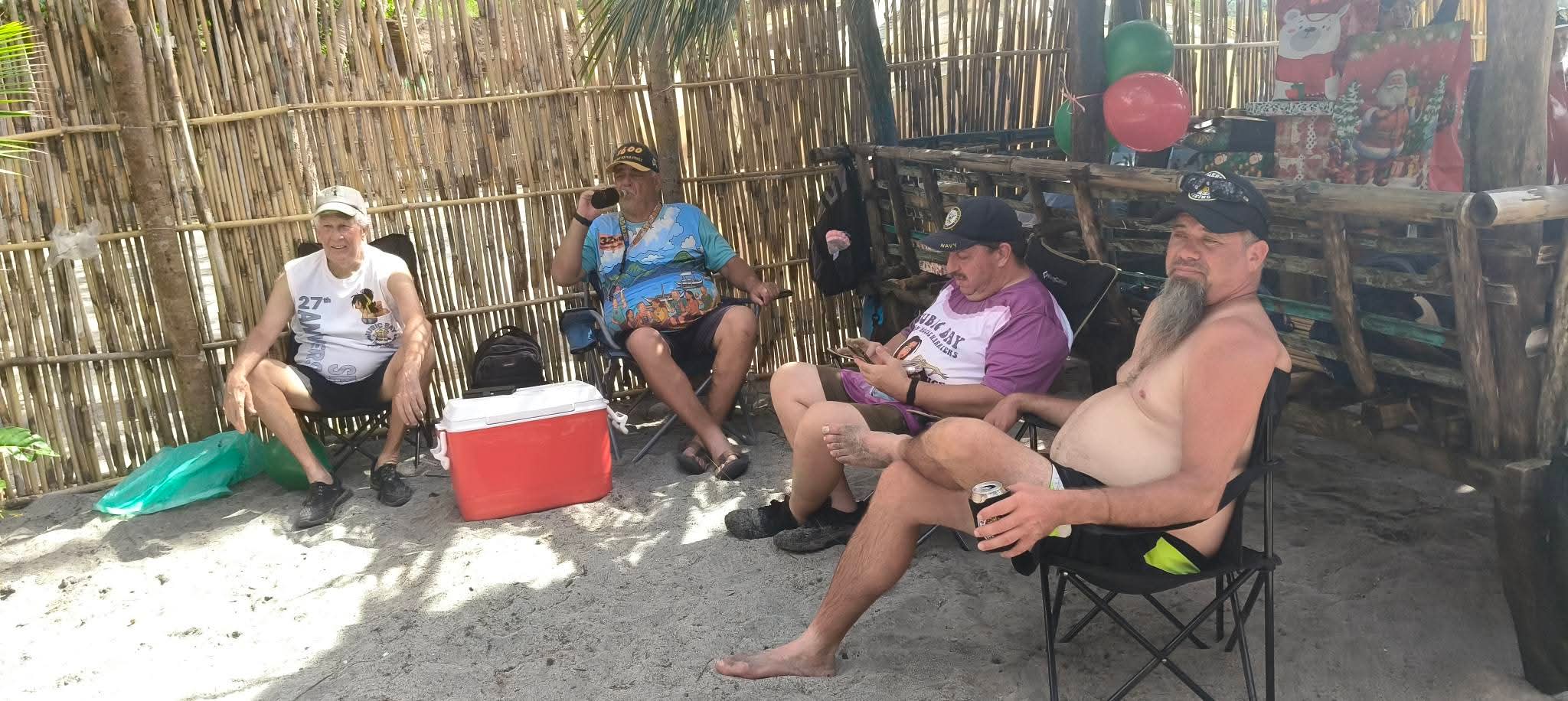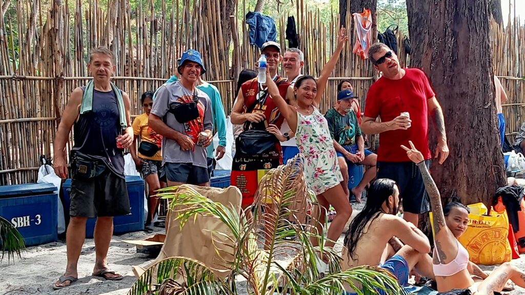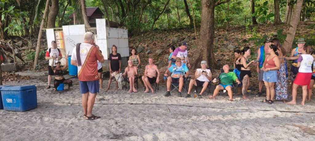 After the food was consumed, there were some games that I chose not to participate in. I didn’t even bother to watch, staying in my shady chair and enjoying my beer instead. The game portion seemed to go on and on, and the Hash Circle didn’t begin until well after 3 pm. I was a tad concerned about returning to Barretto in a rickety boat after dark. However, we finally departed Sampaloc Cove around 4:30. It was still daylight for most of the trip, although it was nighttime when we disembarked at Baloy Beach.