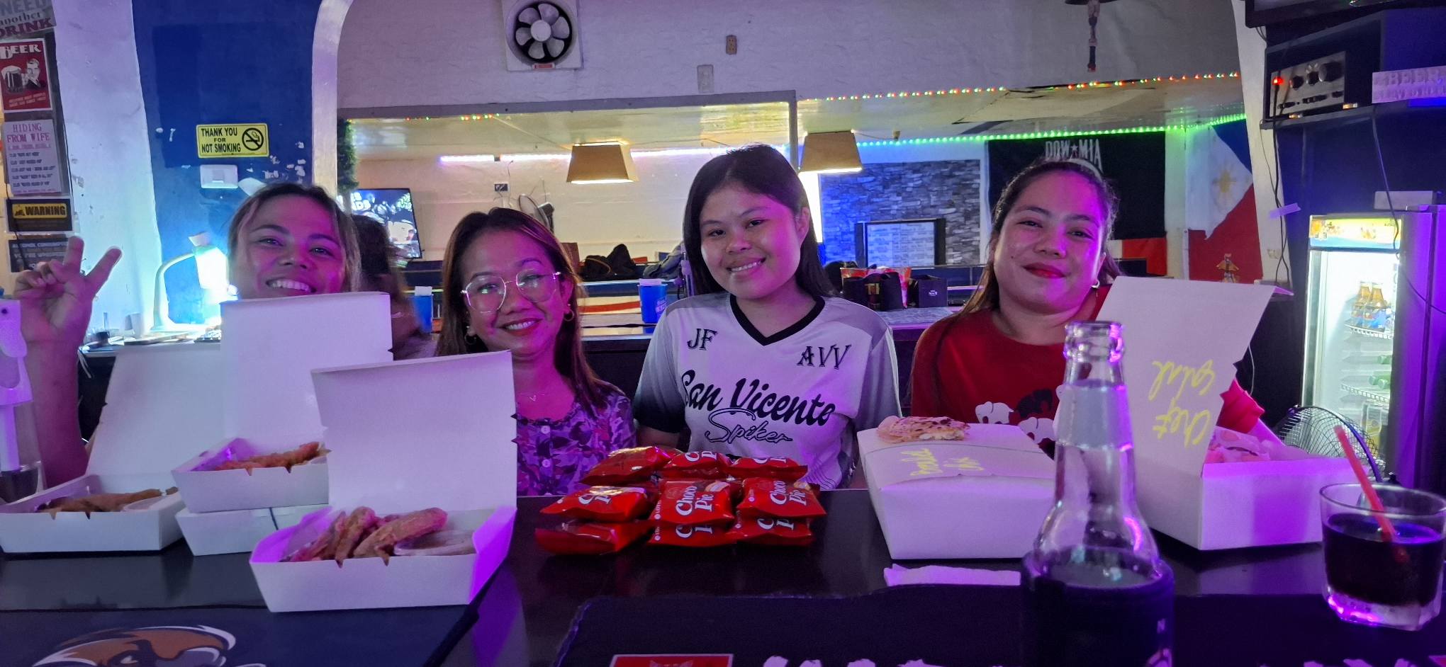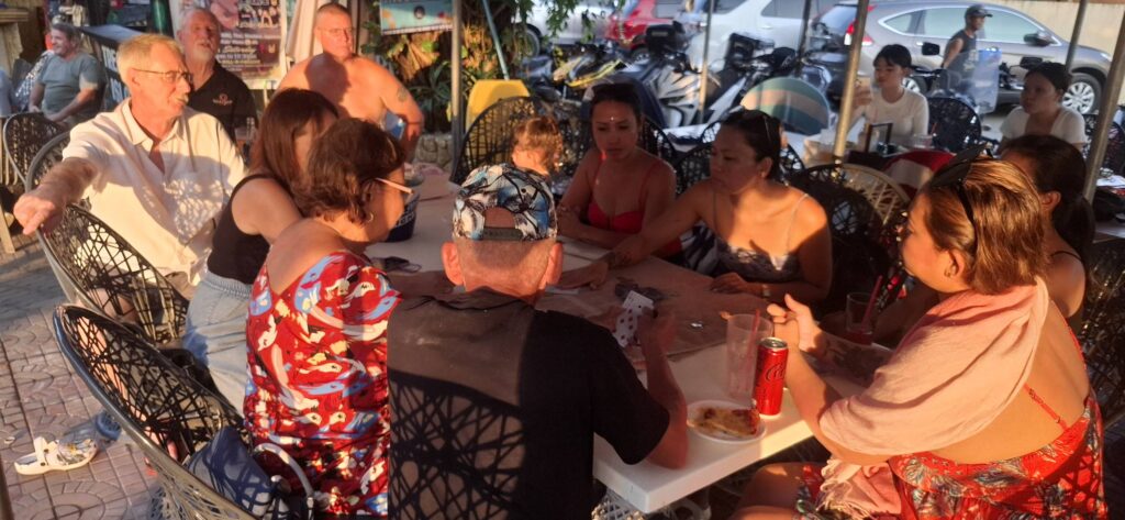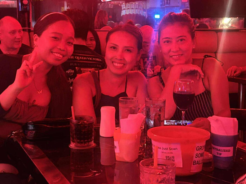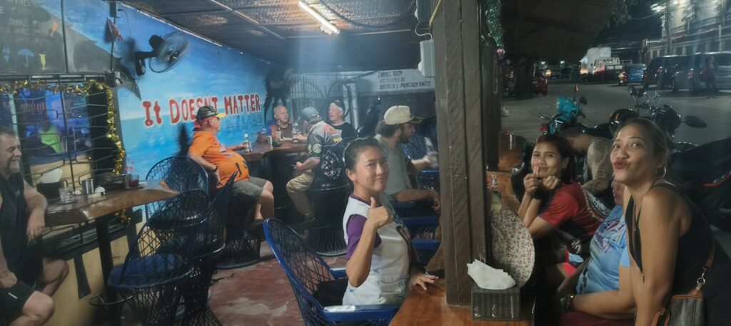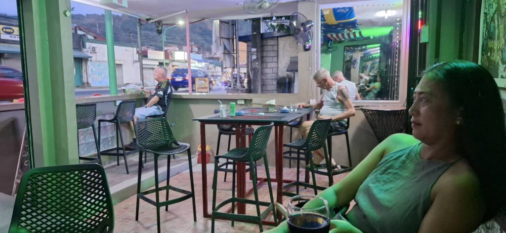After dinner, we paid a rare visit to the Alaska Club. Owner Jerry was there, and I purchased a ticket for the “Battle of the Bars” event taking place on Tuesday at Thumbstar. Jerry then joined us at our table, and we had an enjoyable chat reminiscing about the good ol’ days when his bar was in Angeles City, the bad days that led him to relocate to Barretto, and the recent lack of tourists that makes the bar business here a struggle.