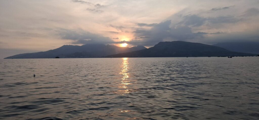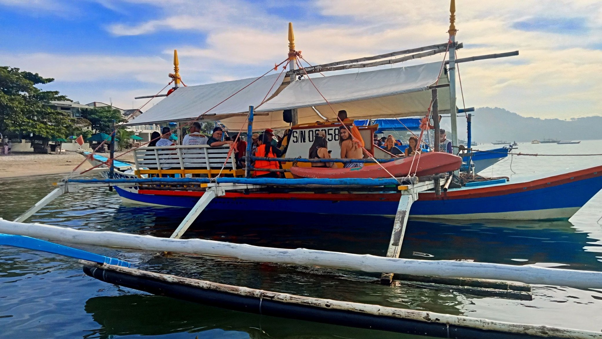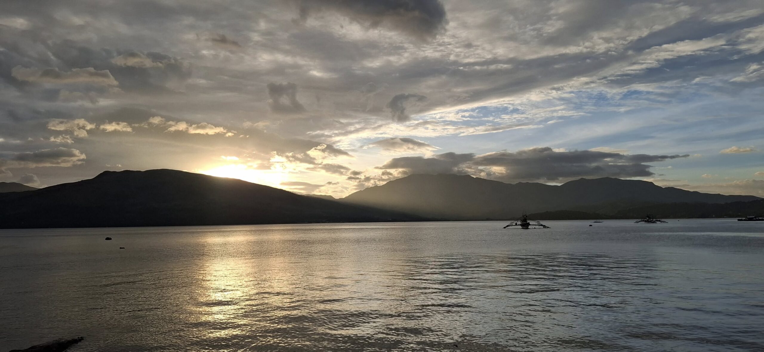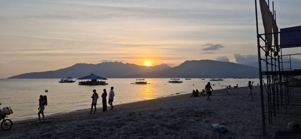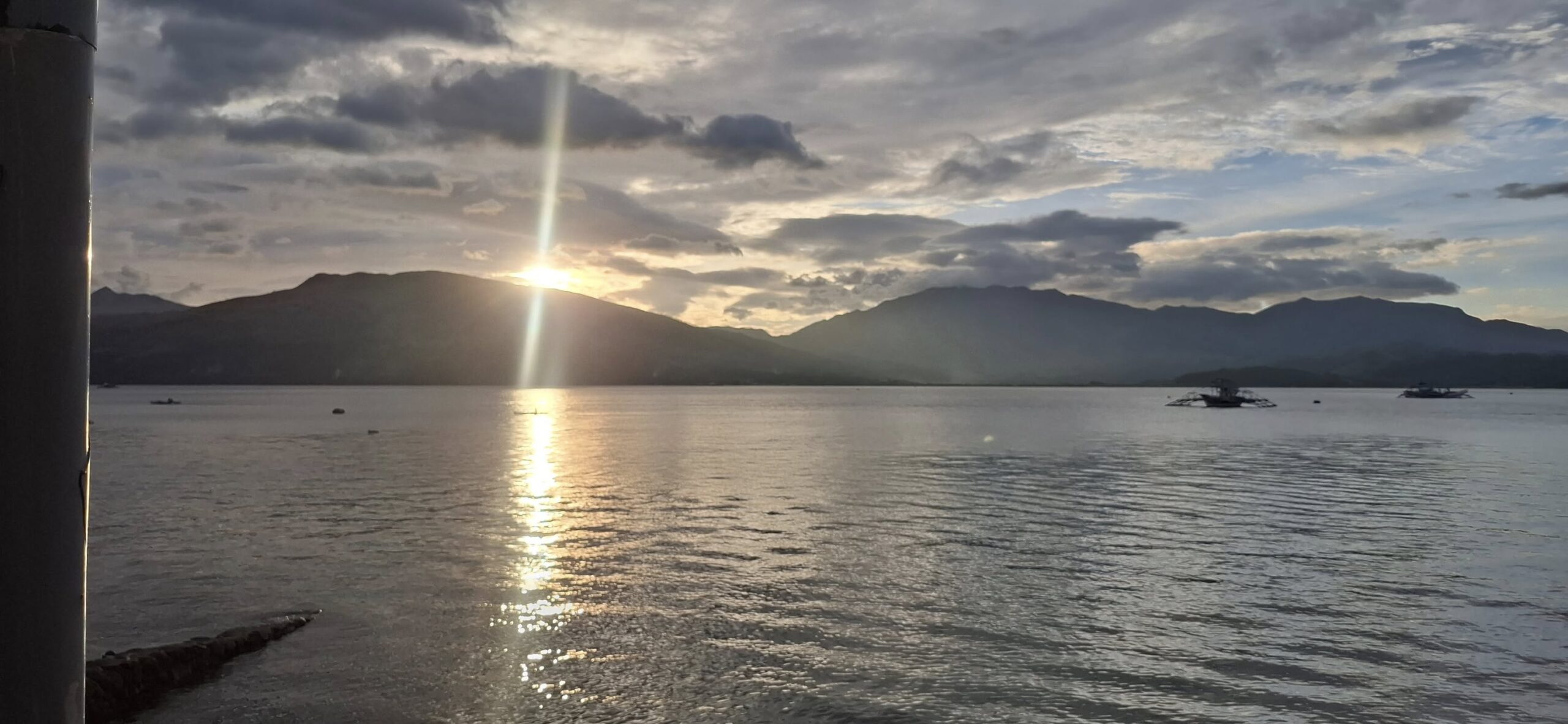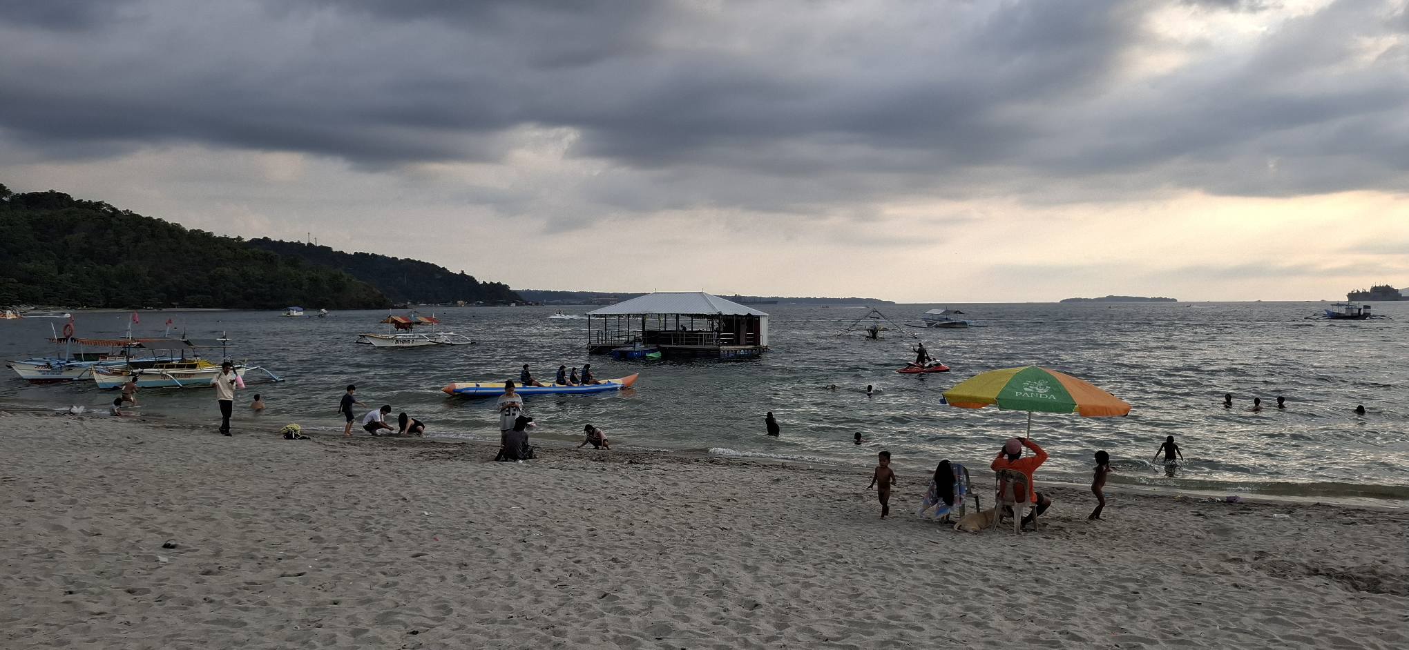 Yesterday was a holiday here (Rizal Day), so the beach was busier than usual.Our destination awaits as we await the arrival of the transport raft.A sun shot from the beach while we waited.I almost always enjoy the ambiance that comes with rockin’ on the water.And then some folks we know came by in their boat. They pulled alongside the floating bar, but didn’t get out. We bought them a drink, and they offered to take us for a spin. I declined, but Swan joined them.Swan returning from her ride.She said it was fun.Meanwhile, I feared those clouds were going to spoil my sunset view.Turns out, I was wrong about that.Going……going……gone!