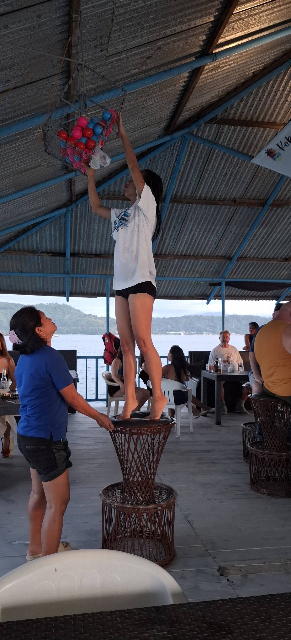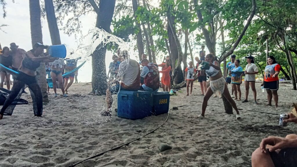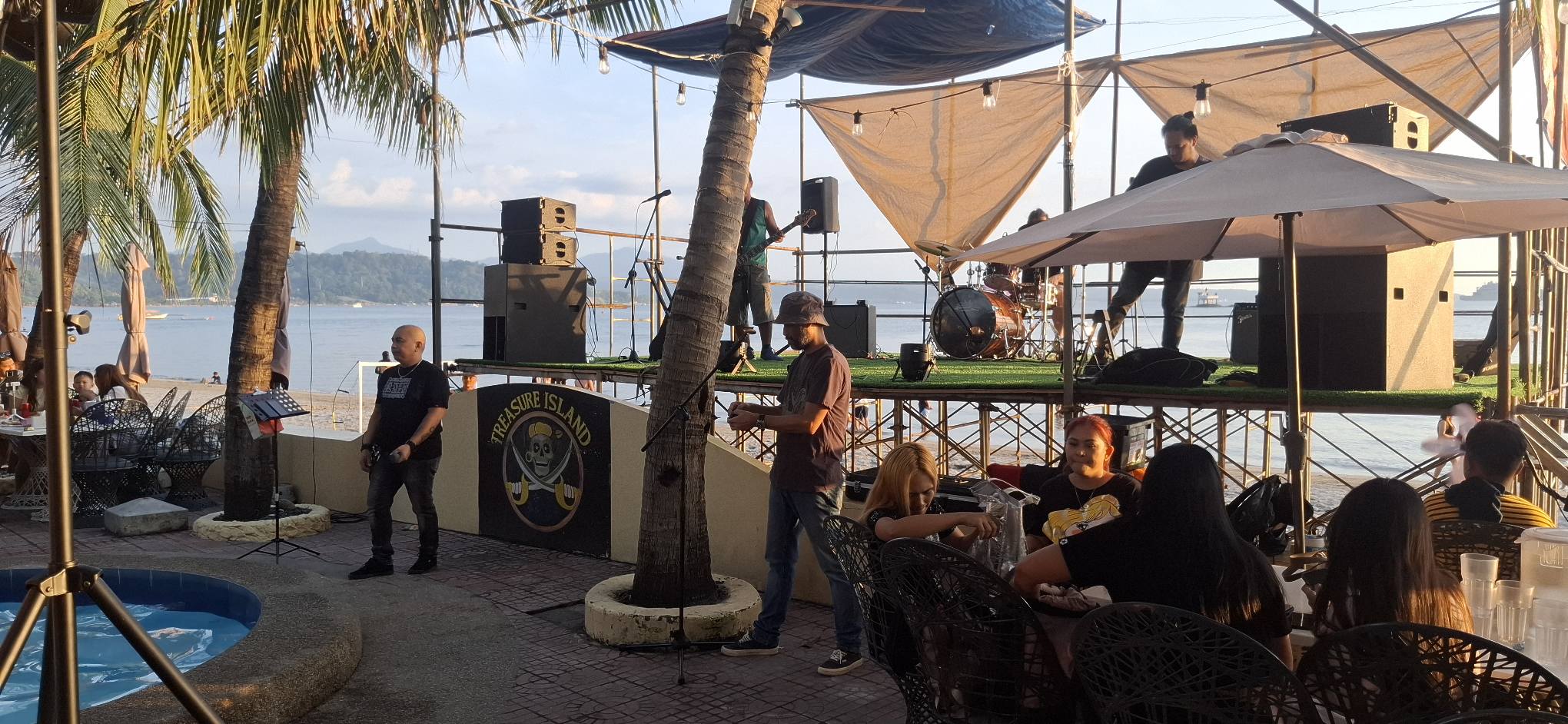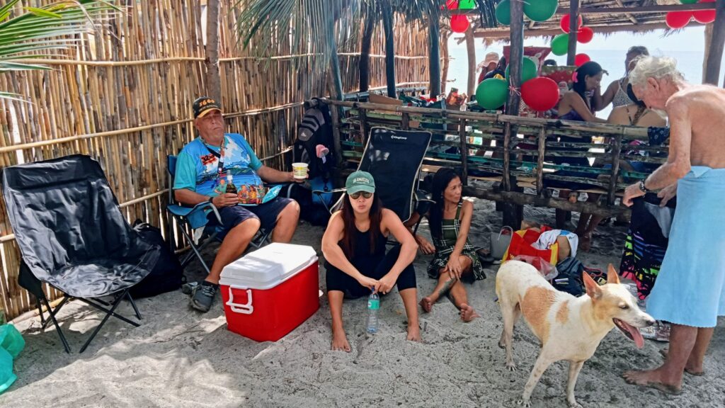 It Doesn’t Matter Bar was having its end-of-year party at McCoy’s on Baloy Beach. We dropped by, but things were already well underway; there was nowhere to sit, and no more Zero or Light beers. That’s what happens when you arrive late. I dropped off the sweets (muffins and lollipops) I’d brought, then headed up the beach for Treasure Island.