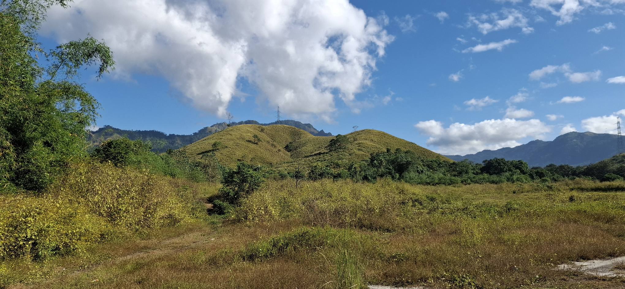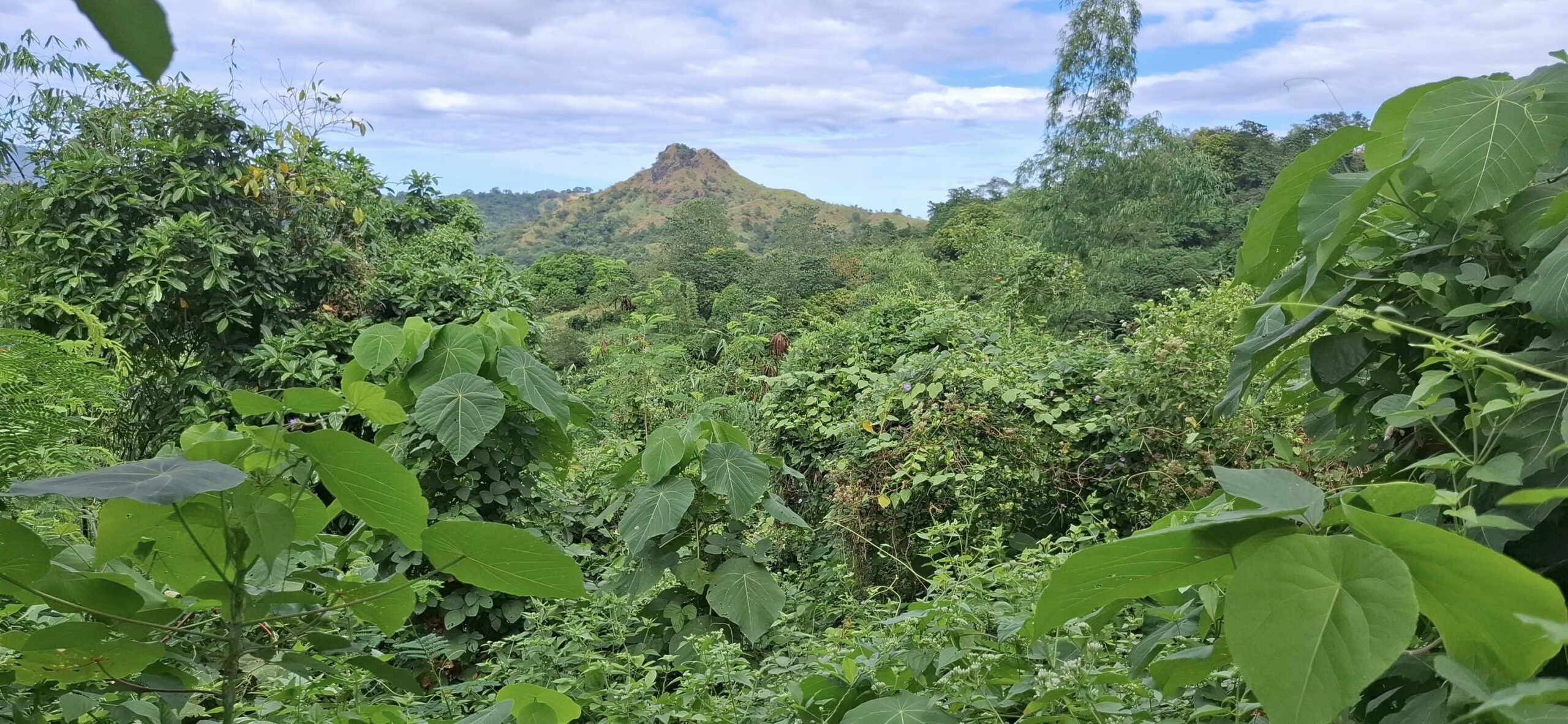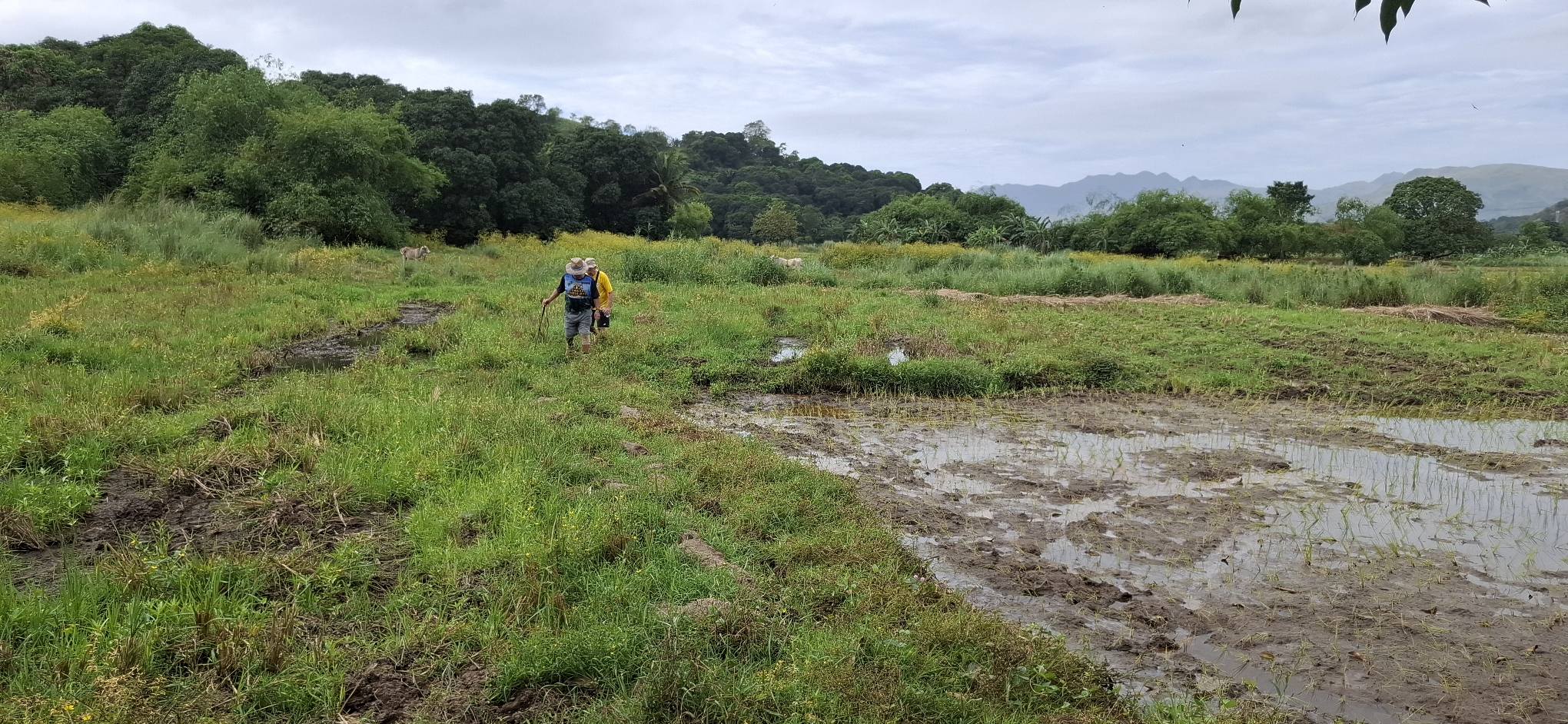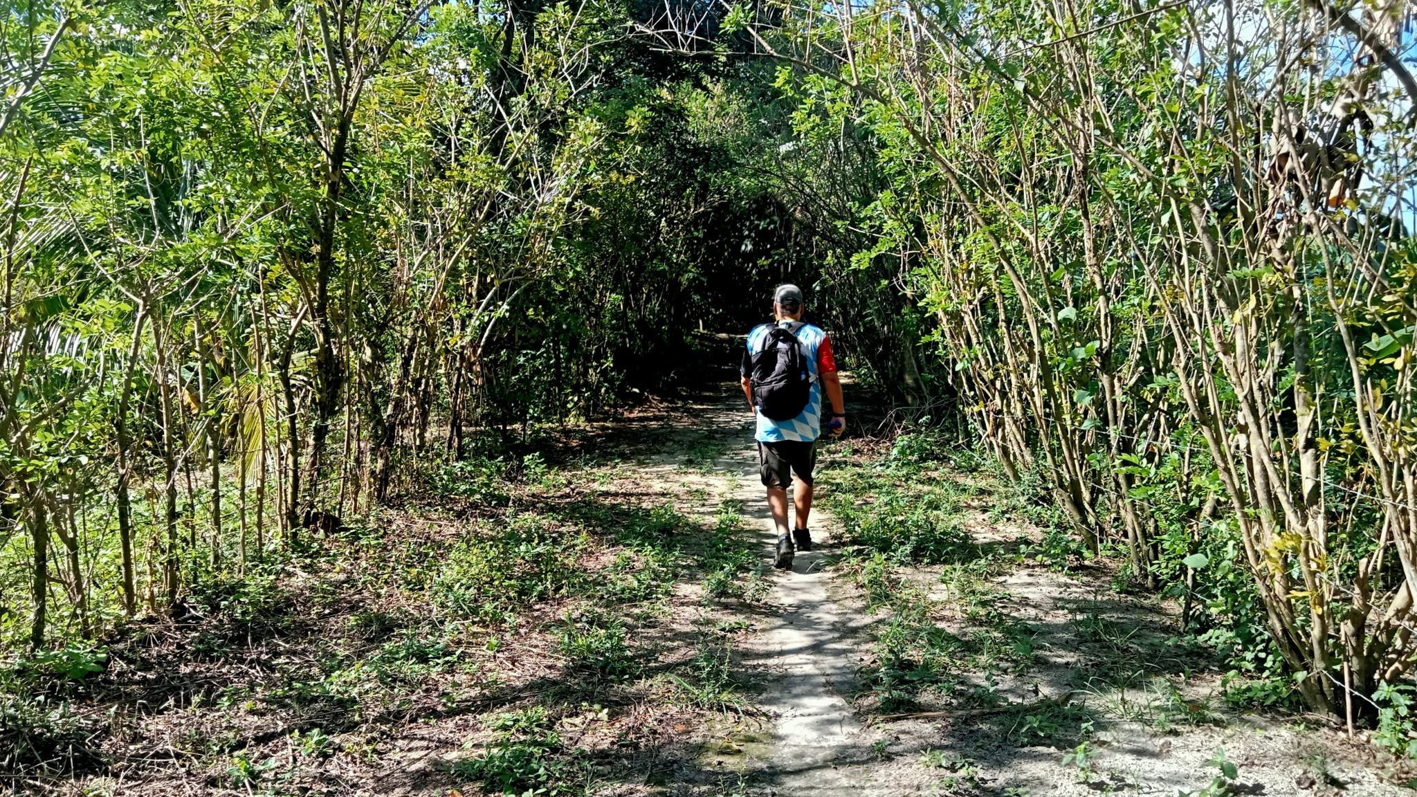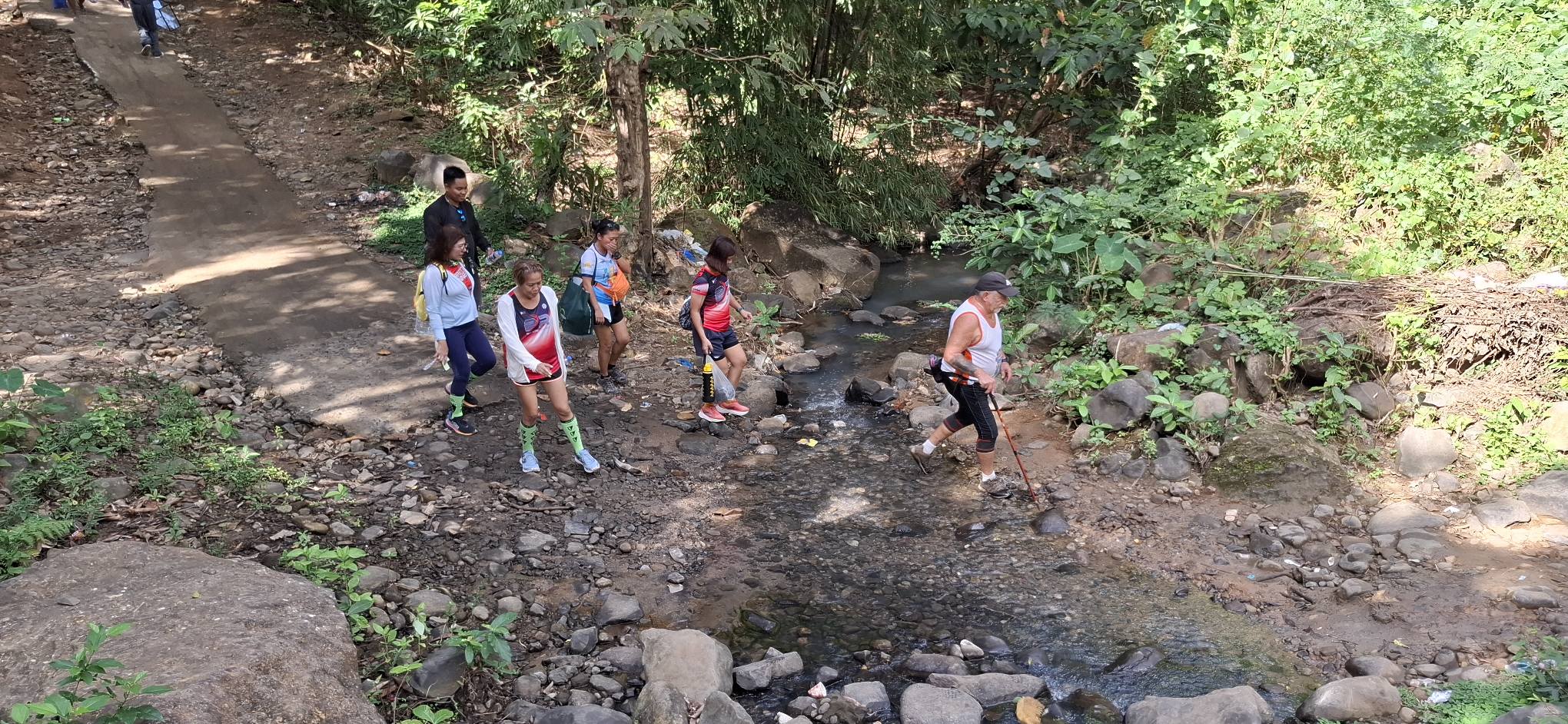 This little sari-sari store was where we bought a bottle of Sprite to help Scott reenergize on our last trip out this way.Our trail was mostly flat, but surrounded by beautiful hills.God appears to be smiling on one of the friendly locals we encountered.Another local was kind enough to guide us to our intended path after we had lost the trail.Nope, not here.A flowering bush that reminded me of gaenalee blossoms in Korea.The first of three water crossings on our outbound trek. We crossed them again on the way back.As I’m wont to say, there’s freedom in wet feet.A tree I liked.Elevation over vegetation.Onward we trek.Walk on!It ain’t much, but how much do you need to be happy?I’d say that qualifies as a waterfall.Sweets for the sweet.The final wet feet on our hike.There and back again was a 6K journey.