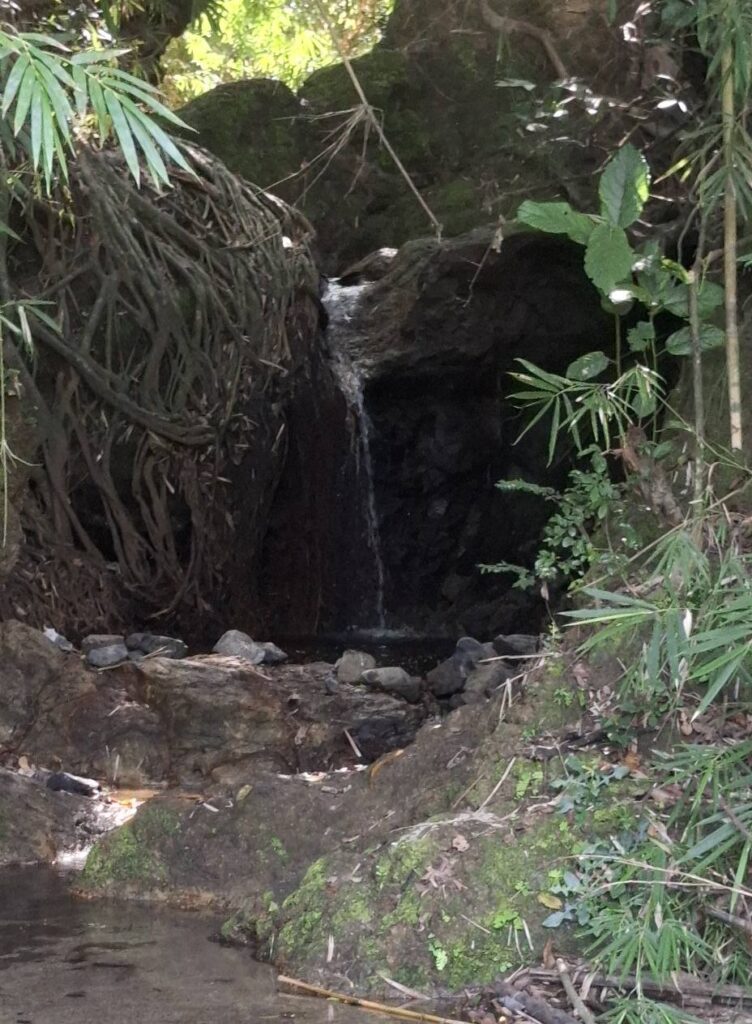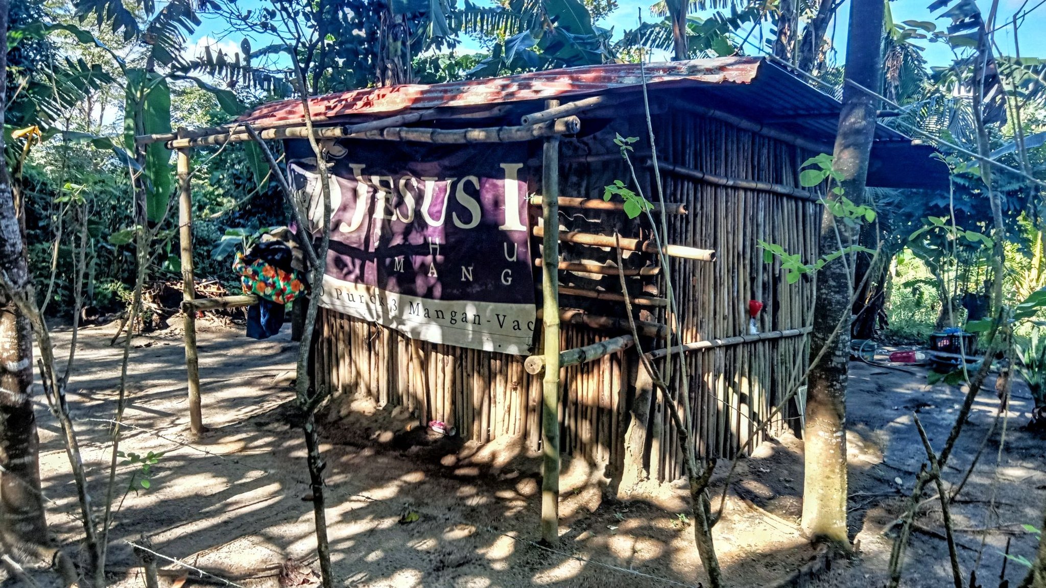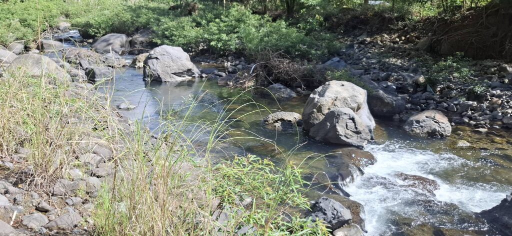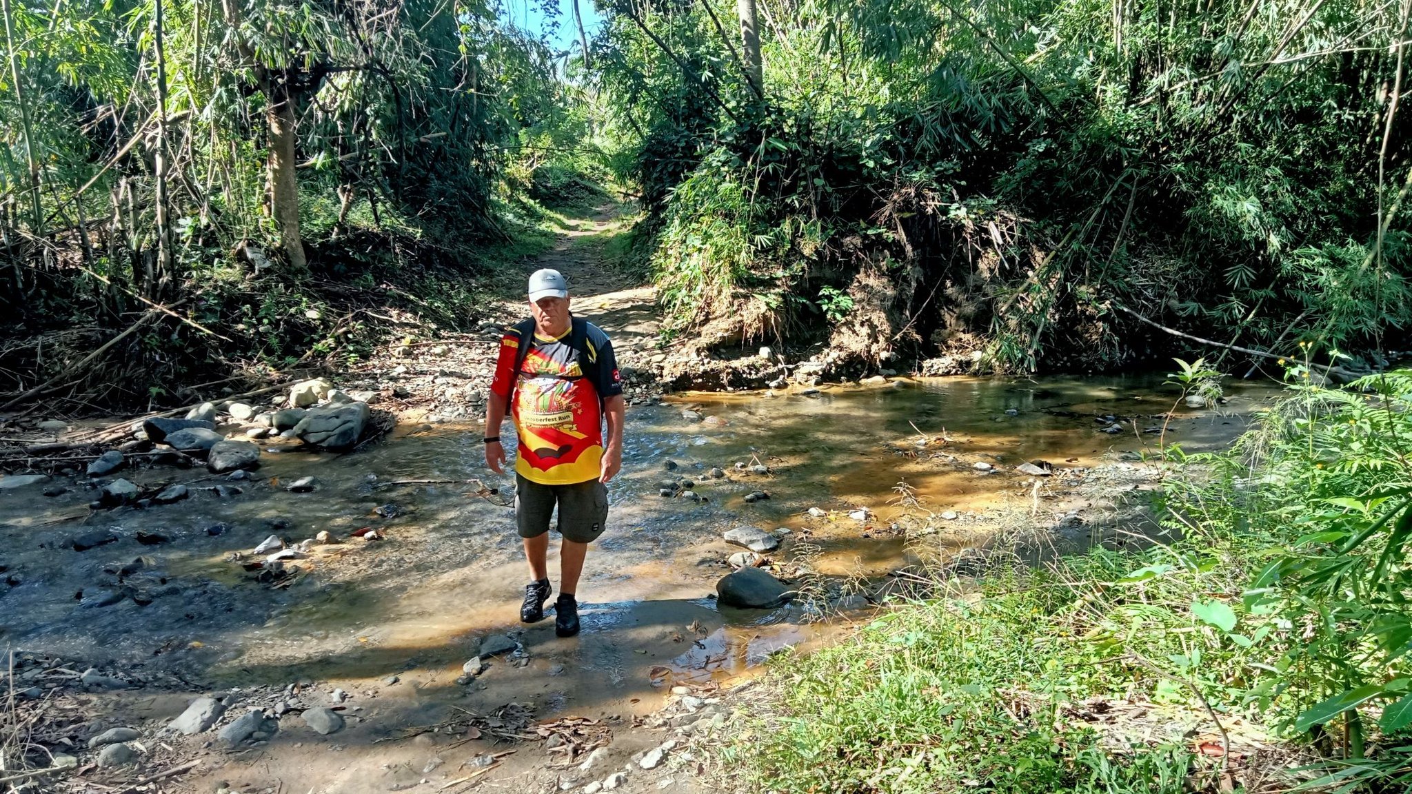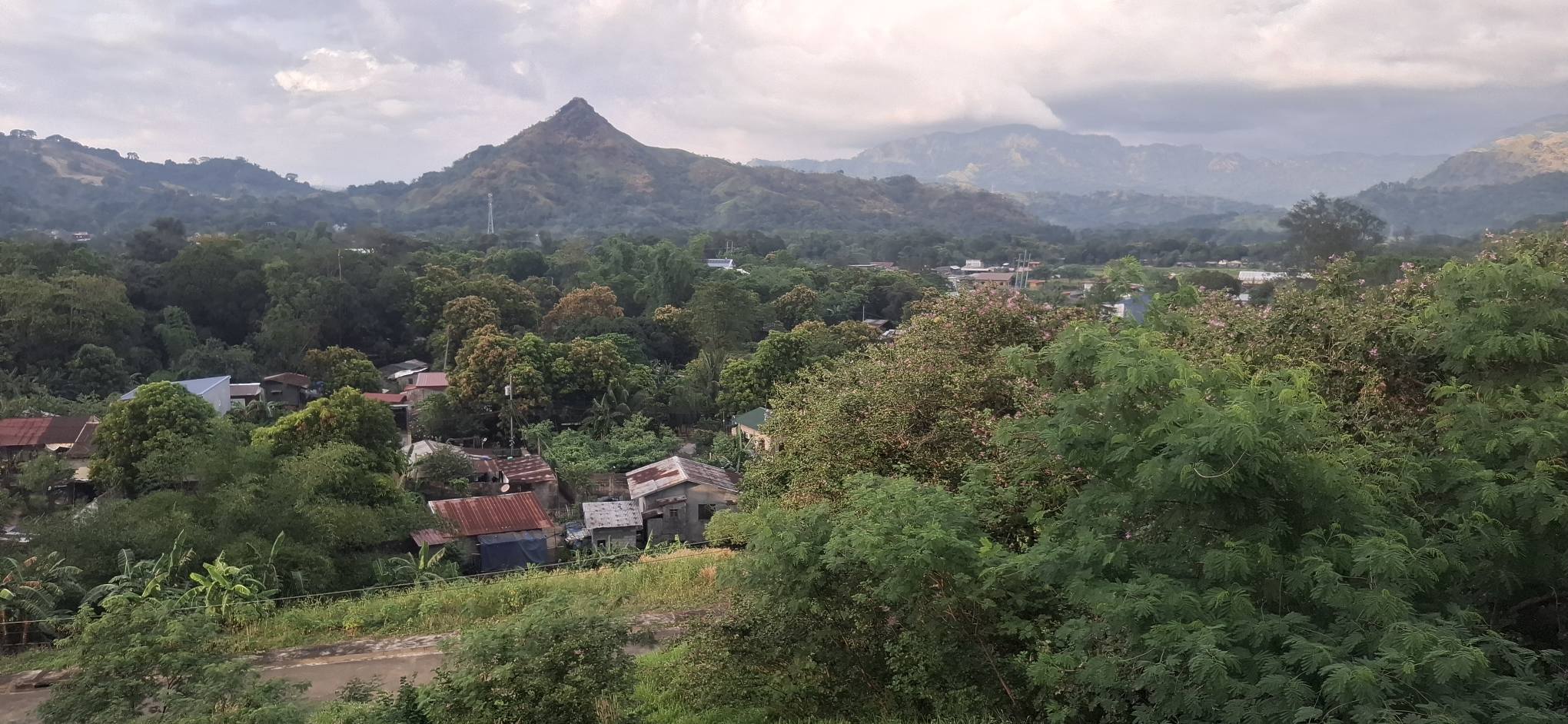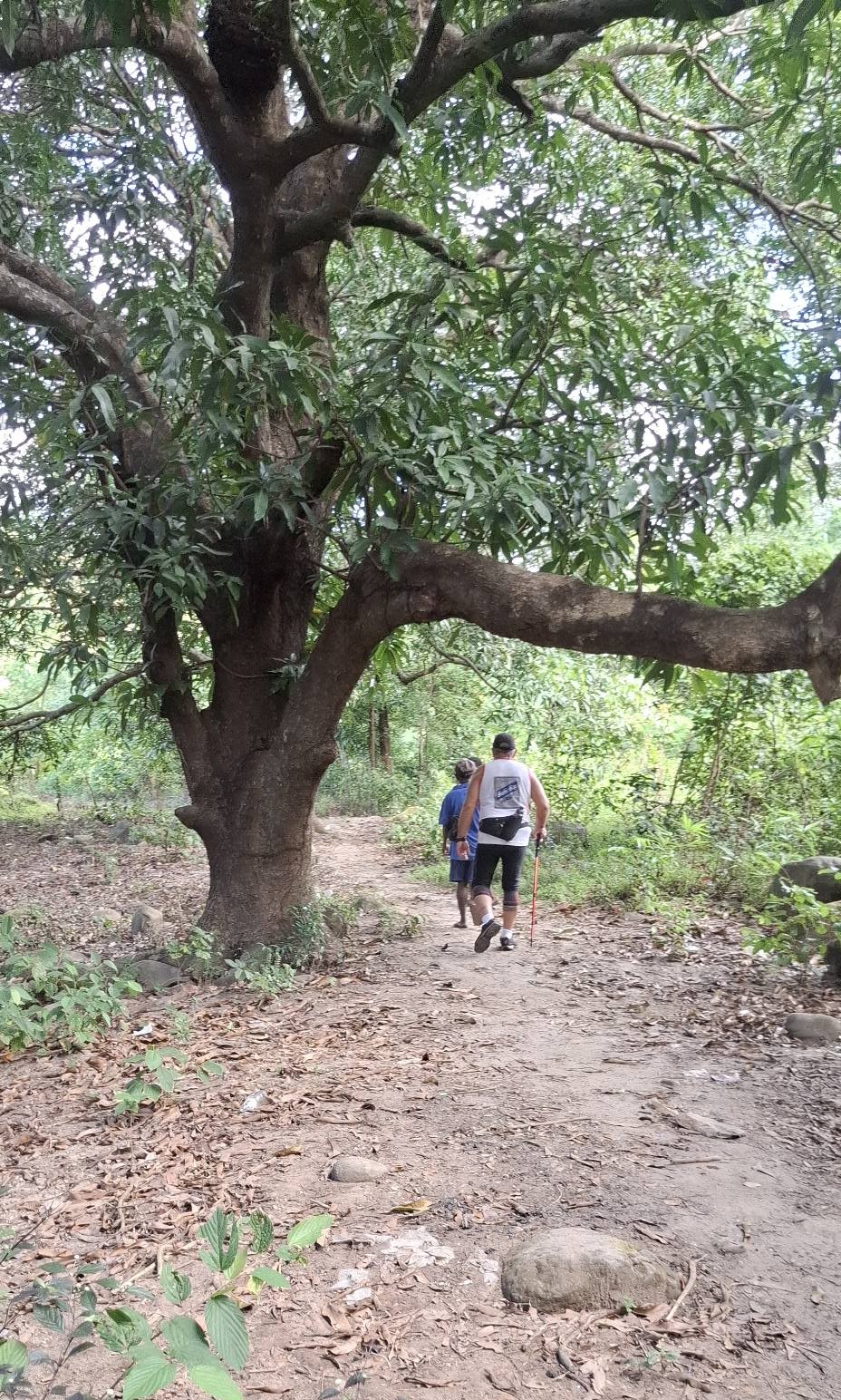 This little sari-sari store was where we bought a bottle of Sprite to help Scott reenergize on our last trip out this way.Our trail was mostly flat, but surrounded by beautiful hills.God appears to be smiling on one of the friendly locals we encountered.Another local was kind enough to guide us to our intended path after we had lost the trail.Nope, not here.A flowering bush that reminded me of gaenalee blossoms in Korea.The first of three water crossings on our outbound trek. We crossed them again on the way back.As I’m wont to say, there’s freedom in wet feet.A tree I liked.Elevation over vegetation.Onward we trek.Walk on!It ain’t much, but how much do you need to be happy?I’d say that qualifies as a waterfall.Sweets for the sweet.The final wet feet on our hike.There and back again was a 6K journey.