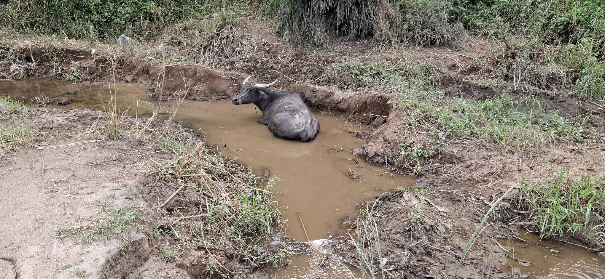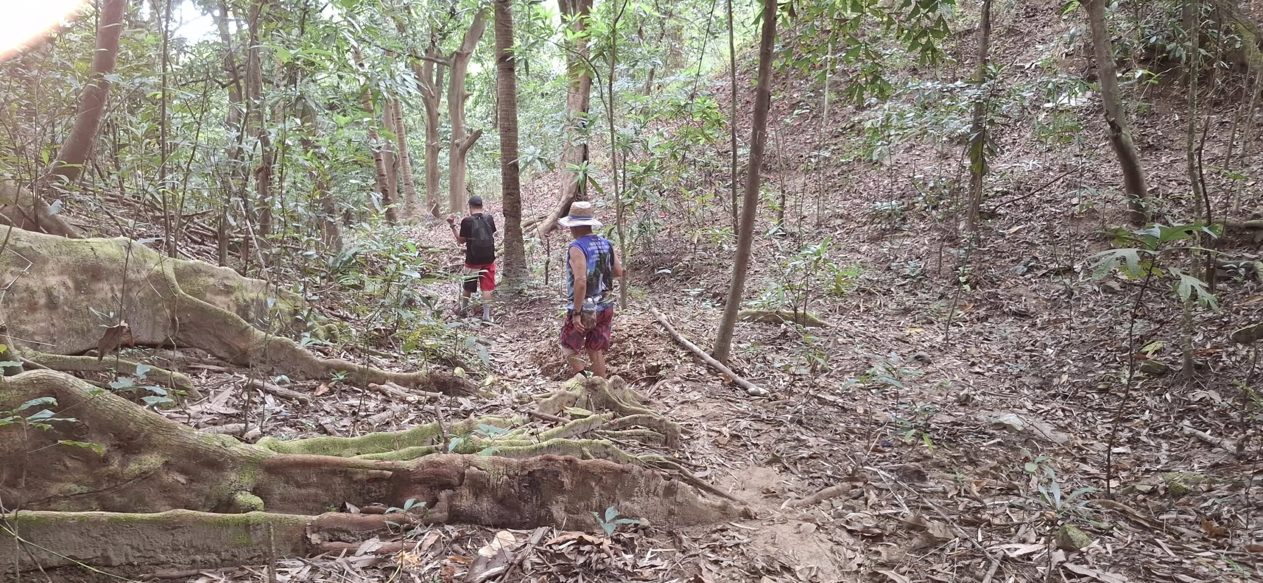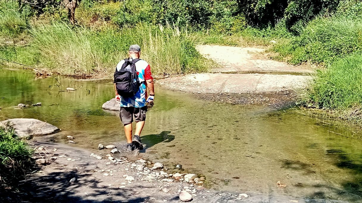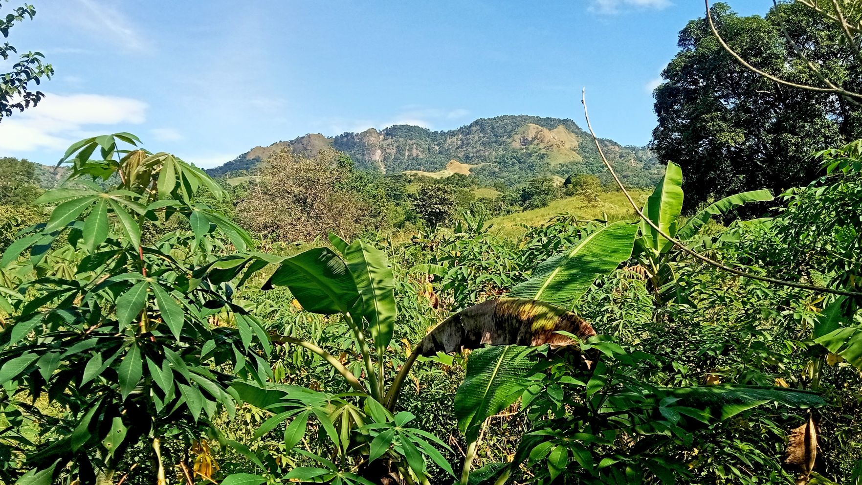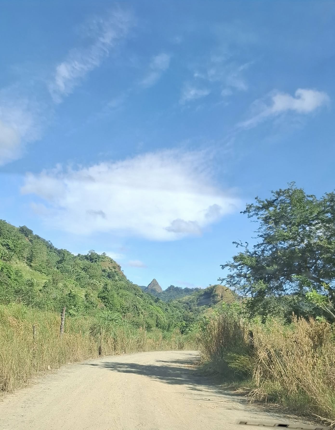 This little sari-sari store was where we bought a bottle of Sprite to help Scott reenergize on our last trip out this way.Our trail was mostly flat, but surrounded by beautiful hills.God appears to be smiling on one of the friendly locals we encountered.Another local was kind enough to guide us to our intended path after we had lost the trail.Nope, not here.A flowering bush that reminded me of gaenalee blossoms in Korea.The first of three water crossings on our outbound trek. We crossed them again on the way back.As I’m wont to say, there’s freedom in wet feet.A tree I liked.Elevation over vegetation.Onward we trek.Walk on!It ain’t much, but how much do you need to be happy?I’d say that qualifies as a waterfall.Sweets for the sweet.The final wet feet on our hike.There and back again was a 6K journey.