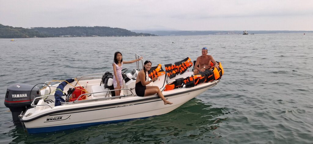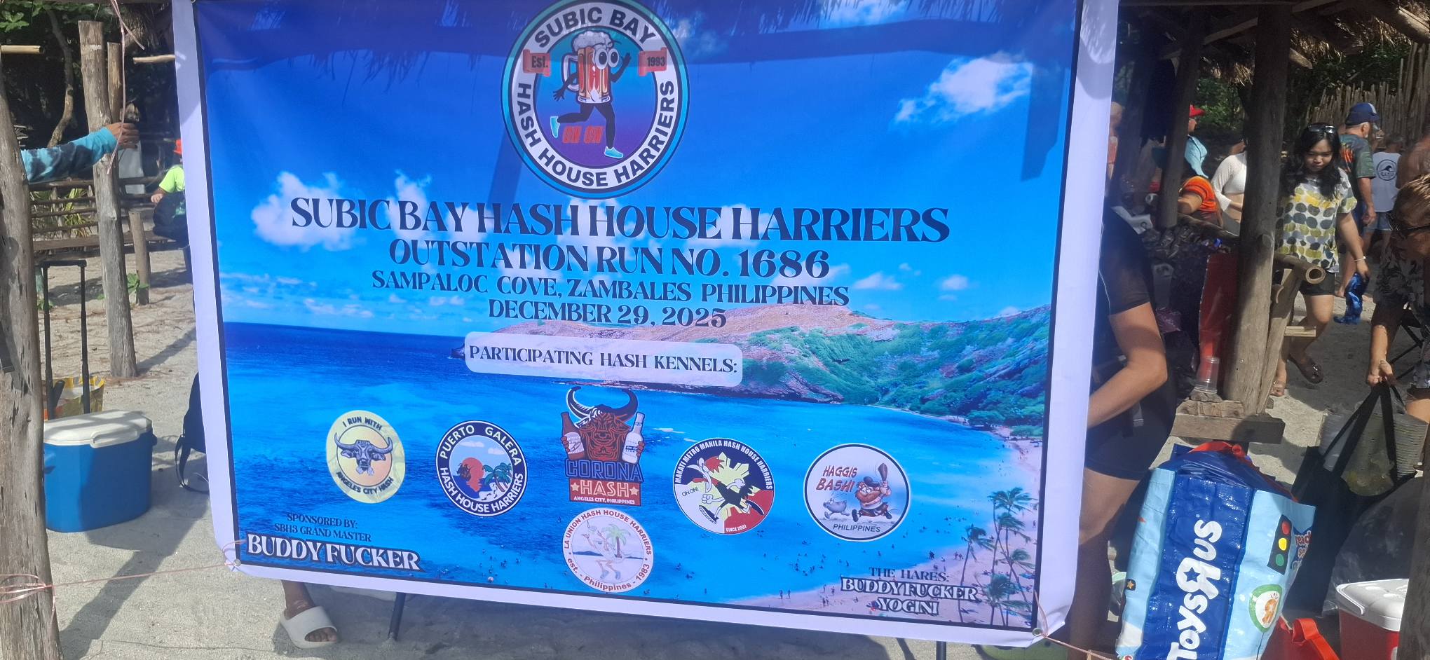 Damn, I forgot what I was going to say. Oh yeah, it was about yesterday’s Hash at Sampaloc Cove. We had 102 Hashers in attendance. There would have been more, but the boat the Corona Hashers from Angeles City were going to use broke down, and they never made it to the cove. As it was, we had five boats carrying twenty-plus each on the one-hour-and-fifteen-minute cruise to Sampaloc. None of them sank!