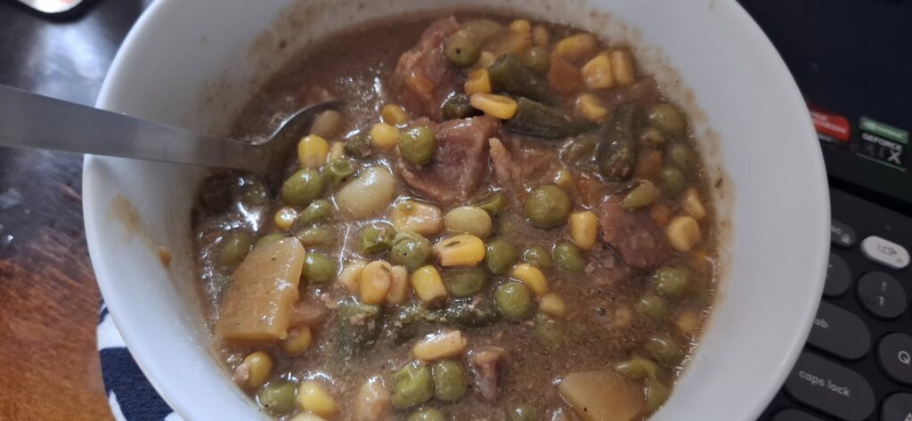 Before heading out, I’d loaded up the crockpot with a batch of beef stew. It was Swan’s idea.