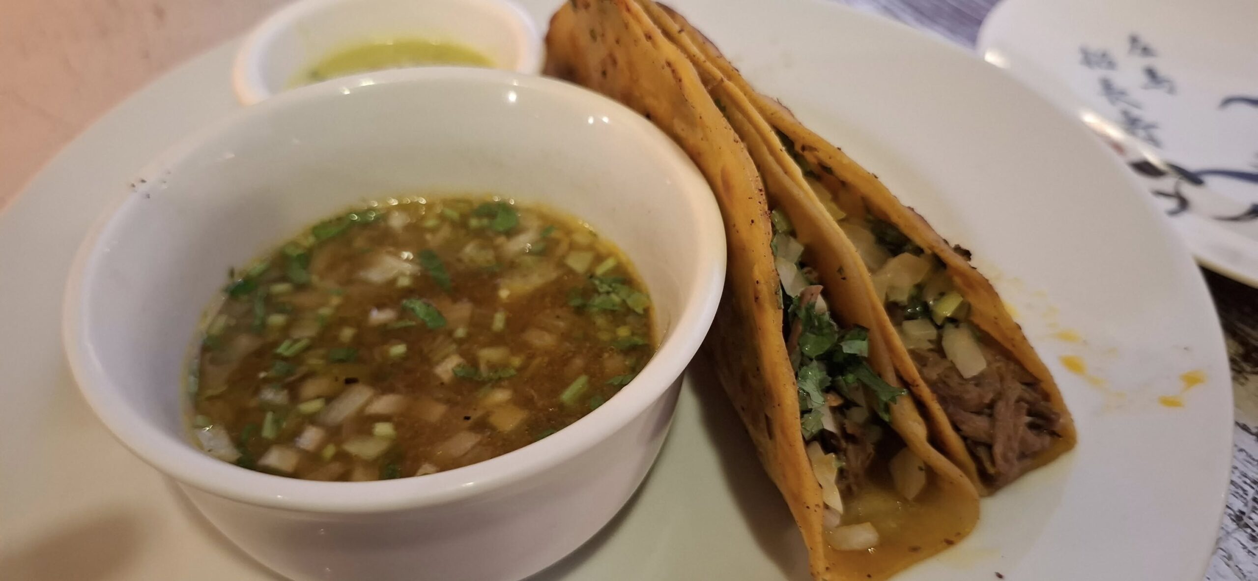 I was pleasantly surprised to be informed that birria tacos were back in stock.The shell was a tad overdone, though.The view from my dining perch.