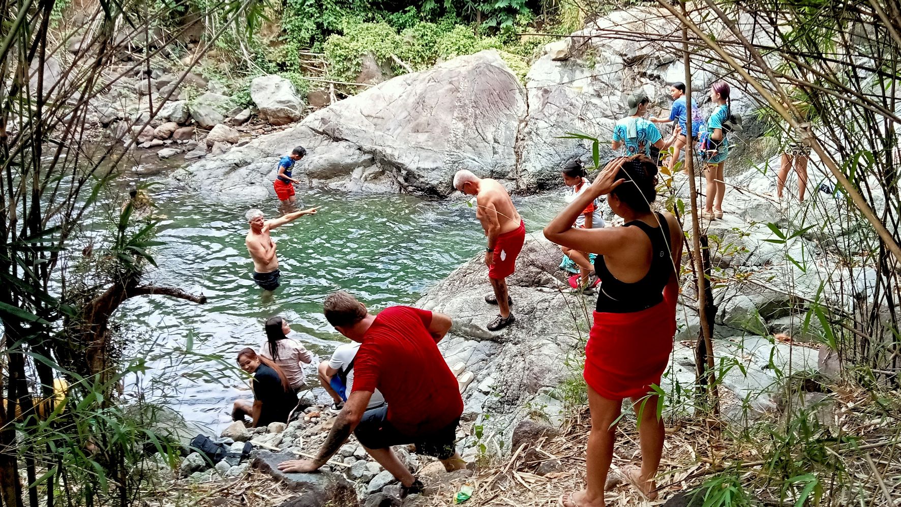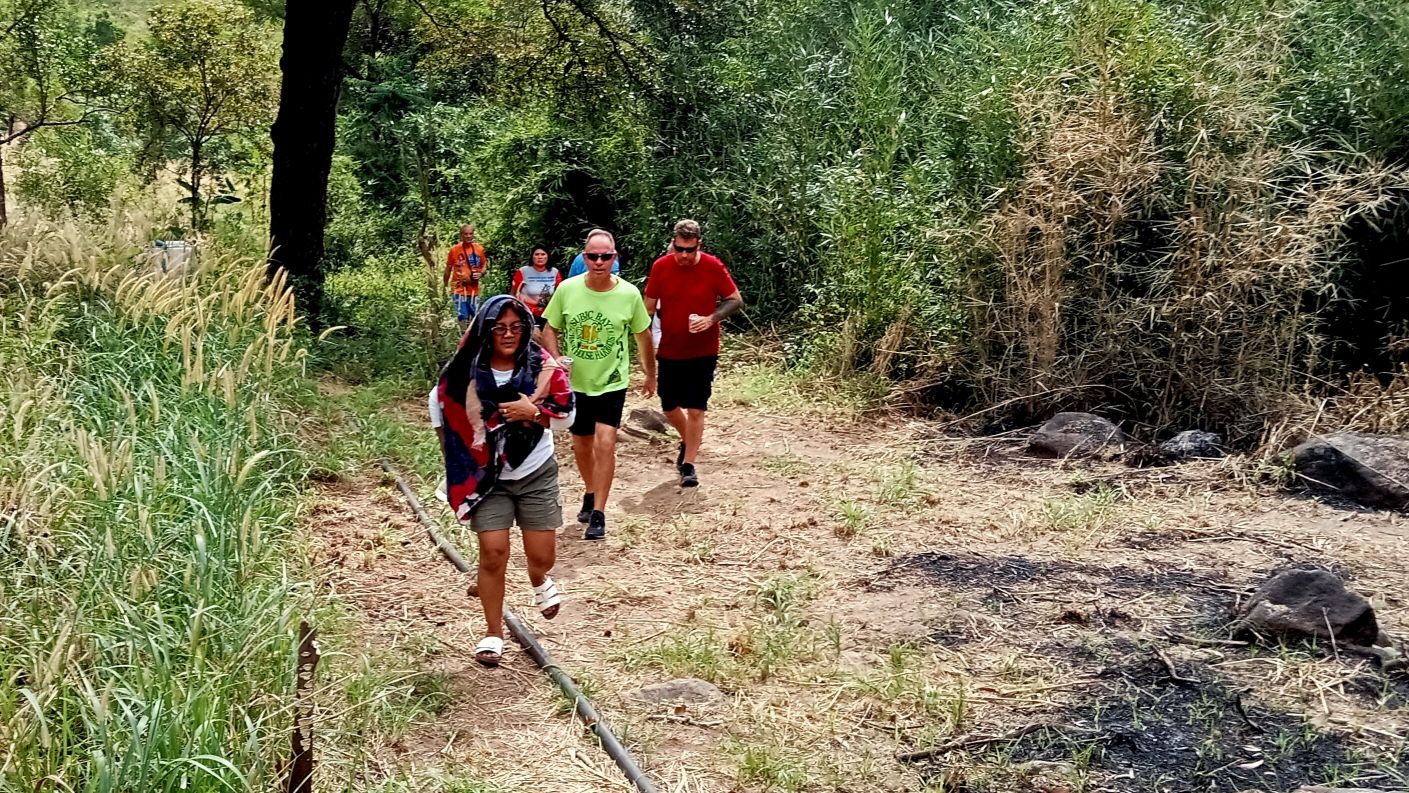 Anyway, kudos to the Hares, Buddy Fucker, and Yogini, for their efforts at organizing this huge event. Being the grumpy old man that I am, I had some complaints with the timing of the events, but I still managed to mostly enjoy myself. Still, an all-day outing with no avenue for escape was tough on me. We sat around for an hour or so after arrival, then did the Hash trail up to a local waterfall area. There and back again was less than 2K. Then we sat around some more while the Gash put together the potluck food buffet. Of course, there was plenty of beer to be consumed, and like the good Hashers that we are, we worked hard at emptying those cans.