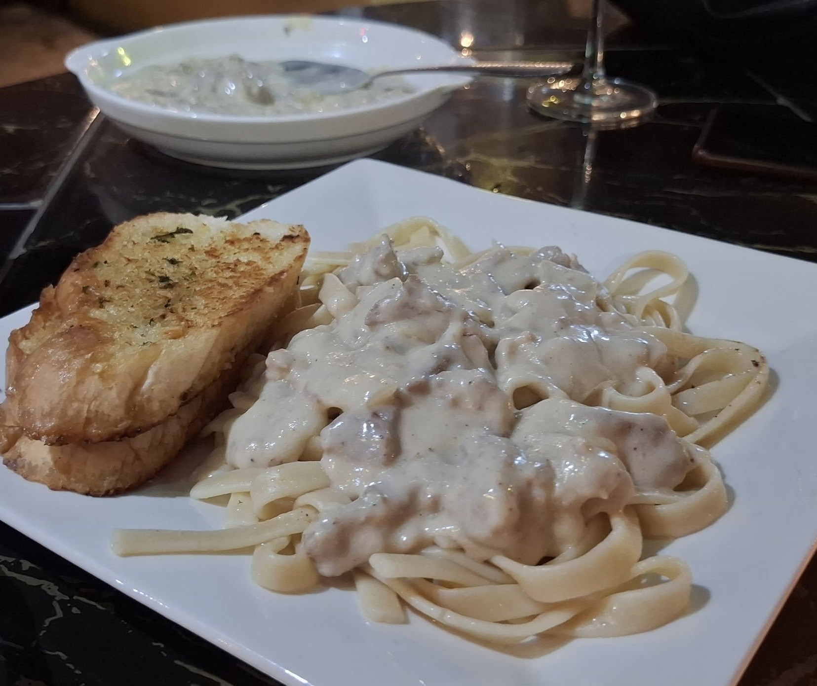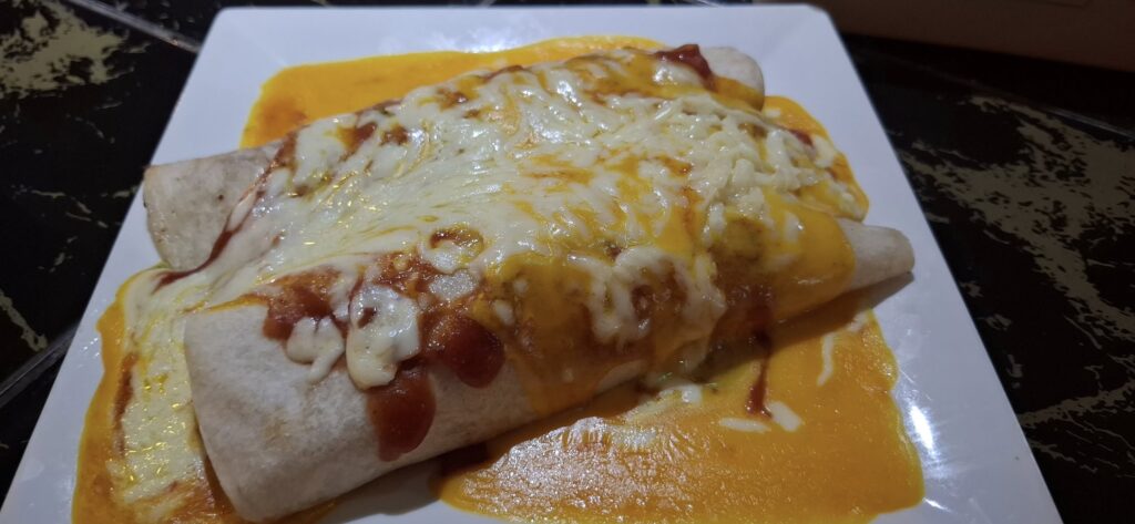 I satisfied my enchilada craving.And Swan enjoyed her beef stroganoff.