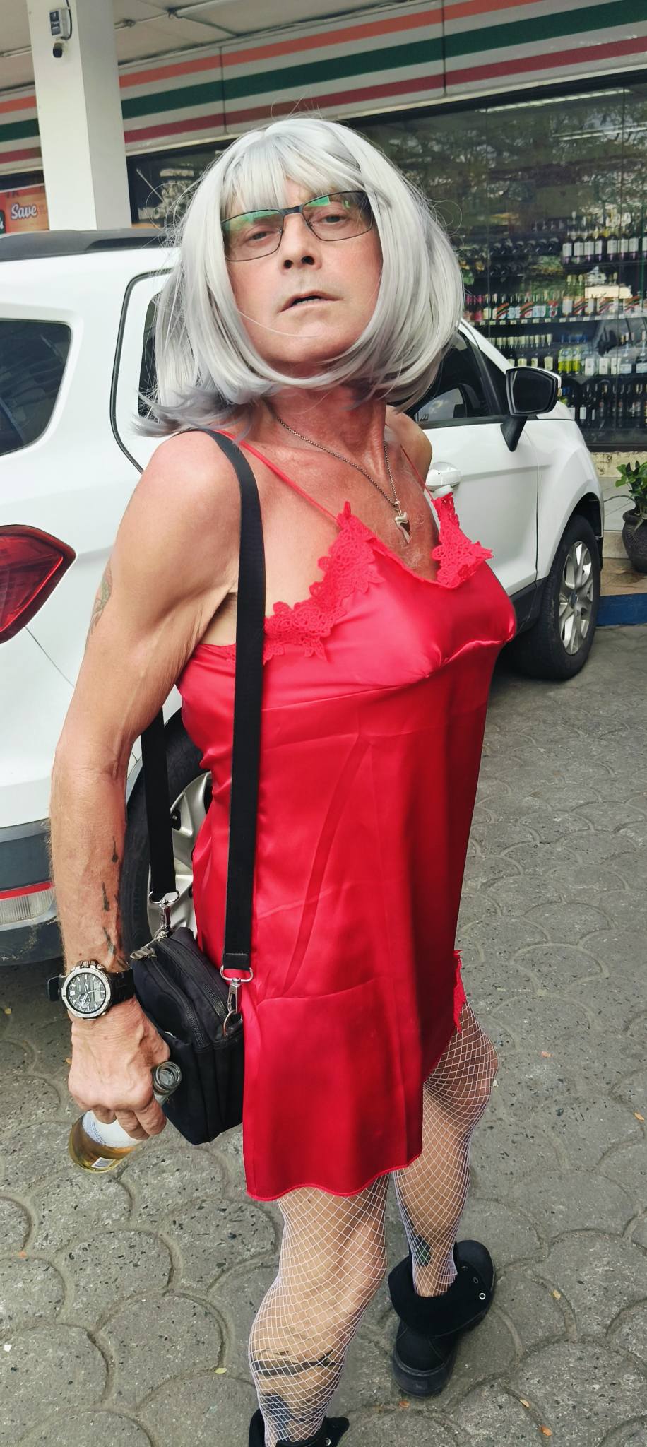 WTF! They’ve fenced off the shortcut out of Alta Vista that I take into Barretto almost every day. Tear down that wall!First stop, Cheap Charlies. New signage since our last visit.That gal who puts up with me most of the time.My hero. I occasionally see this old guy hobbling along the highway. I bitch and moan about the aches and pains that come with age. This guy just keeps on going.