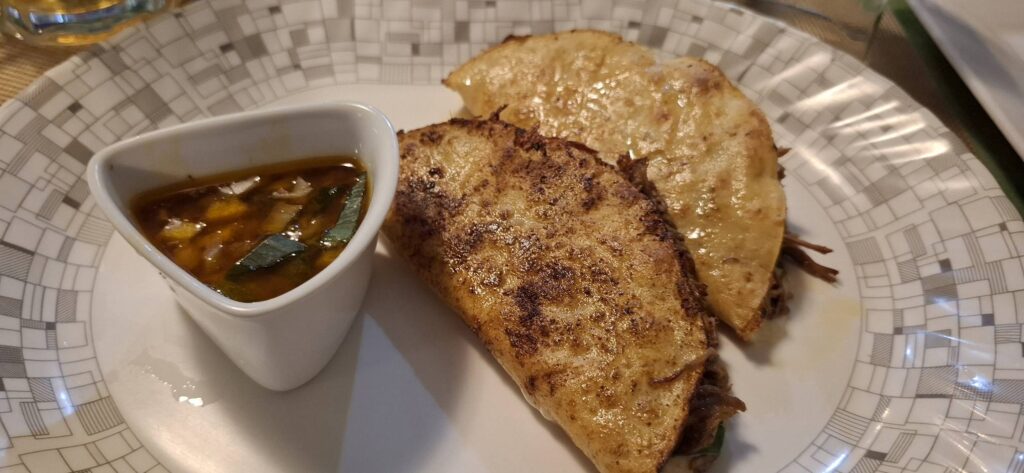 Not as many restaurants these days (yes, still missing John’s place), but I offered Swan three dining options all within a block of IDM: Jewel Cafe, Myleen’s, or Foodies. Swan chose Myleen’s because it has the best (and only) birria tacos in town.