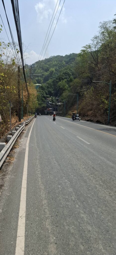 I don’t like walking on those narrow highway shoulders. People drive like assholes here and invade that tiny space as they round the corners.