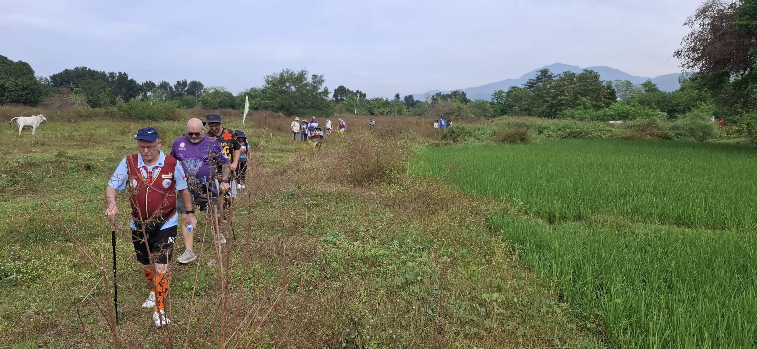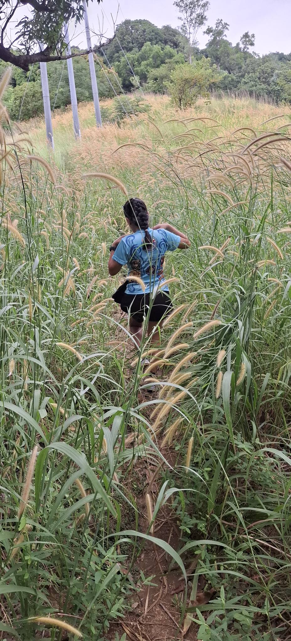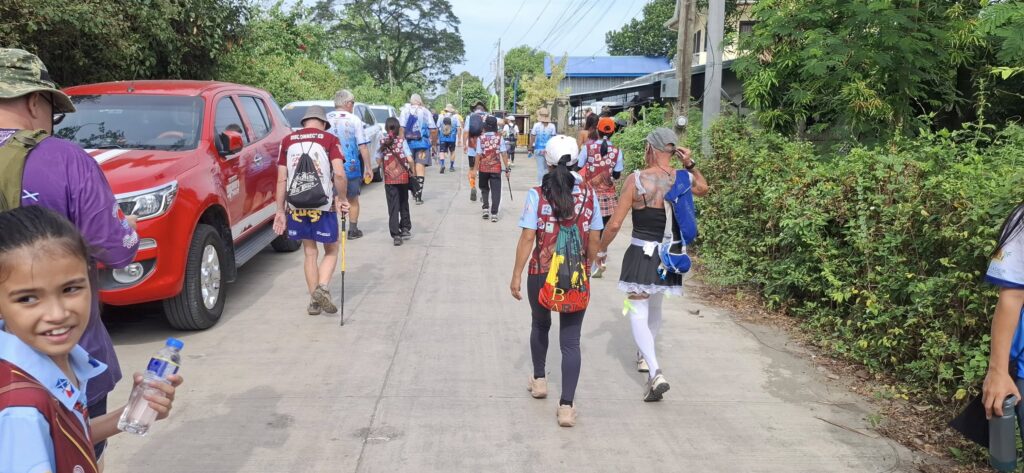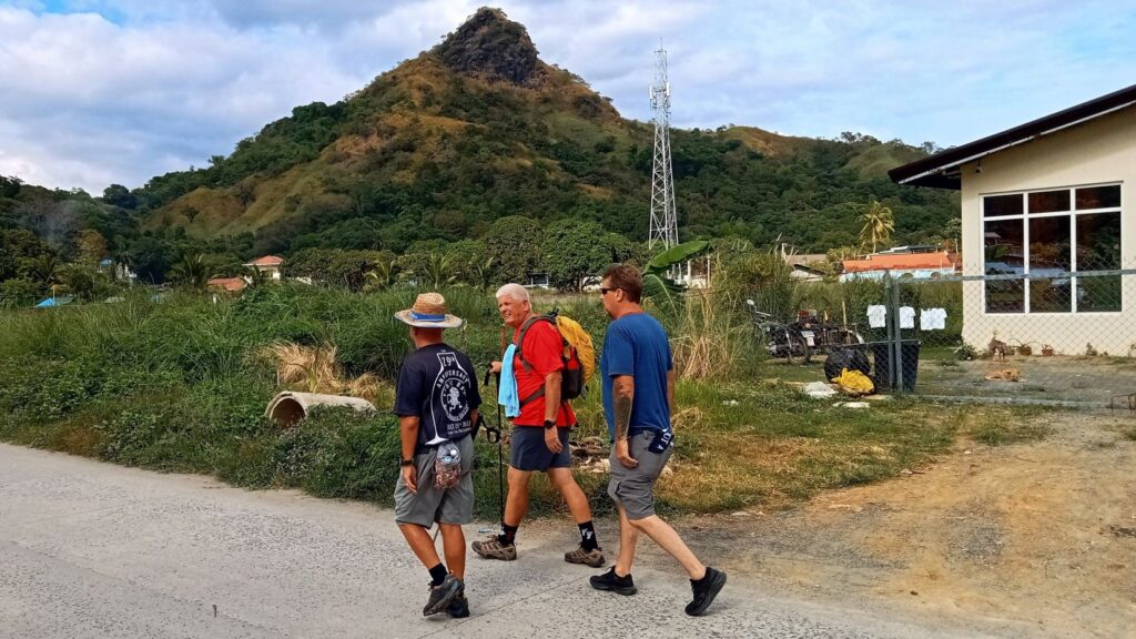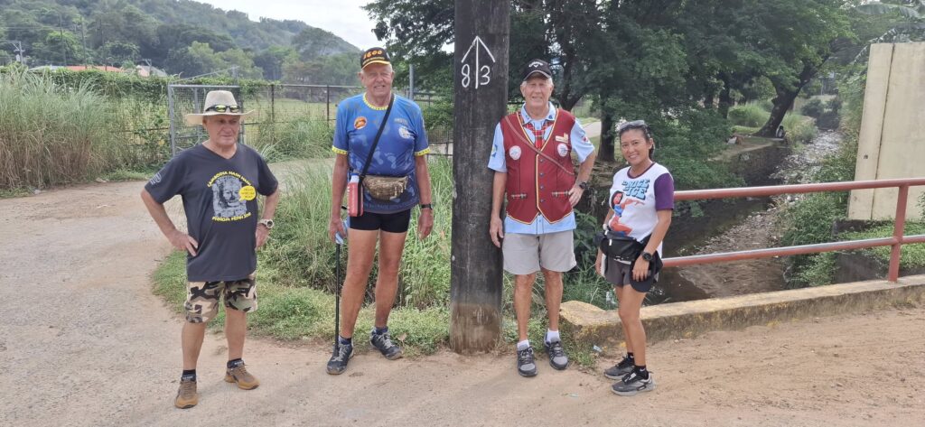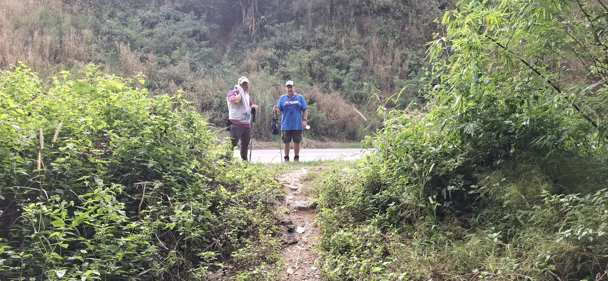 And then, when we got to the top, the trail almost immediately headed back down through the jungle. Fuck that! I could see some nice houses and figured there must be a road to reach them, so the search was on. And by golly, we found not only a road, but the actual highway leading back to the On-Home campground. Better yet, it was part of the Hash trail. I consulted Google Maps just to make sure, but we were on the road to success. Which, of course, is always uphill. Also, I’m a master shortcutter!
