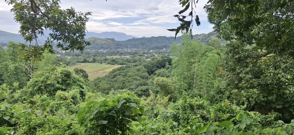 The morning view from in front of our kubo.And a morning campsite view. You can barely make it out on the mountainside, but that’s as close as we got to Baguio this trip.Here, let me zoom in on it for you. Of course, that’s only a small portion of the large city of Baguio.
