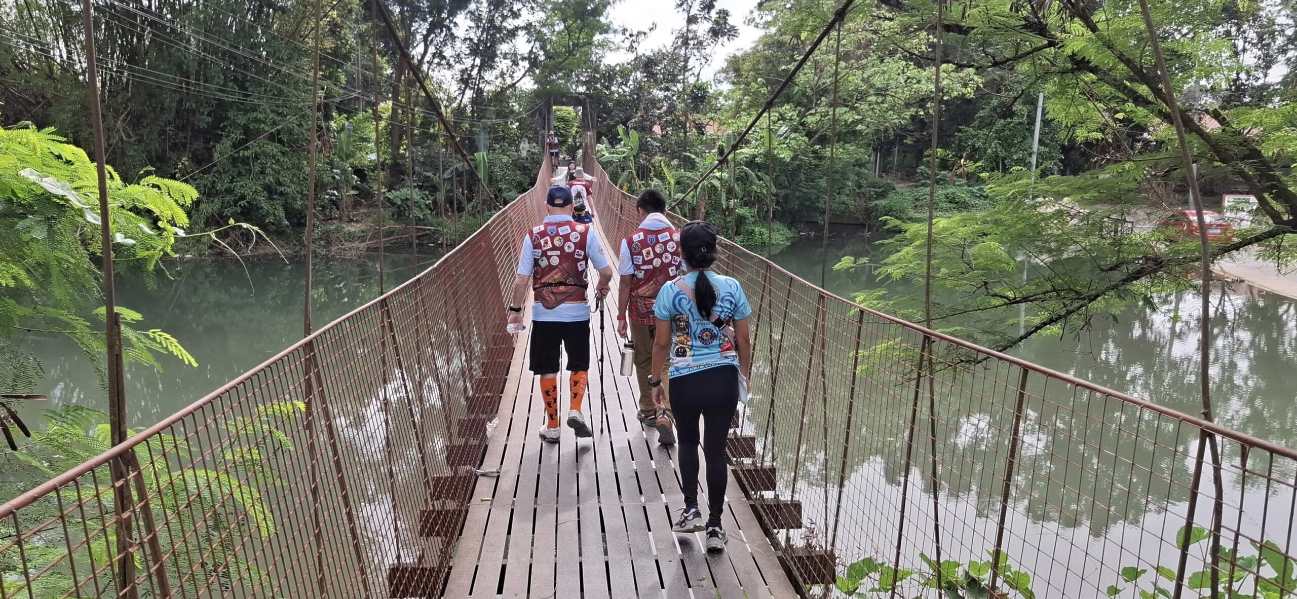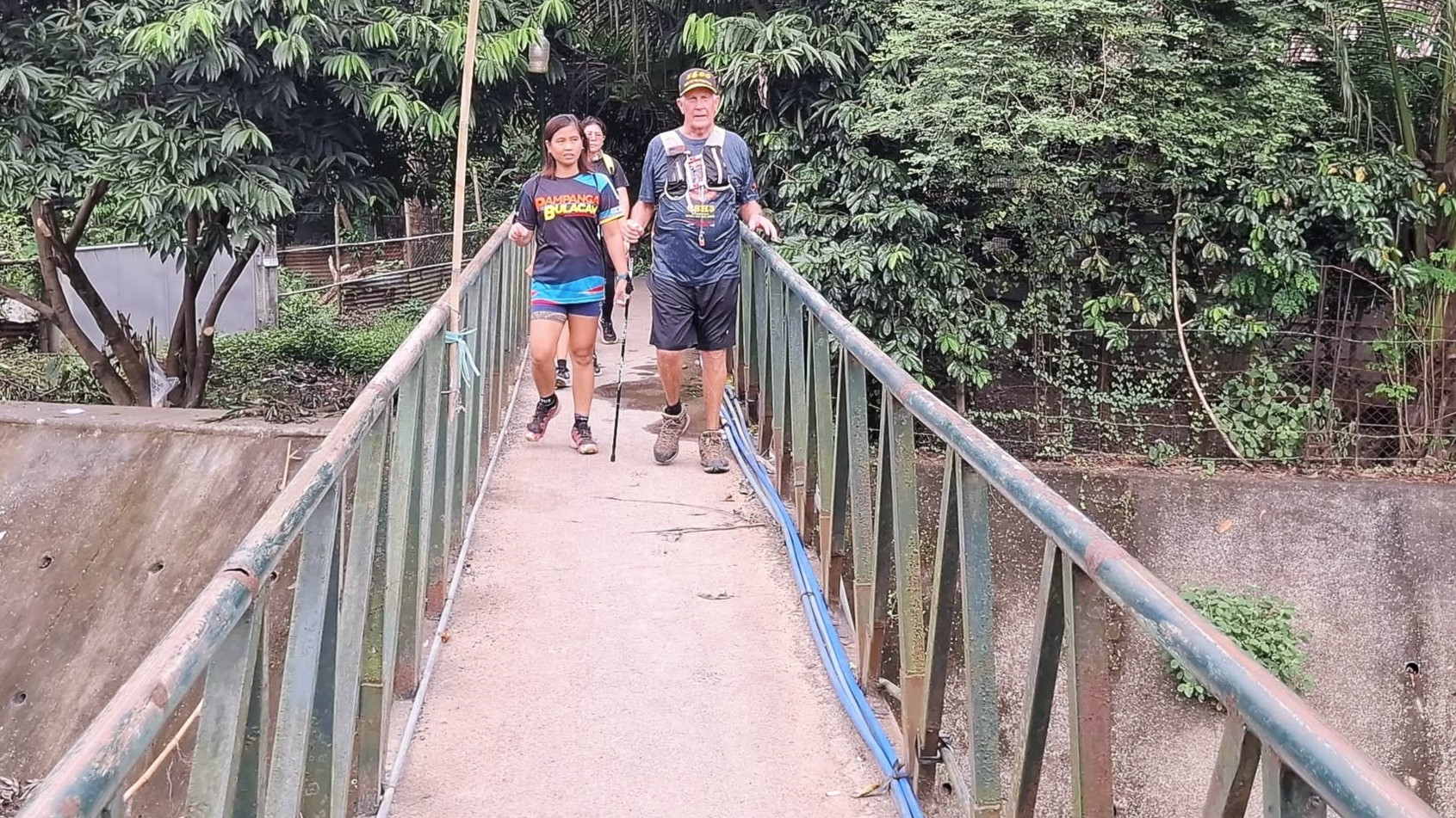 Off we go!Only a month younger than me. RIP Rodolfo.The first of several bridges we crossed on our journey. Also, the sturdiest.The early portion of the trail ran along the banks of the Magnan-Vaca River.Where the long and short trails diverged. Except Leech My Nuggets doesn’t use the term “short.”I’d never been this far down the river before.A new way to go is always nice to find.And here’s another place to go.But I’m not ready to go there yet.The biggest challenge we faced was a series of rickety bridges.Like this one……and that one.I’m happy to report that they all carried the load.The path ahead.A gathering of “cripples.”Sweets for the sweet.Riverboats.I’ve learned to deal with a fork in the road, but what do you do when you encounter two?That old gal doing her laundry is one of my charity projects.We don’t run into her that often, but on the occasions when we do, we slip her 500 pesos. She is raising her deceased daughter’s kids, and it’s a struggle, I’m sure.Now we are on the home stretch.Arriving at Sully’s place.The purple “cripple” trail bypassed the hill climbbefore rejoining the main trail. I enjoyed the riverwalk.Our host for the evening, Sully.Hanging out at Sully’s place.Some Hash Gash.I enjoyed the trail so much that I voluntarily joined the Hare (Leech is on the right) on the ice.It’s nice on ice!And then it was time for the sun to go down……and another Hash came to an end.