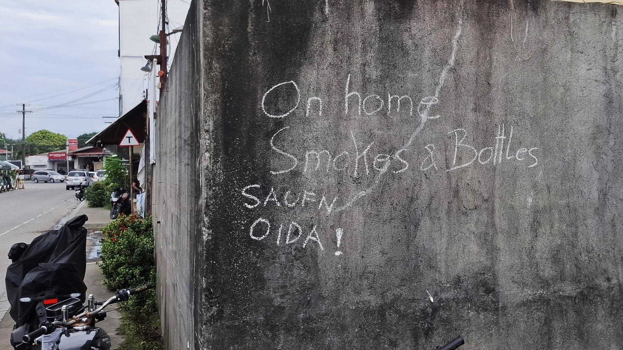 Yesterday’s Hash trail was nothing special, but I’ve only got myself to blame for that. I opted not to follow the route the Hare prepared and set about on my course. Coincidentally, the Hare’s trail did intersect with mine for a kilometer or two, then headed back up into the hills. My path started with the My Bitch trail and then came down into San Isidro for a flat street walk to the On-Home at Smokes and Bottles in Calapacuan. I did manage to log 7K on my journey, and that ain’t bad for a fat old guy. Pubic Head (Scott) was going to a street walk to Smokes and Bottles from his house, but he decided to join me on my trail instead. It was good to be Hashing together again!