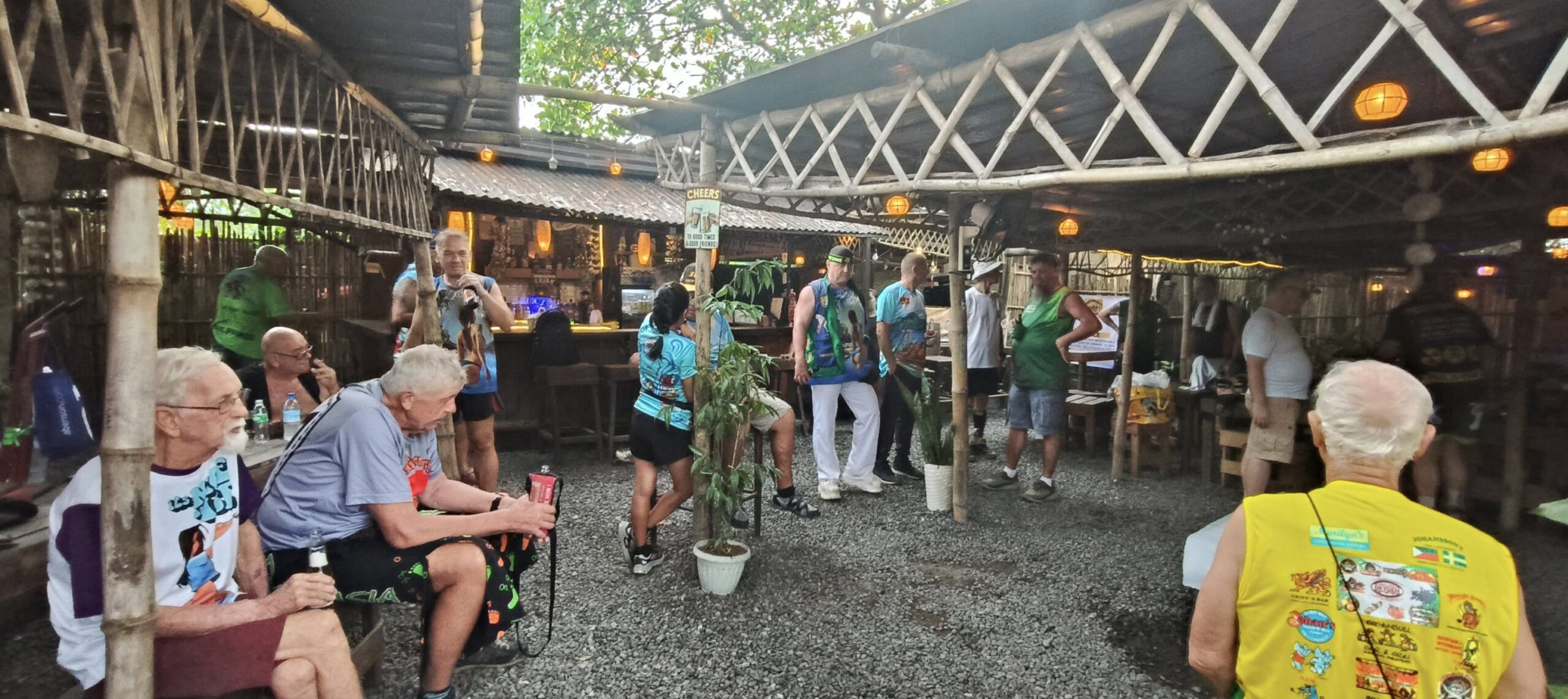 The Hashers gathered at the Tropical Garden on Baloy Beach at 2 pm to kick off the Red Dress Hash Run. I’d never visited Tropical Garden before and had my first beer of the day there. It’s a nice place.