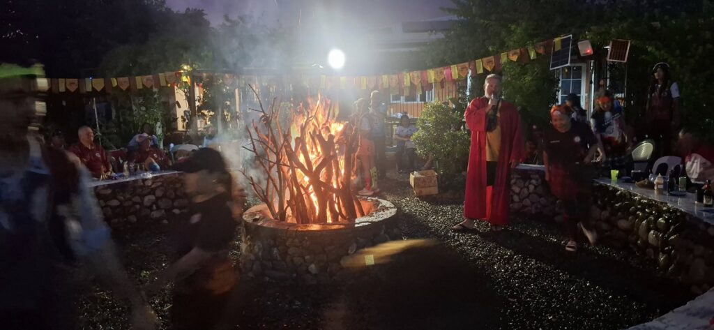 Refreshments for the Hashers.The sun calling it a day.Hashers Circled up!We weren’t in Germany, but we had a nice bonfire anyway.