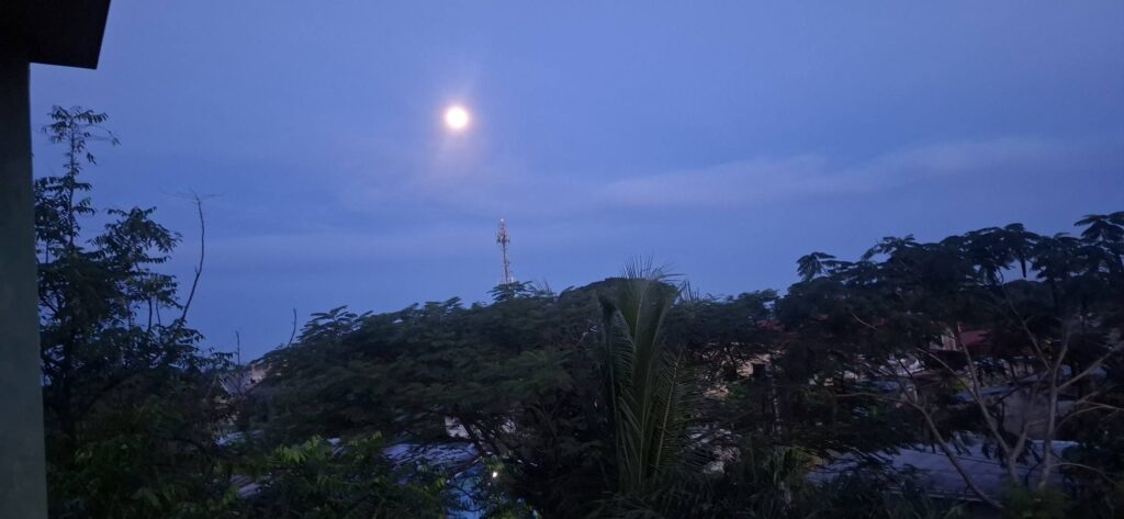 It rained off and on all night, but now at last the storm has passed, and life is returning to normal. The electricity that powers the essential tools that fill the hours has been restored, allowing me to check out of the crap Anbon Hotel and return to the luxury living of Alta Vista. It is good to be home!