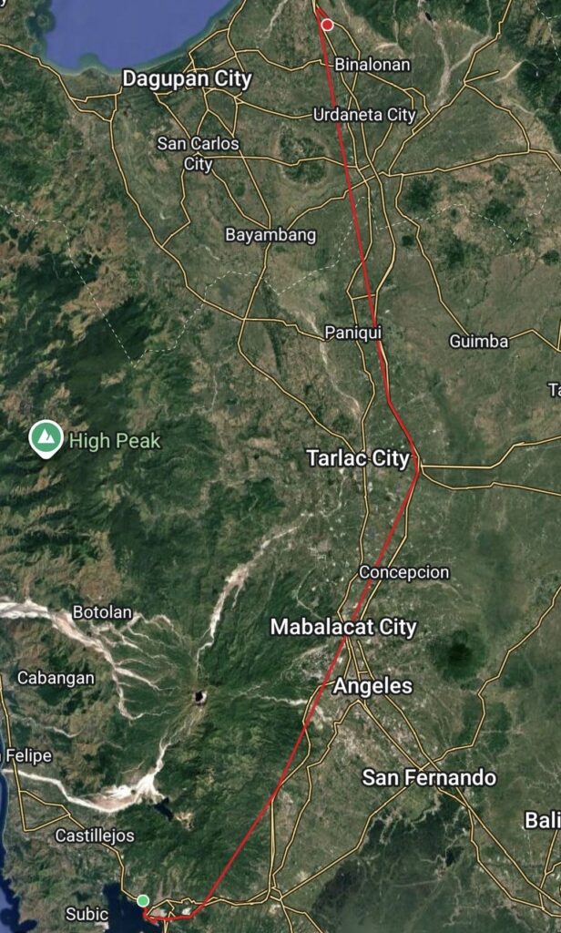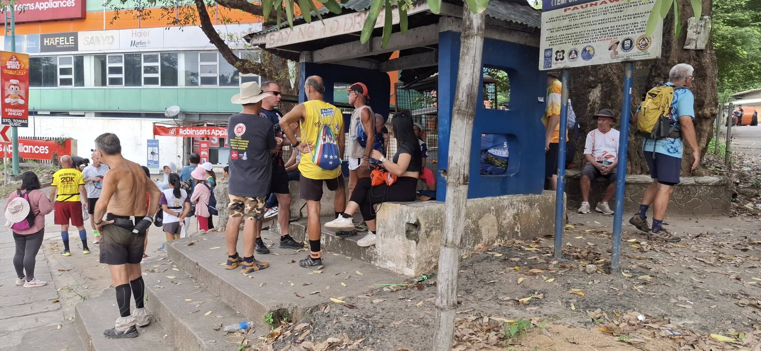 The long day’s journey into night began with a 7 a.m. pickup by our driver, Bong. The first stop was the gas station to fill up with 2500 pesos’ worth of fuel for the trip. Then we met fellow Hasher Beth (BF’s Wet Spot), loaded her camping gear into the car, and were ready to hit the road. I put the destination into my Google Maps app, and we were on our way.