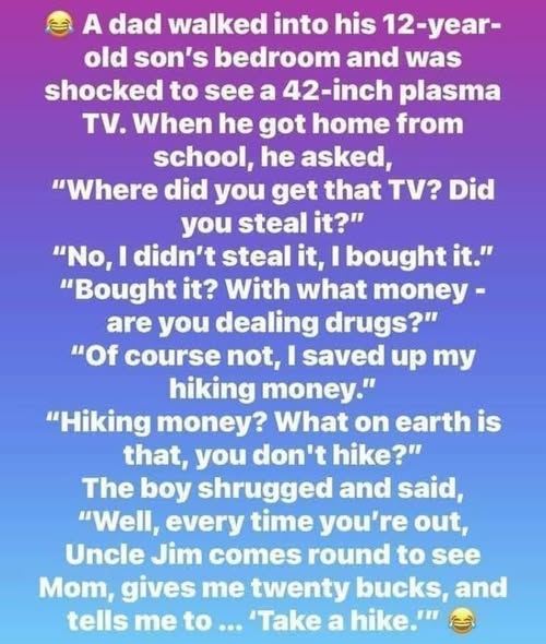 I’d rather be commatose…Hmm, I’m retired, but I still hear voices saying things like, “One more beer won’t hurt you.”Hiking pays! Who knew?