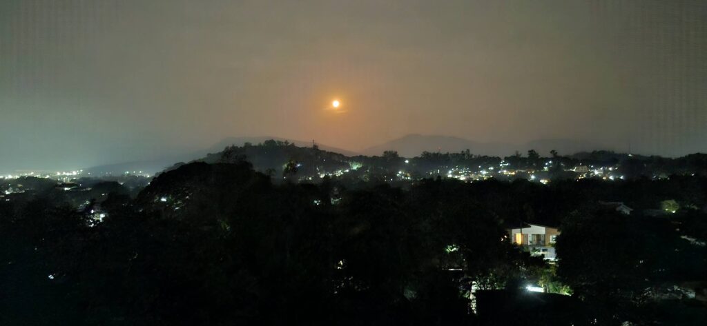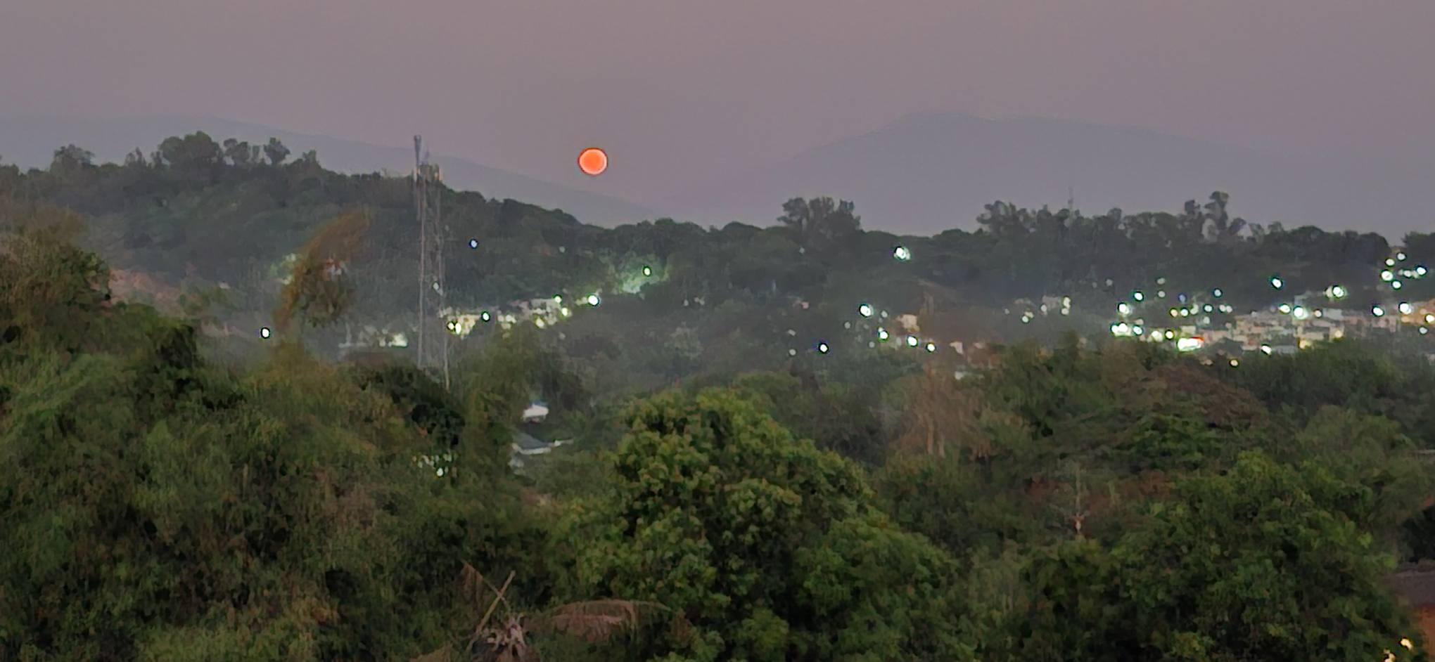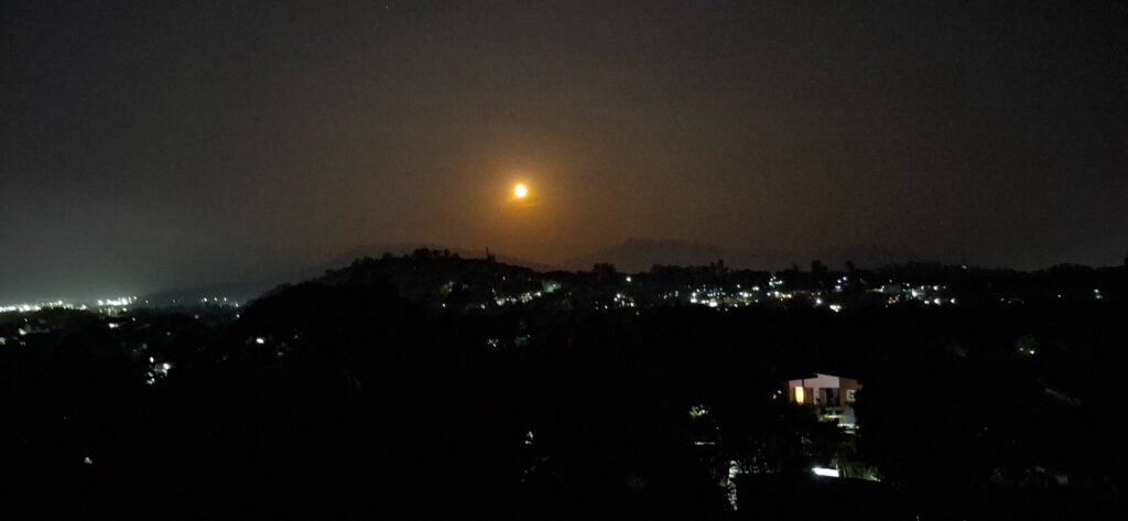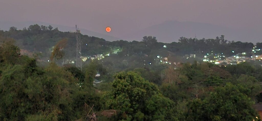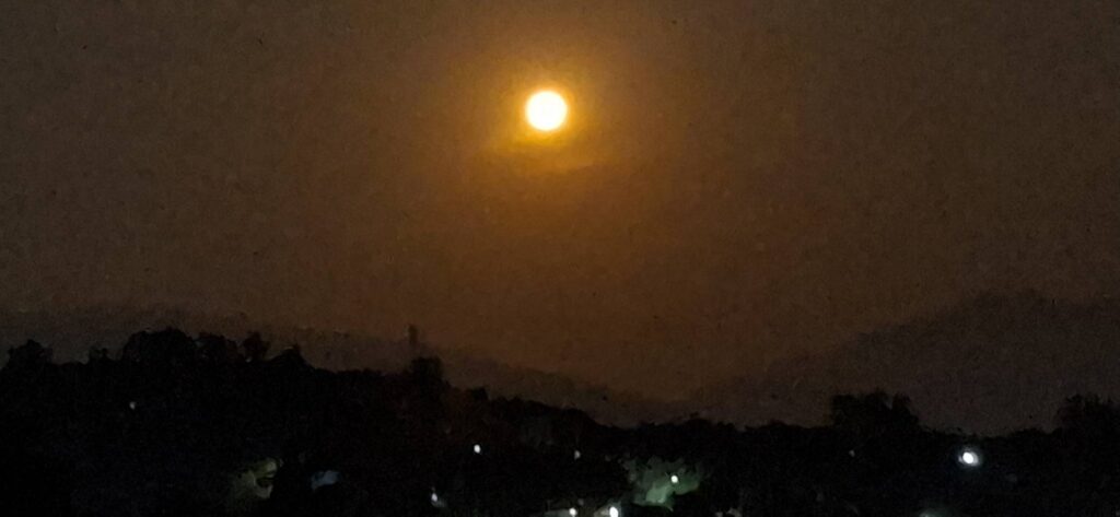 The way it looked from the patio.The zoom view.Going down……by the dawn’s early light.