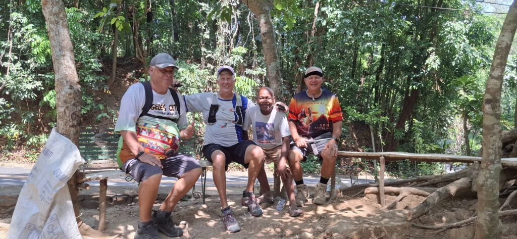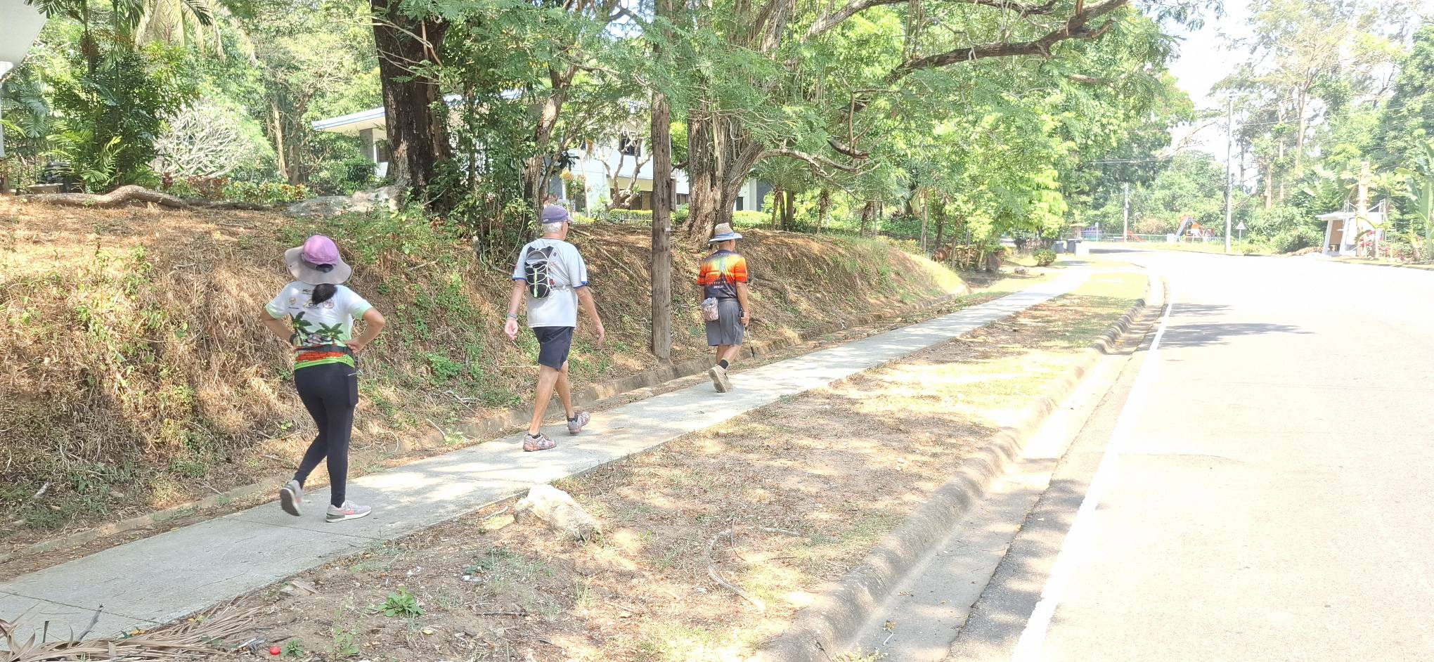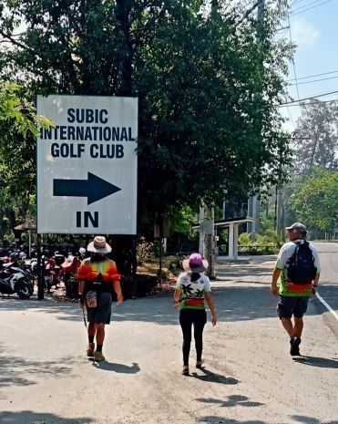 The fools who joined me: Scott, Swan, and Steve.It was a road walk, circumnavigating the golf course and walking through the Binictican housing area. A road walk on SBMA can be quite pleasant because there is little traffic, and Jeepneys and trikes are not allowed.These folks make a living collecting lost balls, um, golf balls, then reselling them to golfers.The green, wide-open spaces.Plodding onward in due course.The country club.The road ahead. The vibe here is nothing like the Philippines I’m used to.Over the creek.We’ve hiked that forest trail long ago and vowed we’d do it again one of these days.Pausing for a bit with a friendly local.Then heading on up the road.Greeting the guards at the entrance to Binictican.And no, we didn’t take the Easy Street.OMG! So that’s what a sidewalk looks like!This place is for rent. Before moving to the PI, I looked at a nice duplex in this village. But Binictican felt too much likean American subdivision (it’s a former Navy base housing area for officers and their families).This former Navy Quonset huthas been repurposed as a coffee shop/restaurant.Bye-bye, Binictican. Nice to see you again.A very nice change of scenery.And my highest step count in many moons.