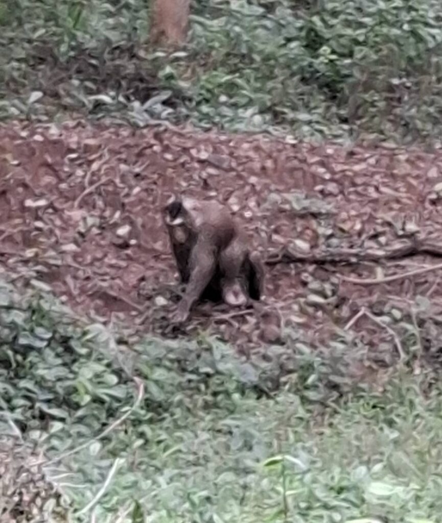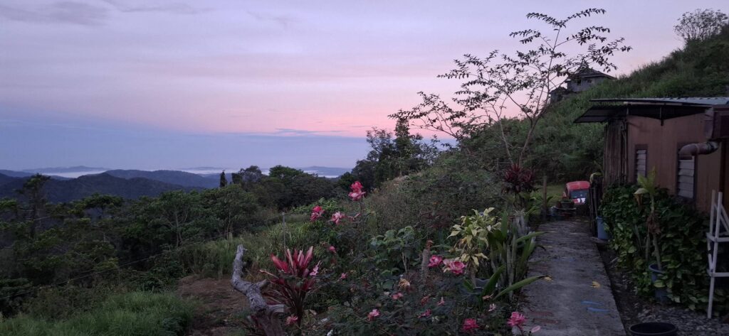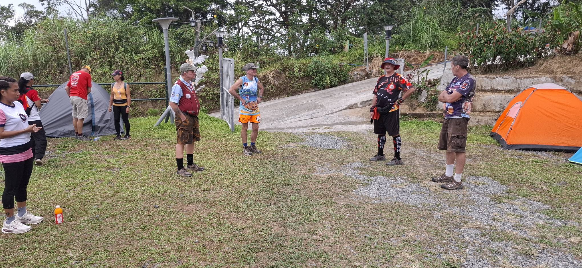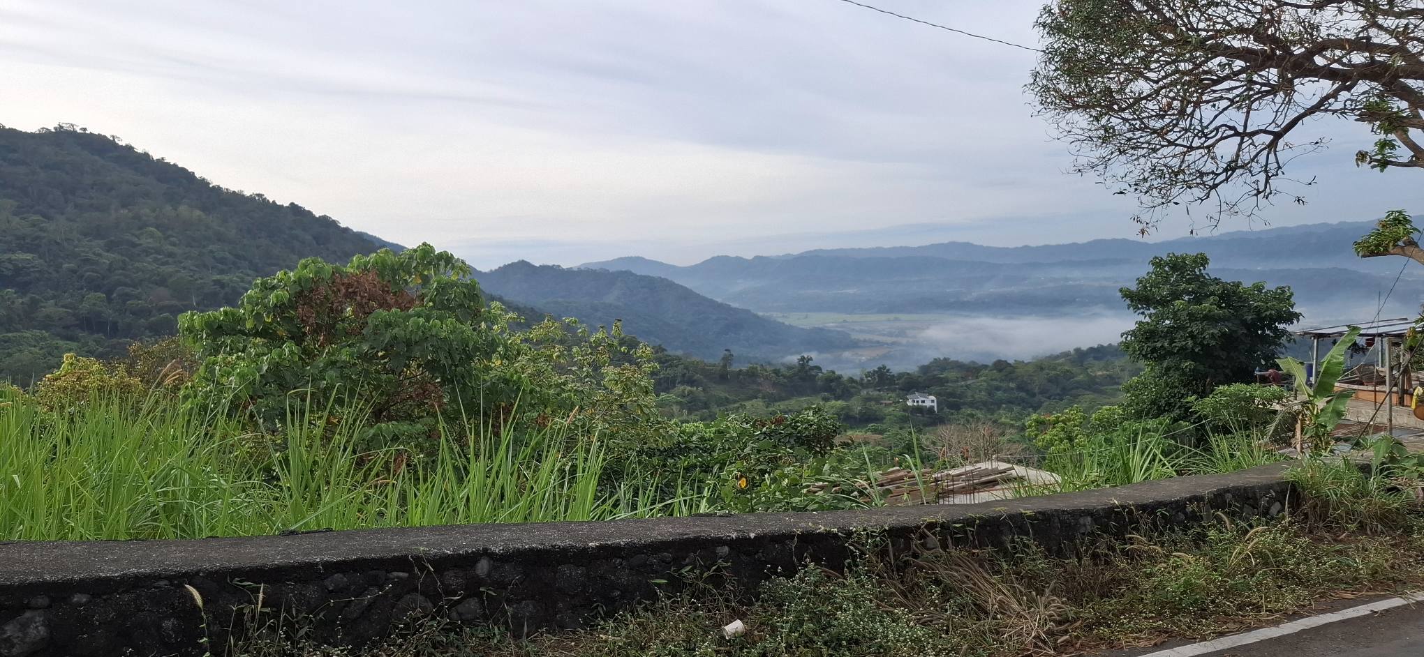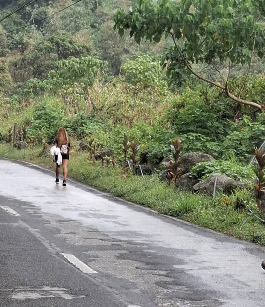 And then, when we got to the top, the trail almost immediately headed back down through the jungle. Fuck that! I could see some nice houses and figured there must be a road to reach them, so the search was on. And by golly, we found not only a road, but the actual highway leading back to the On-Home campground. Better yet, it was part of the Hash trail. I consulted Google Maps just to make sure, but we were on the road to success. Which, of course, is always uphill. Also, I’m a master shortcutter!