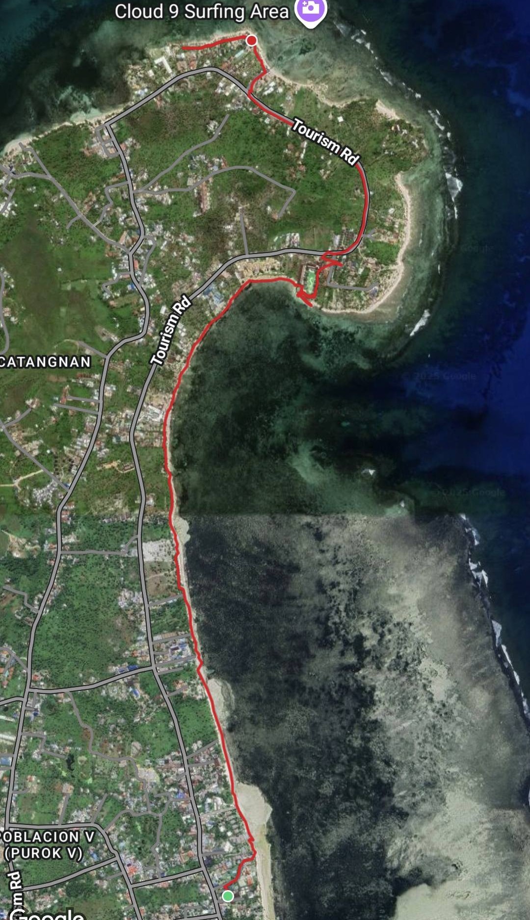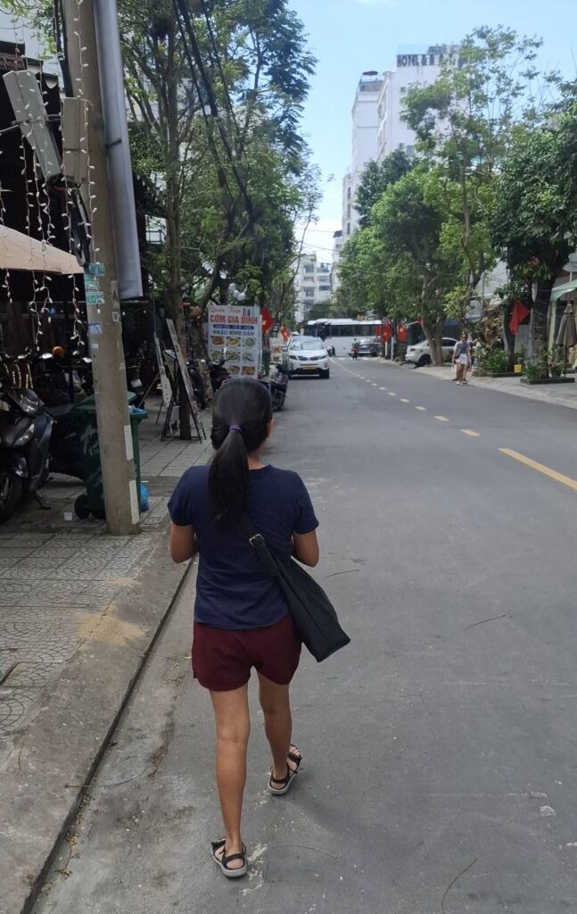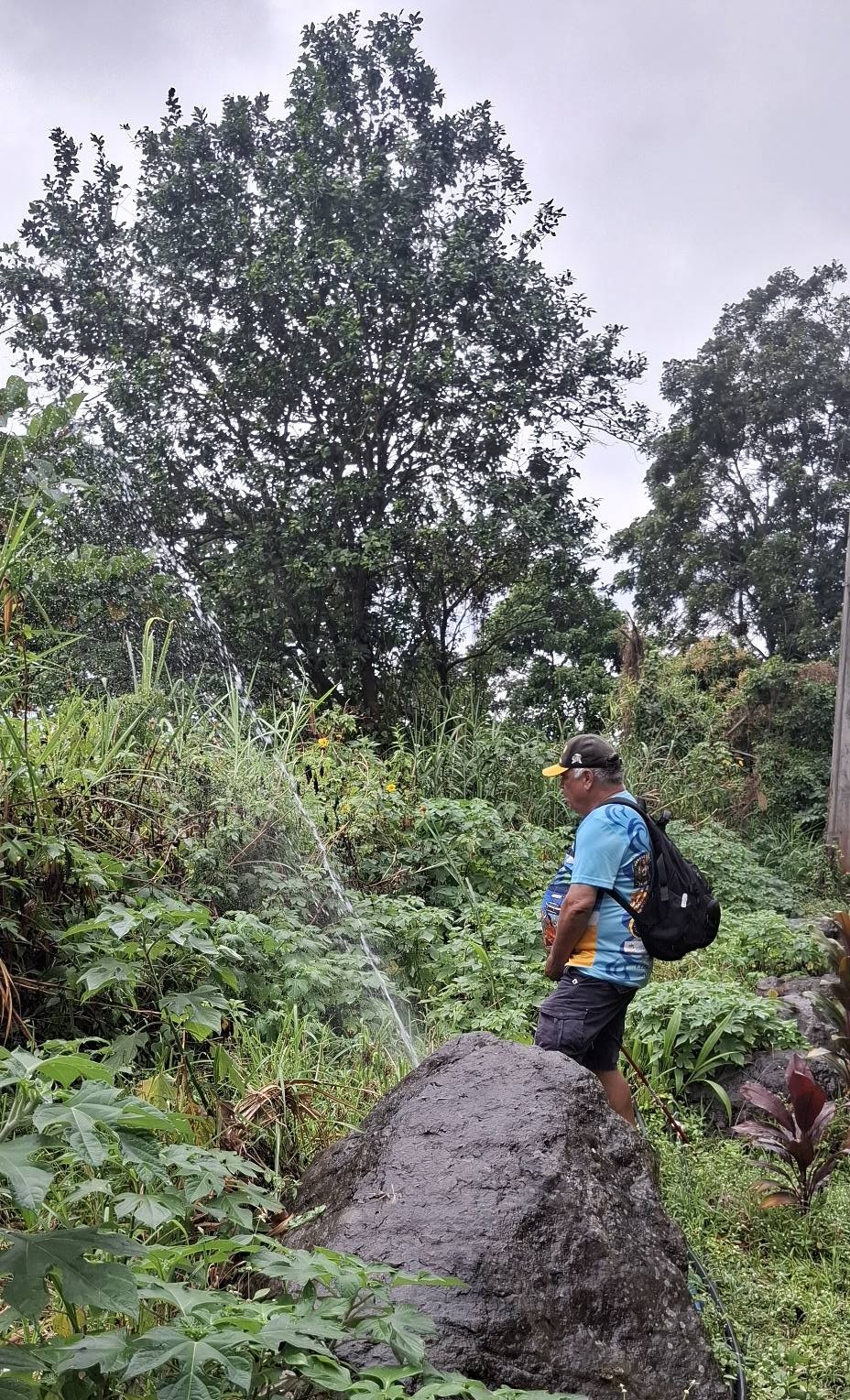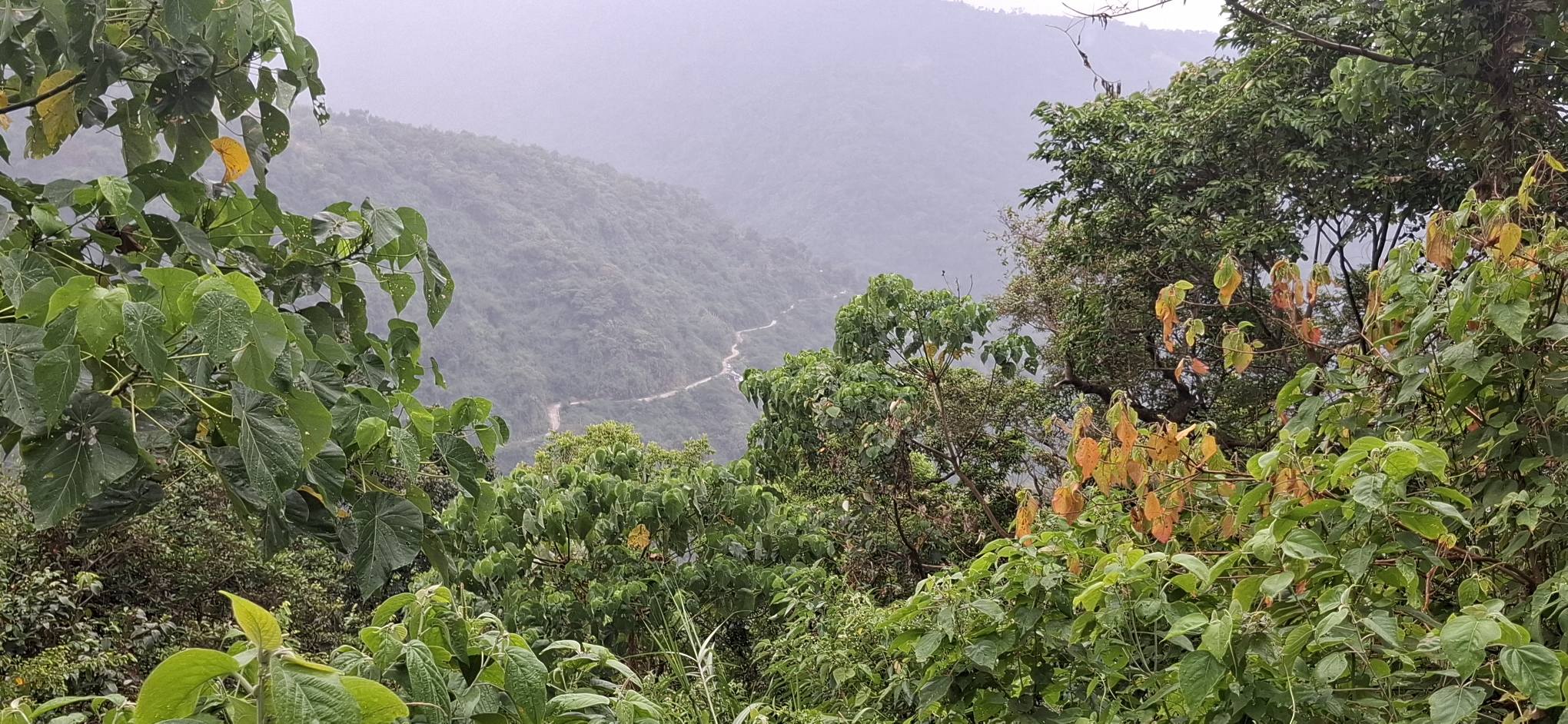 And then, when we got to the top, the trail almost immediately headed back down through the jungle. Fuck that! I could see some nice houses and figured there must be a road to reach them, so the search was on. And by golly, we found not only a road, but the actual highway leading back to the On-Home campground. Better yet, it was part of the Hash trail. I consulted Google Maps just to make sure, but we were on the road to success. Which, of course, is always uphill. Also, I’m a master shortcutter!