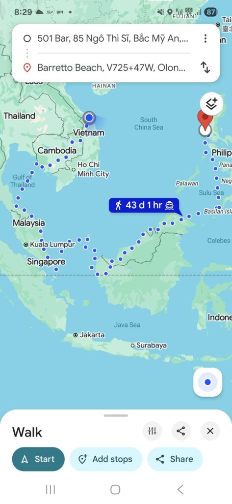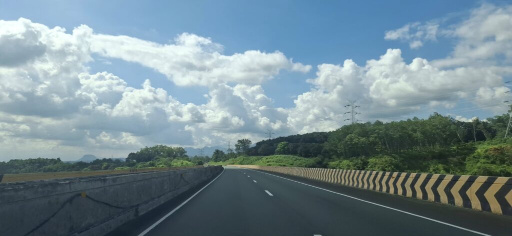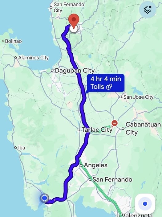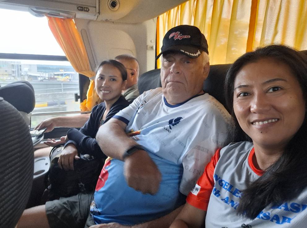 The long day’s journey into night began with a 7 a.m. pickup by our driver, Bong. The first stop was the gas station to fill up with 2500 pesos’ worth of fuel for the trip. Then we met fellow Hasher Beth (BF’s Wet Spot), loaded her camping gear into the car, and were ready to hit the road. I put the destination into my Google Maps app, and we were on our way.