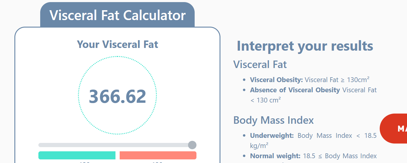 Nothing to get pissed about, though. I hope to keep peeing well into the future. Speaking of health, Kevin Kim left a link in the comments to a video about measuring visceral fat. The video provided a link to a webpage with an easy at-home method to calculate the amount of visceral fat you carry in your innards. So, I did the measurements, and the results weren’t pretty.